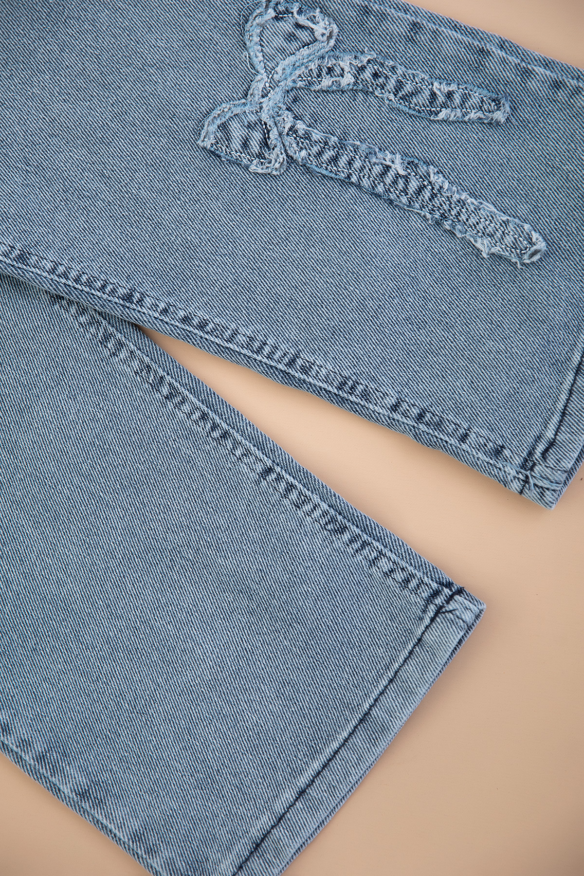 Kız Çocuk Fiyonk Nakışlı Kot Pantolon Takım - 5137 (4-11 Yaş)