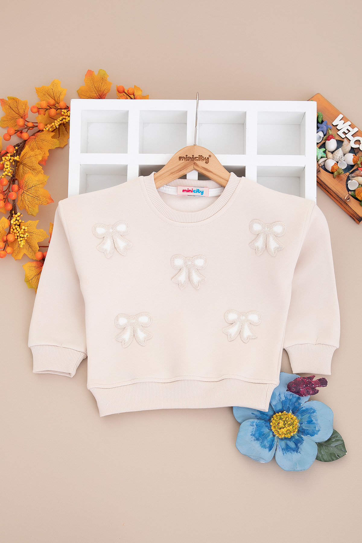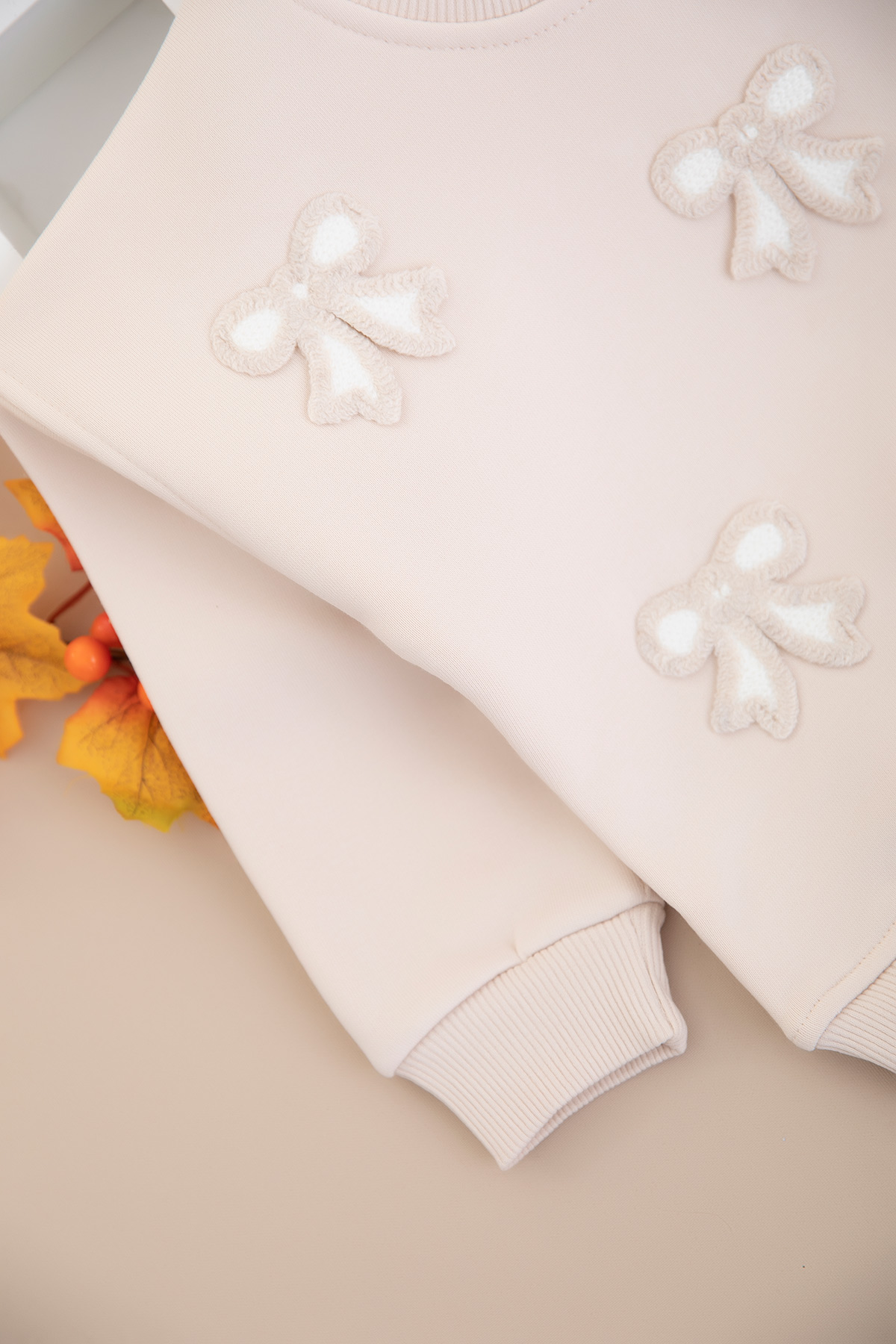 Kız Çocuk Fiyonk Nakışlı Üçip Sweat - 4083 (3-7 Yaş)
