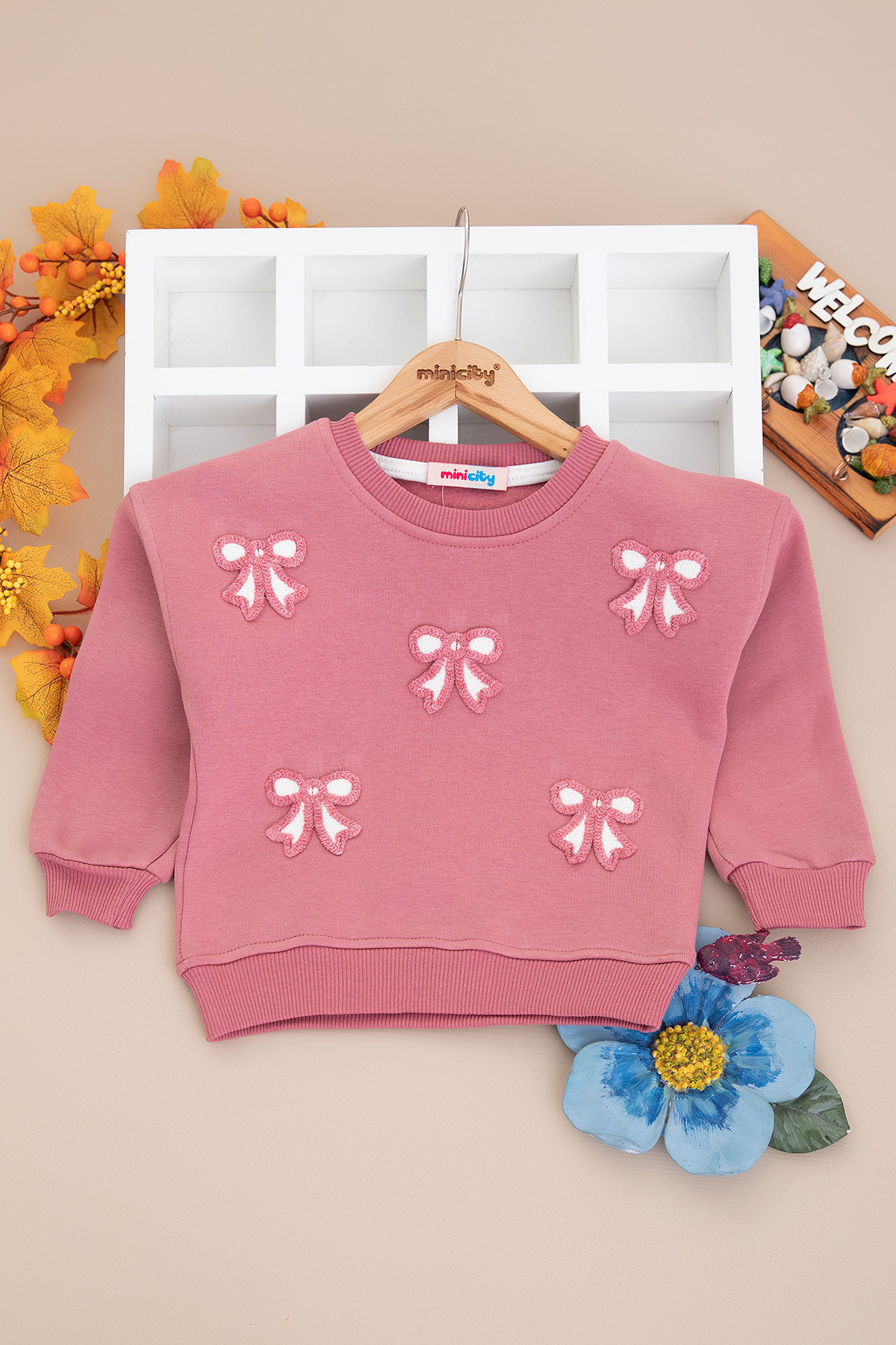 Kız Çocuk Fiyonk Nakışlı Üçip Sweat - 4083 (3-7 Yaş)