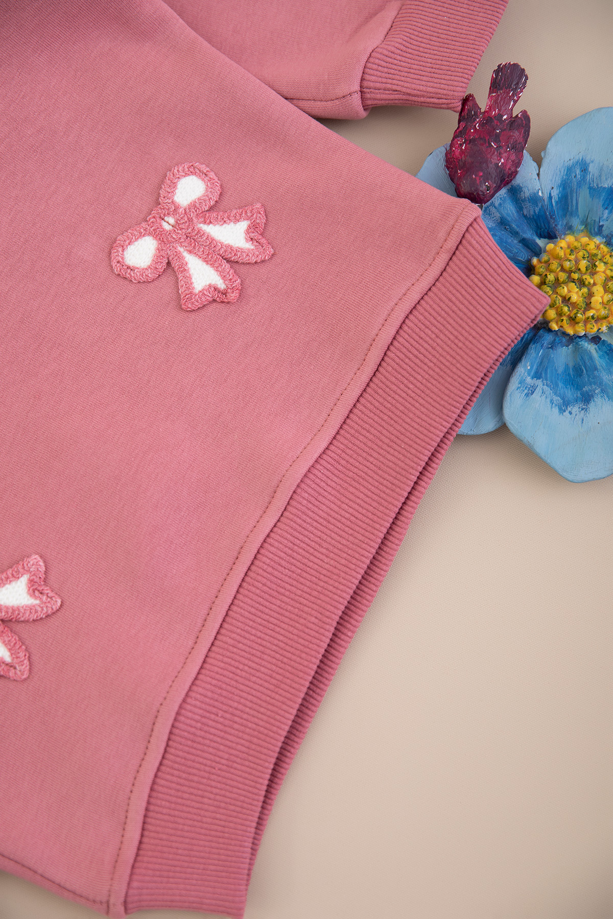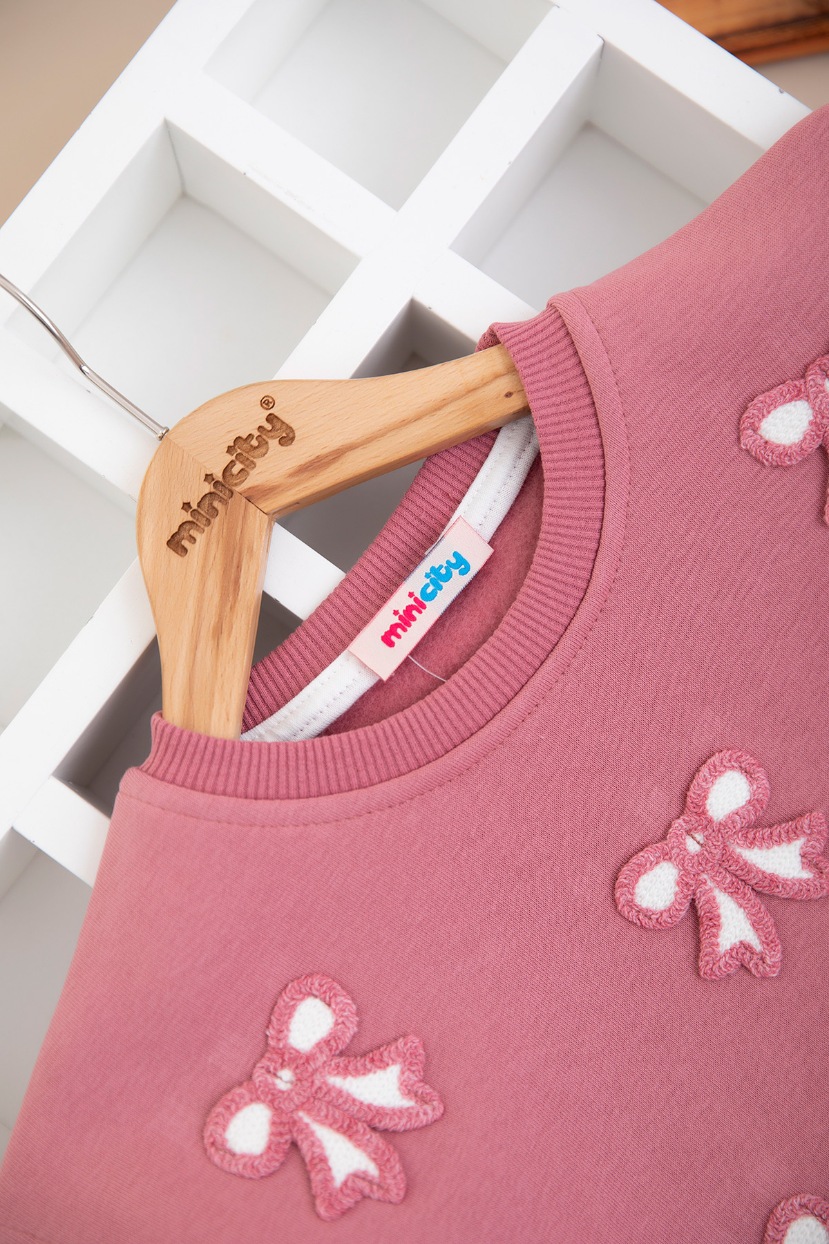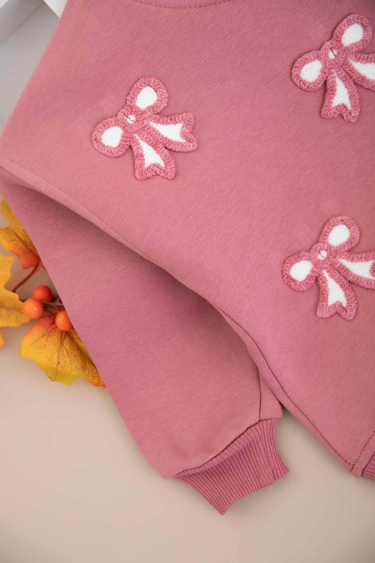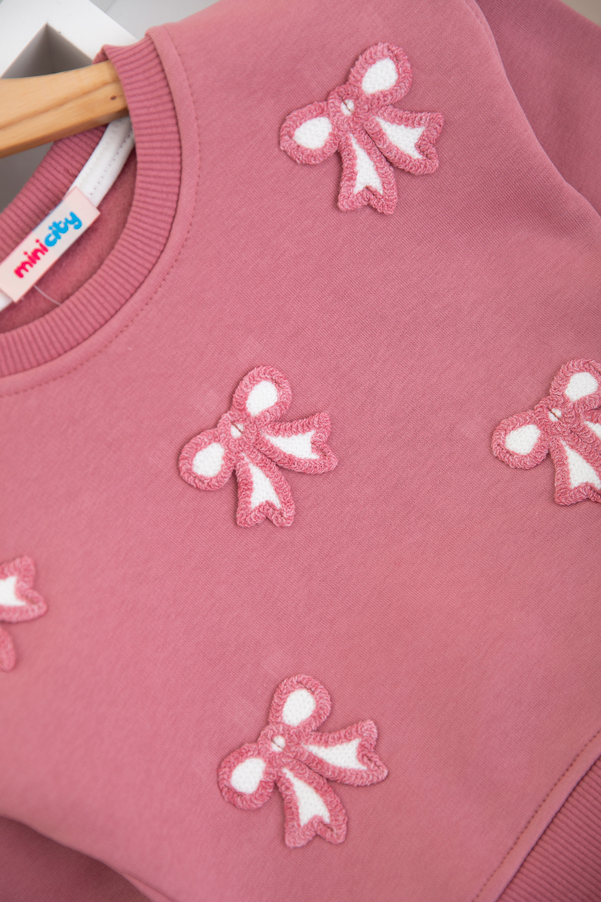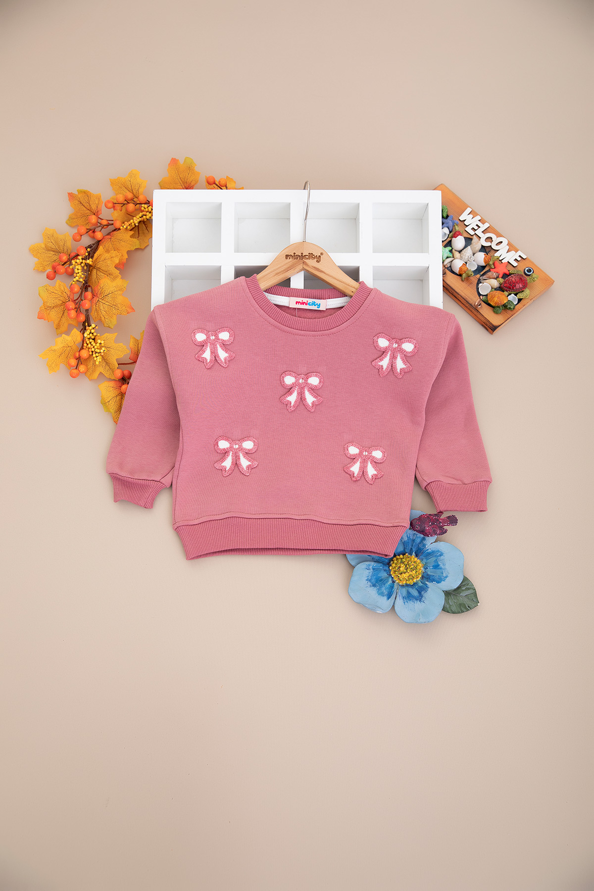 Kız Çocuk Fiyonk Nakışlı Üçip Sweat - 4084 (8-12 Yaş)