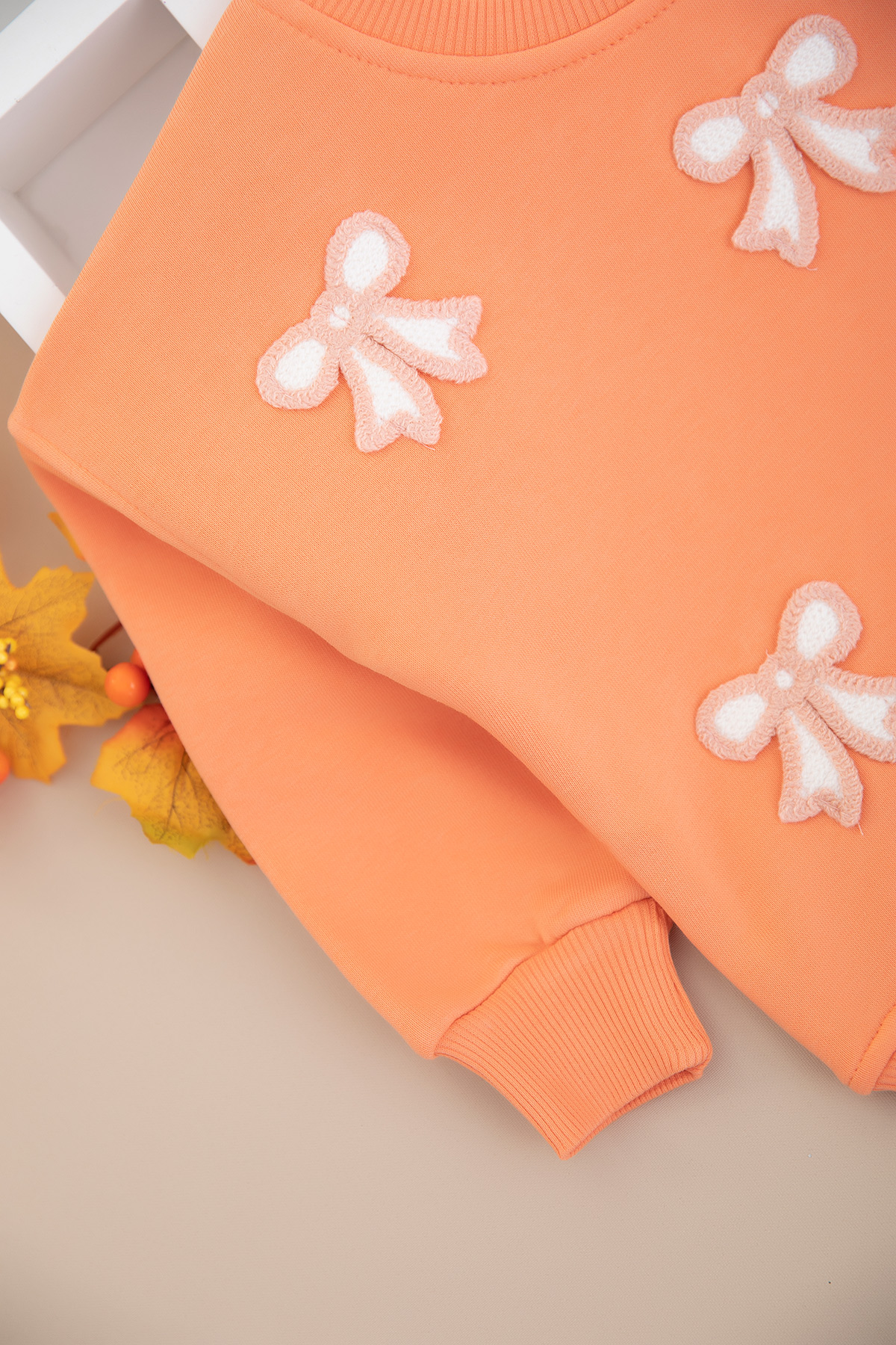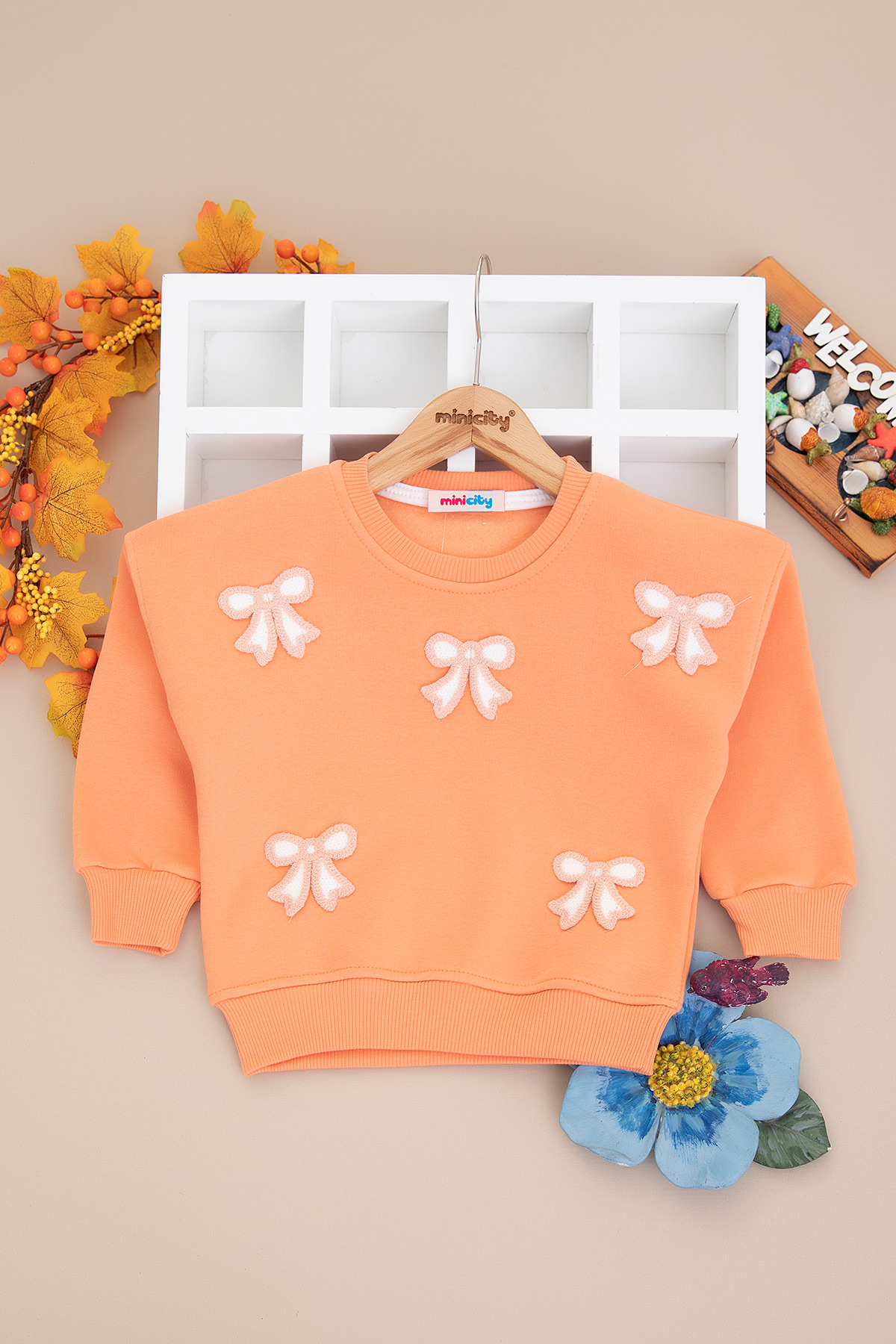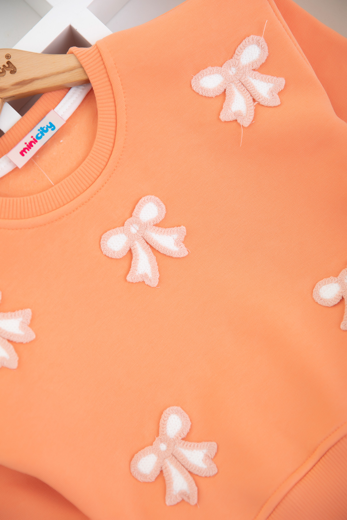 Kız Çocuk Fiyonk Nakışlı Üçip Sweat - 4084 (8-12 Yaş)