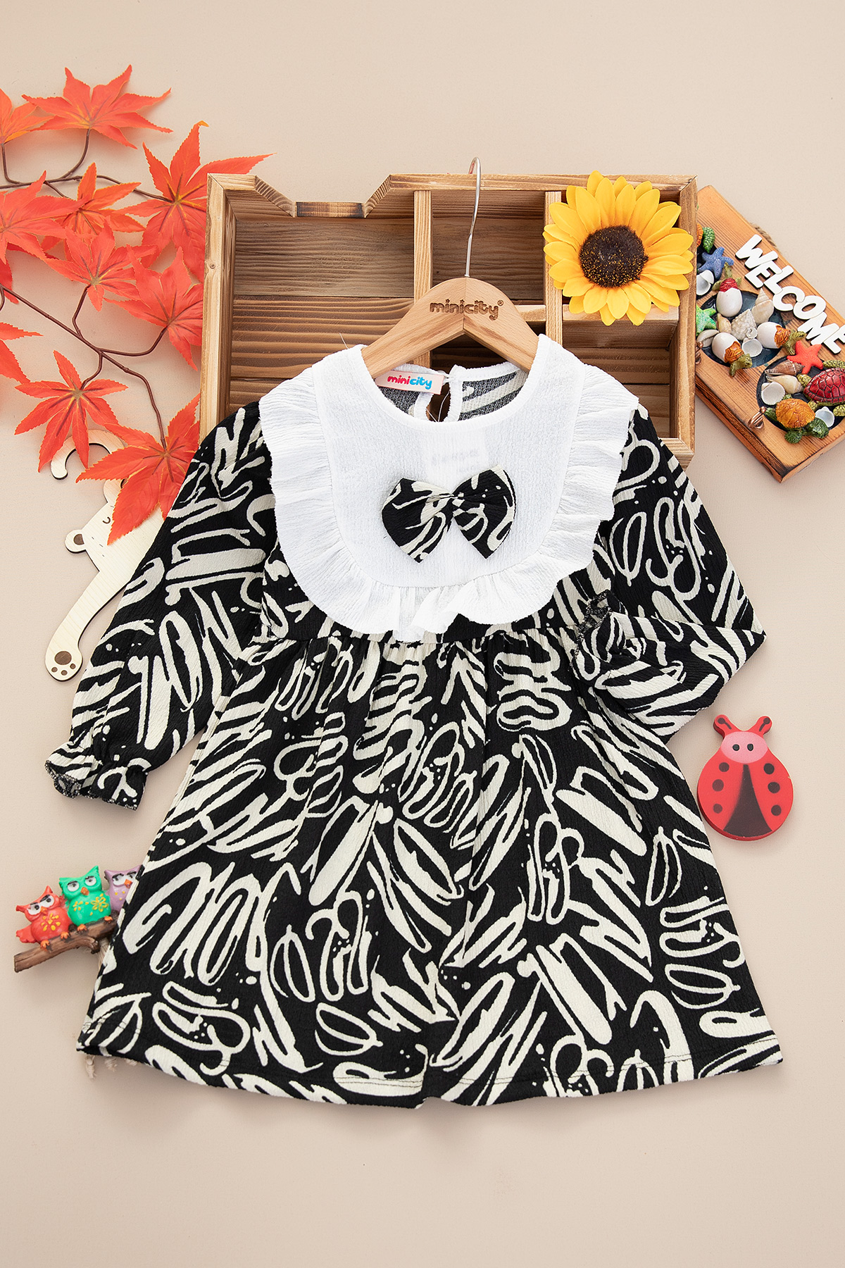 Kız Çocuk Fiyonk Yaka Detay Elbise - 5561 (2-8 Yaş)