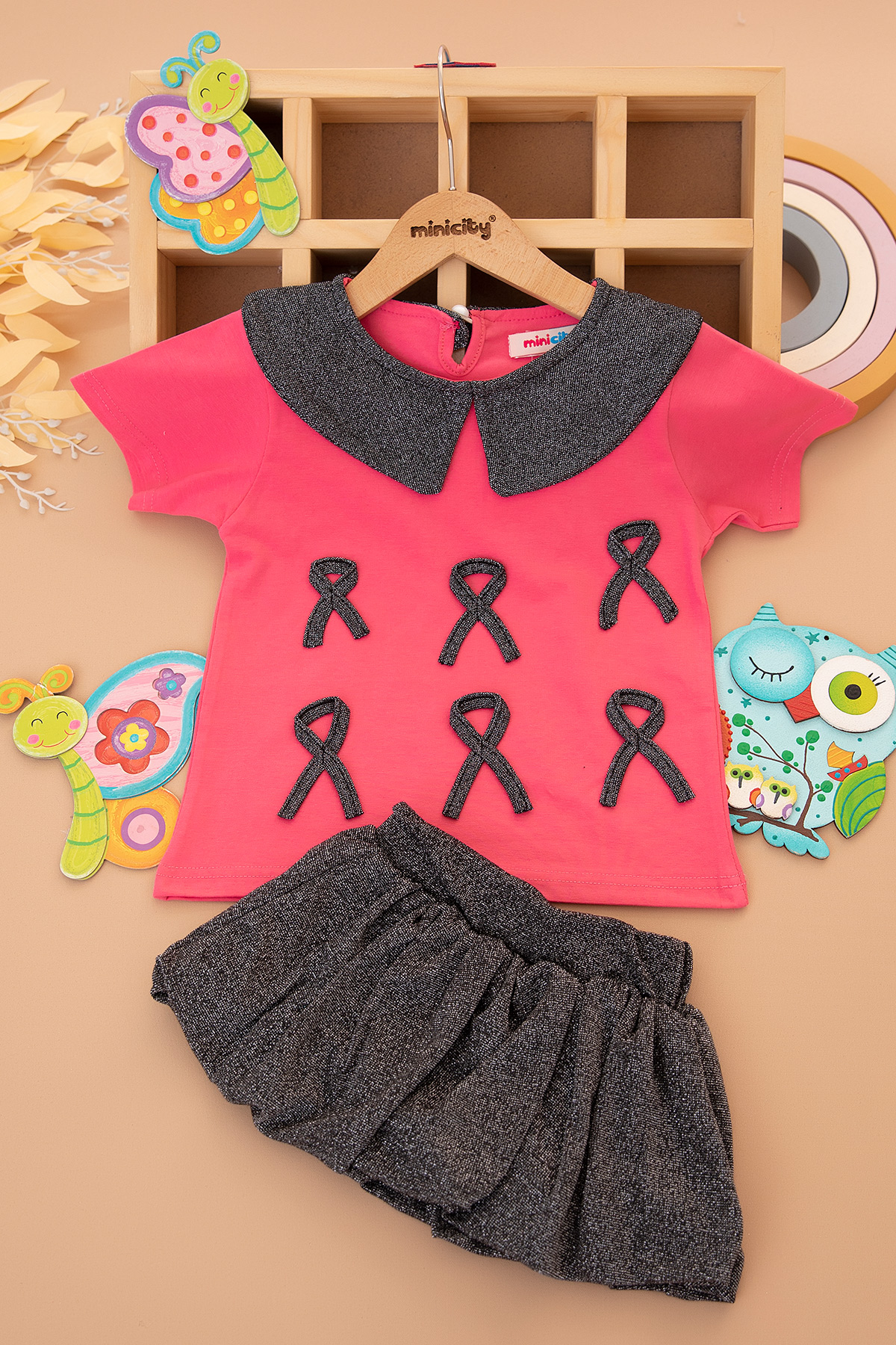 Kız Çocuk Fiyonklu Balon Etekli Takım - K0004 (2-8 Yaş)