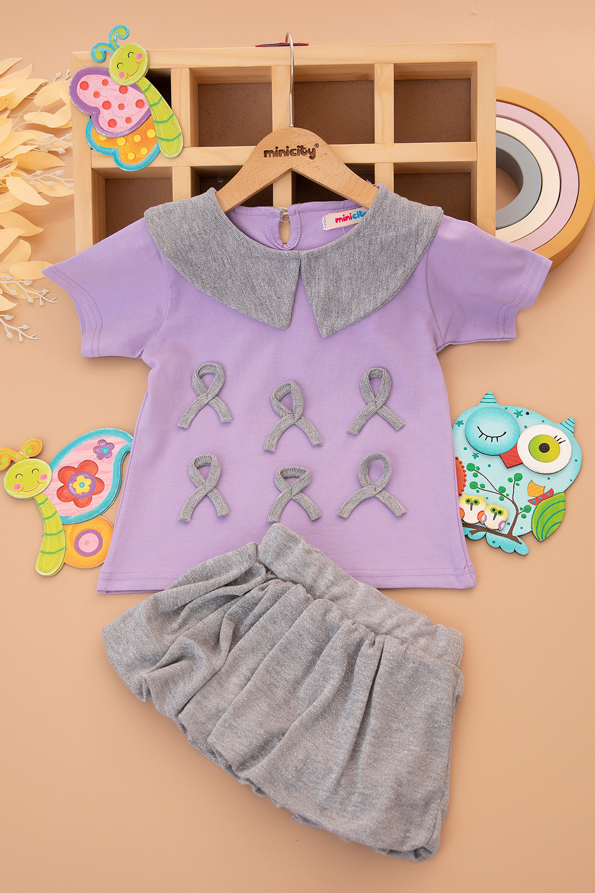 Kız Çocuk Fiyonklu Balon Etekli Takım - K0004 (2-8 Yaş)