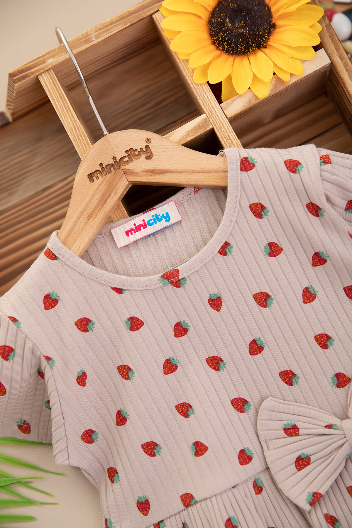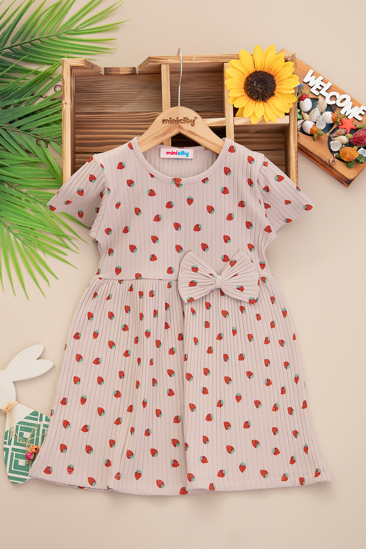 Kız Çocuk Fiyonklu Baskılı Elbise - 3954 (3-8 Yaş)