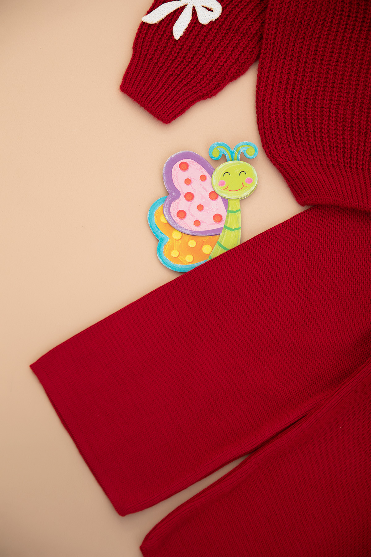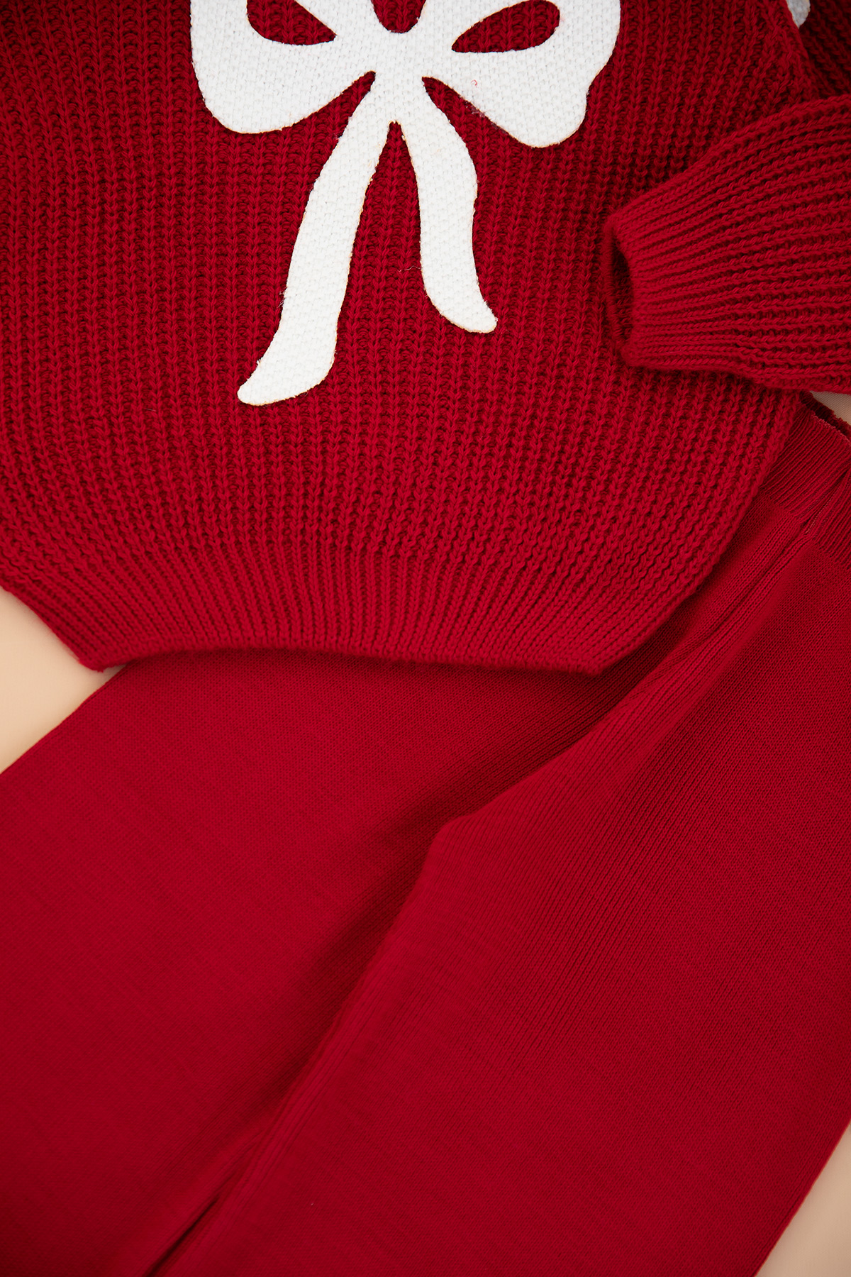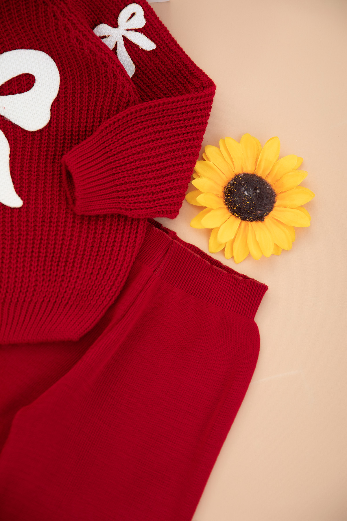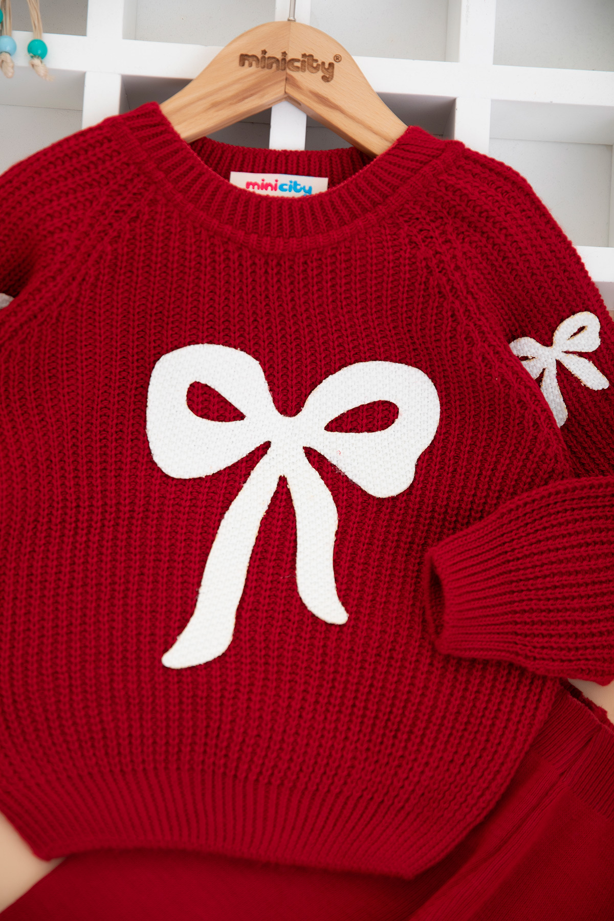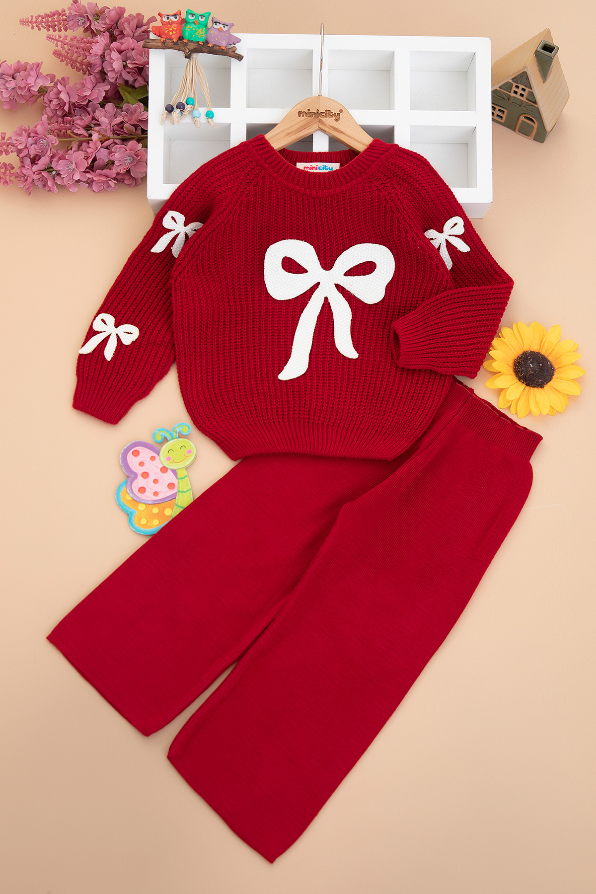 Kız Çocuk Fiyonklu Boru Paça Triko Takım - 6451 (2-8 Yaş)