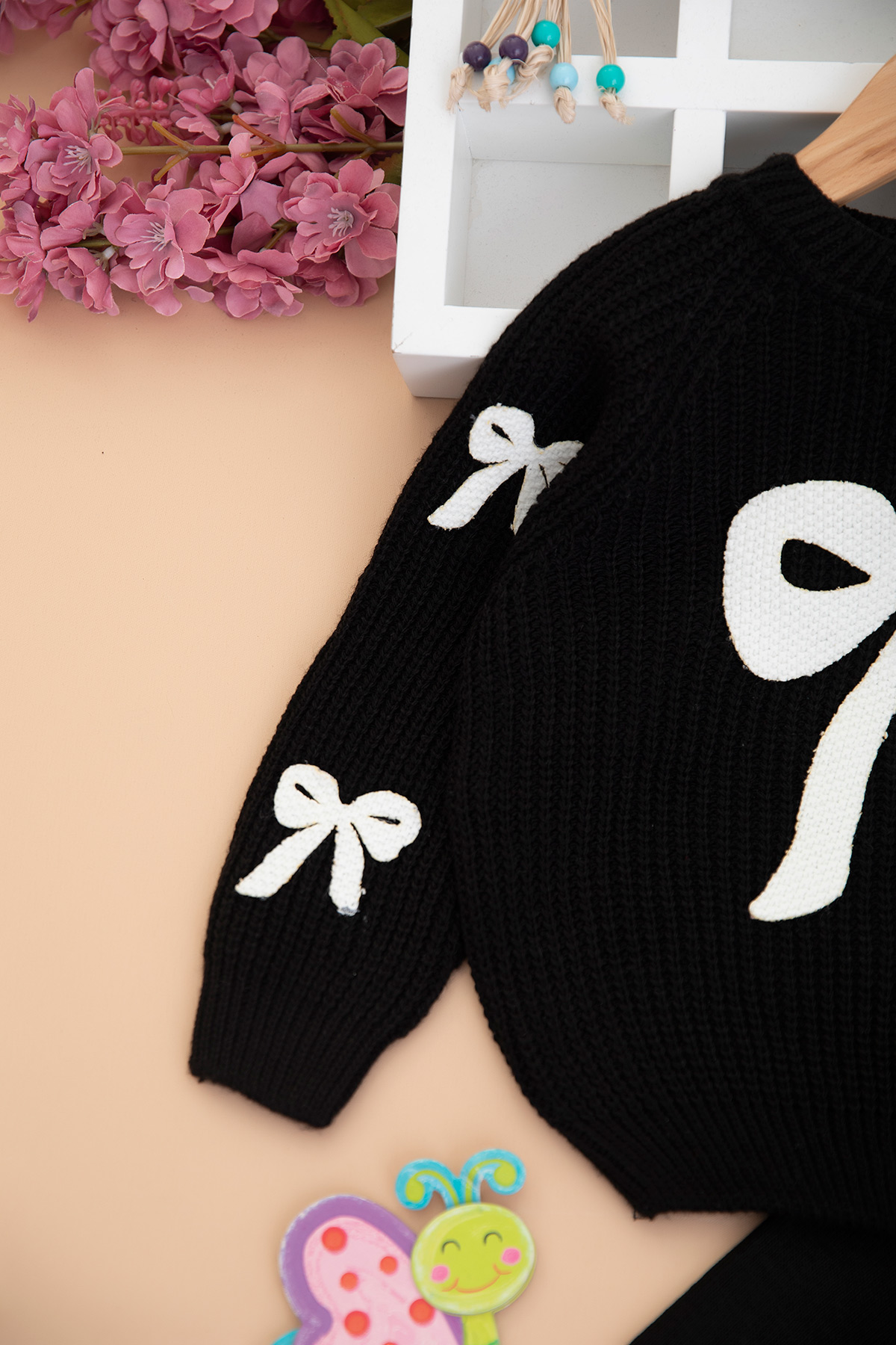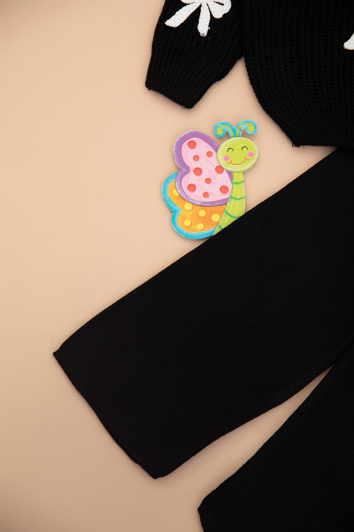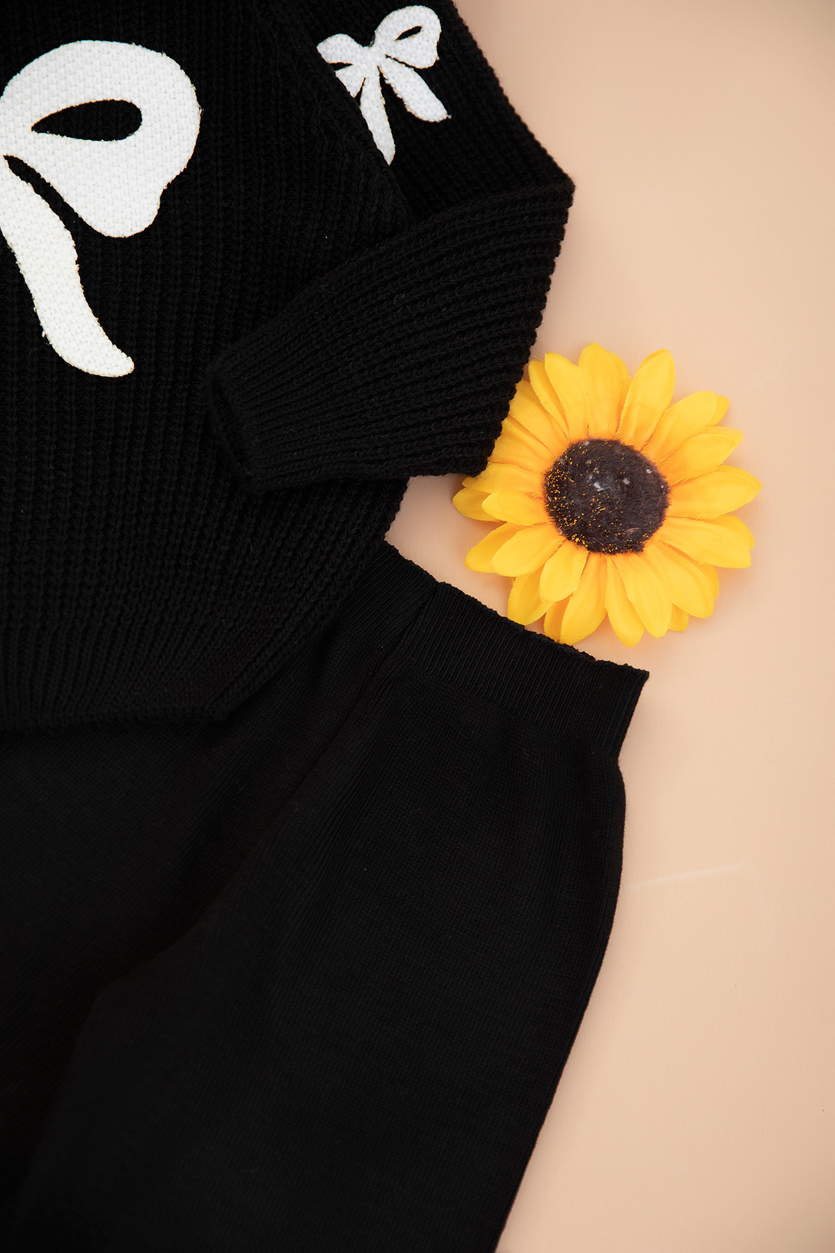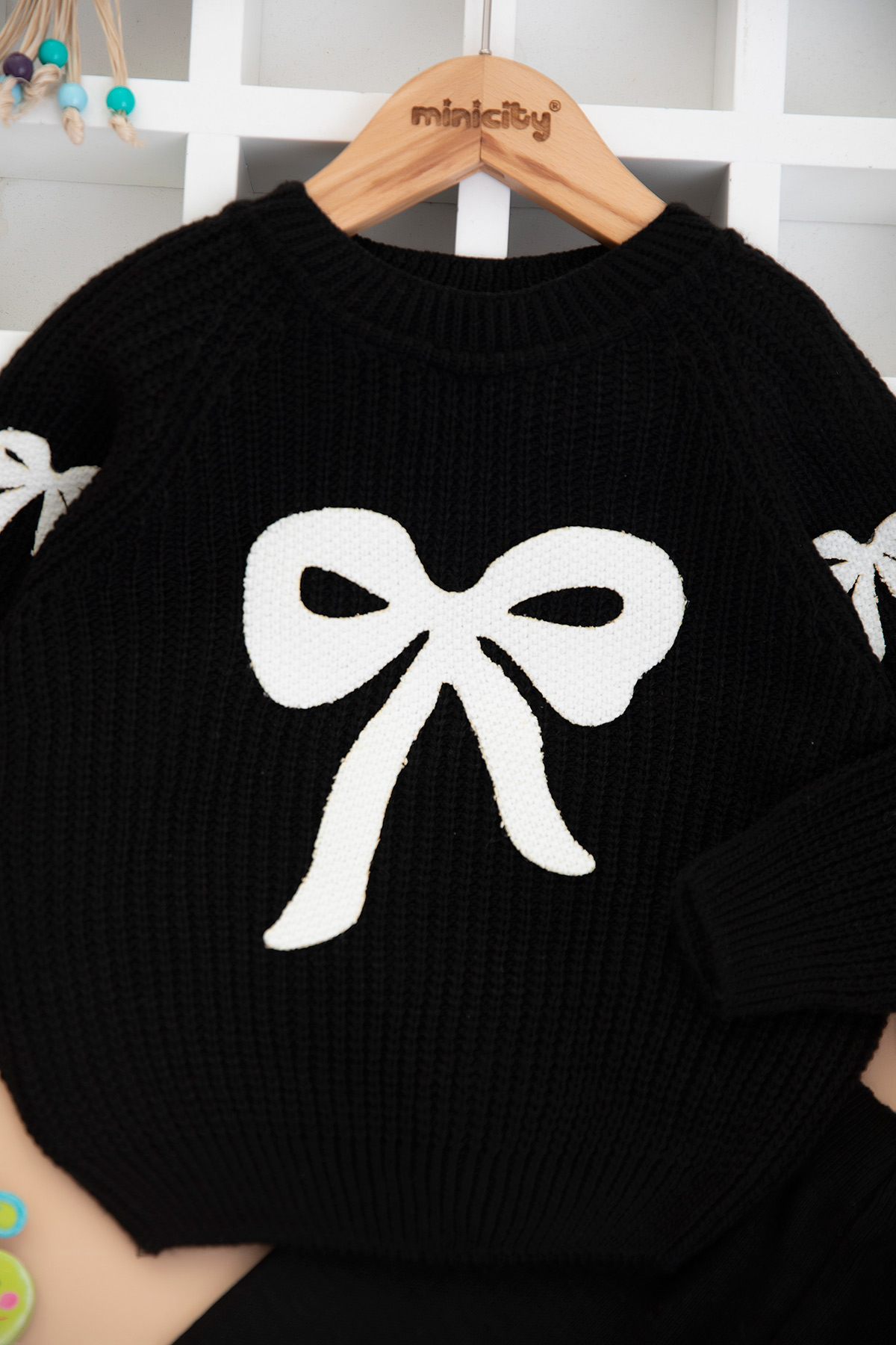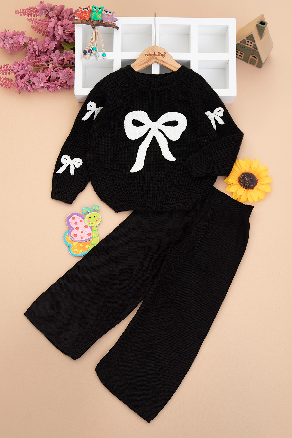 Kız Çocuk Fiyonklu Boru Paça Triko Takım - 6451 (2-8 Yaş)