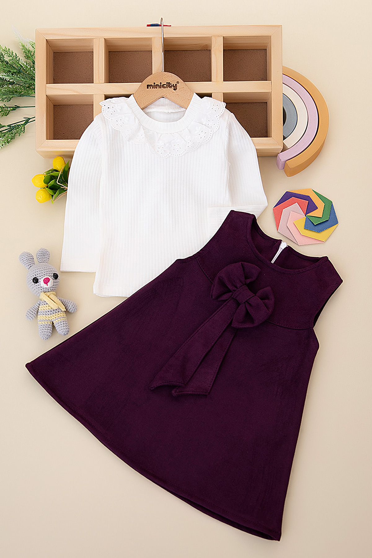Kız Çocuk Fiyonklu Elbise - 955