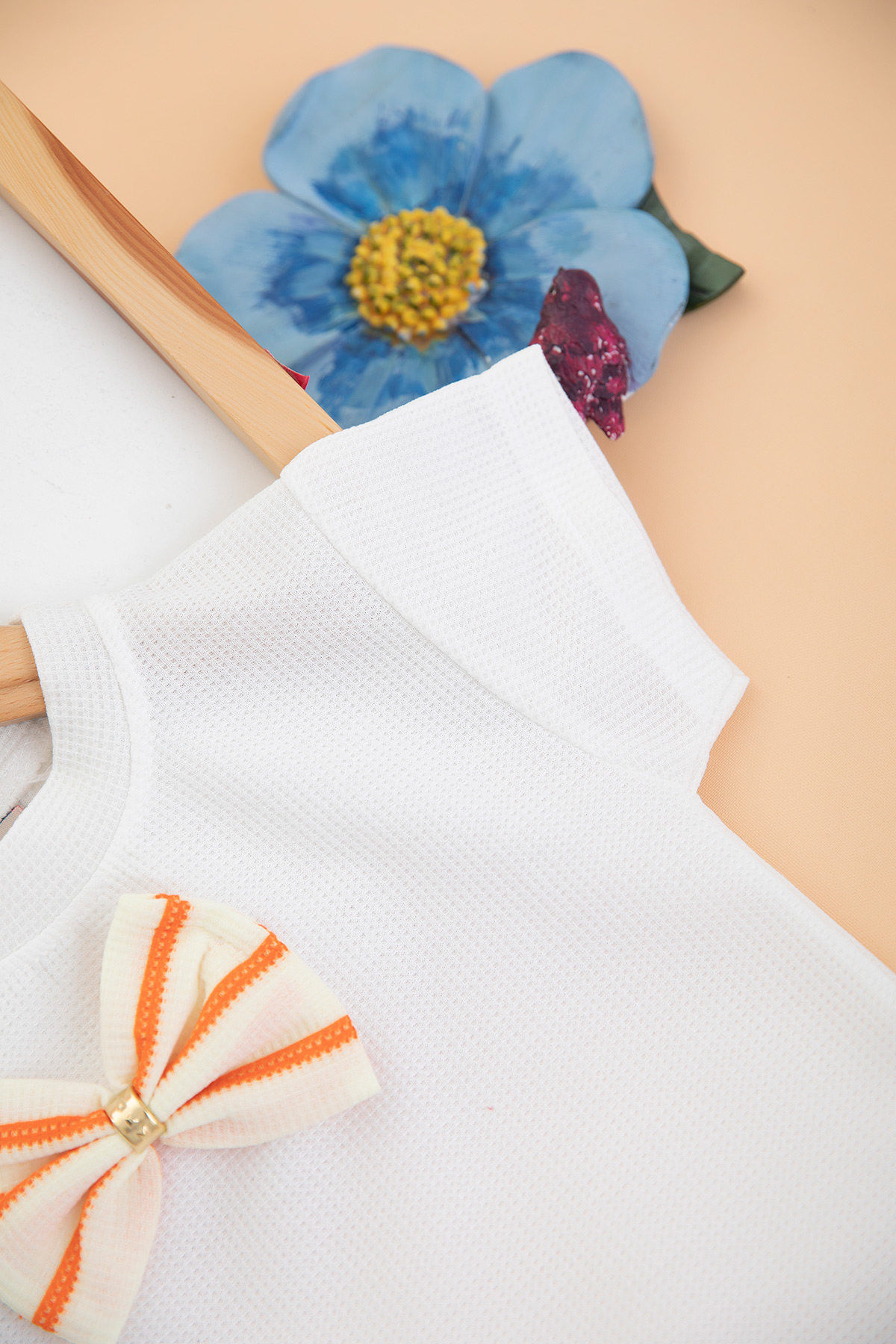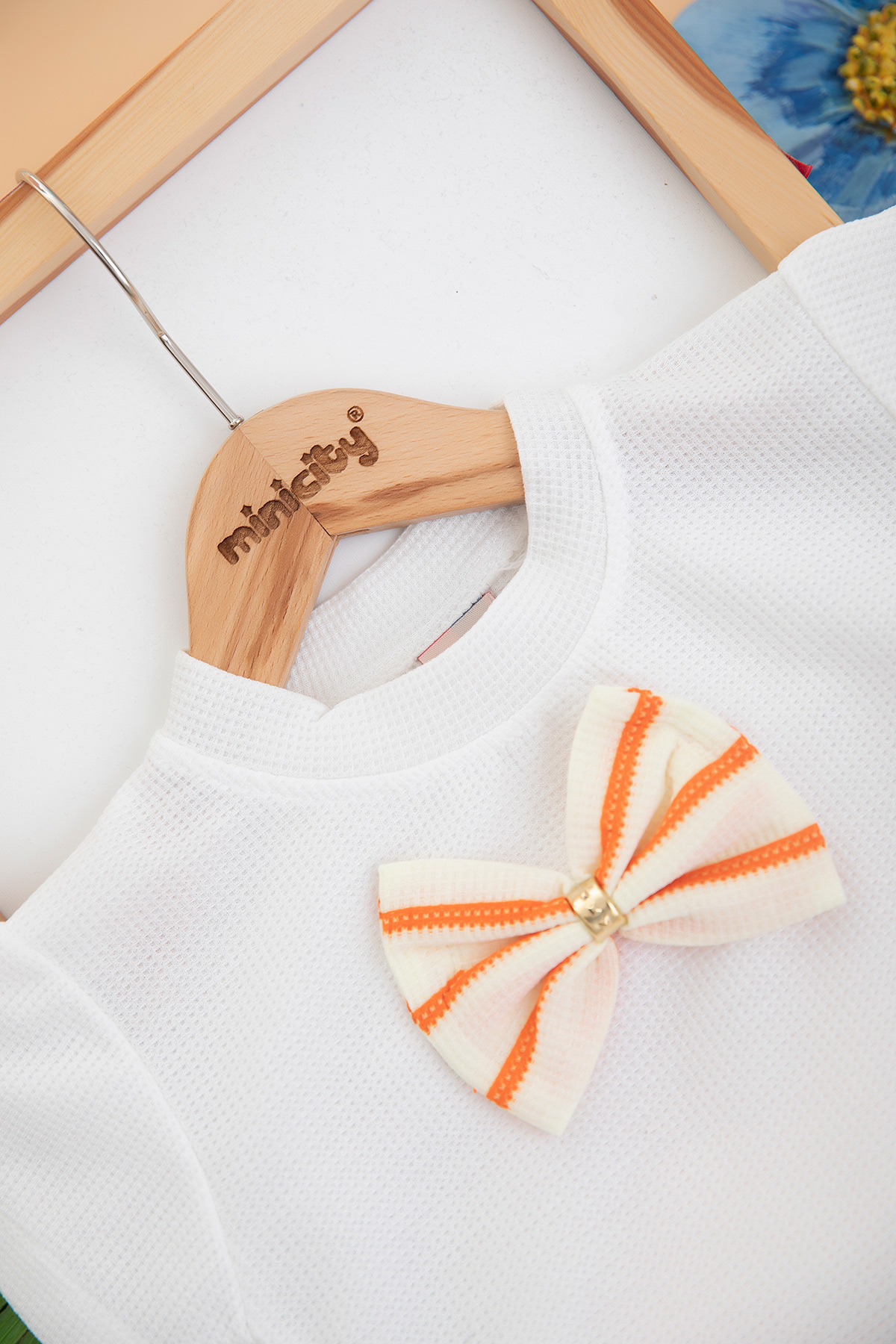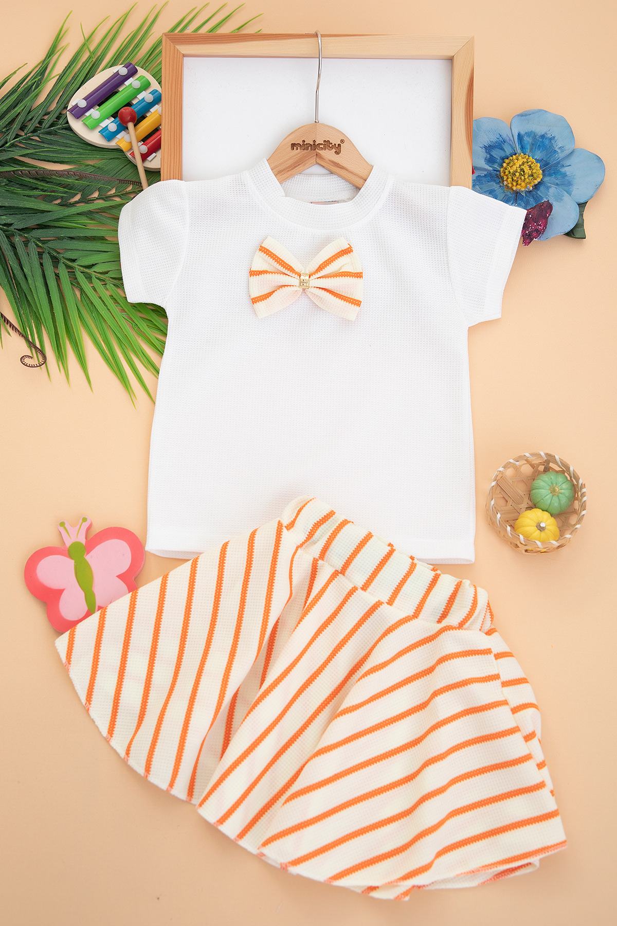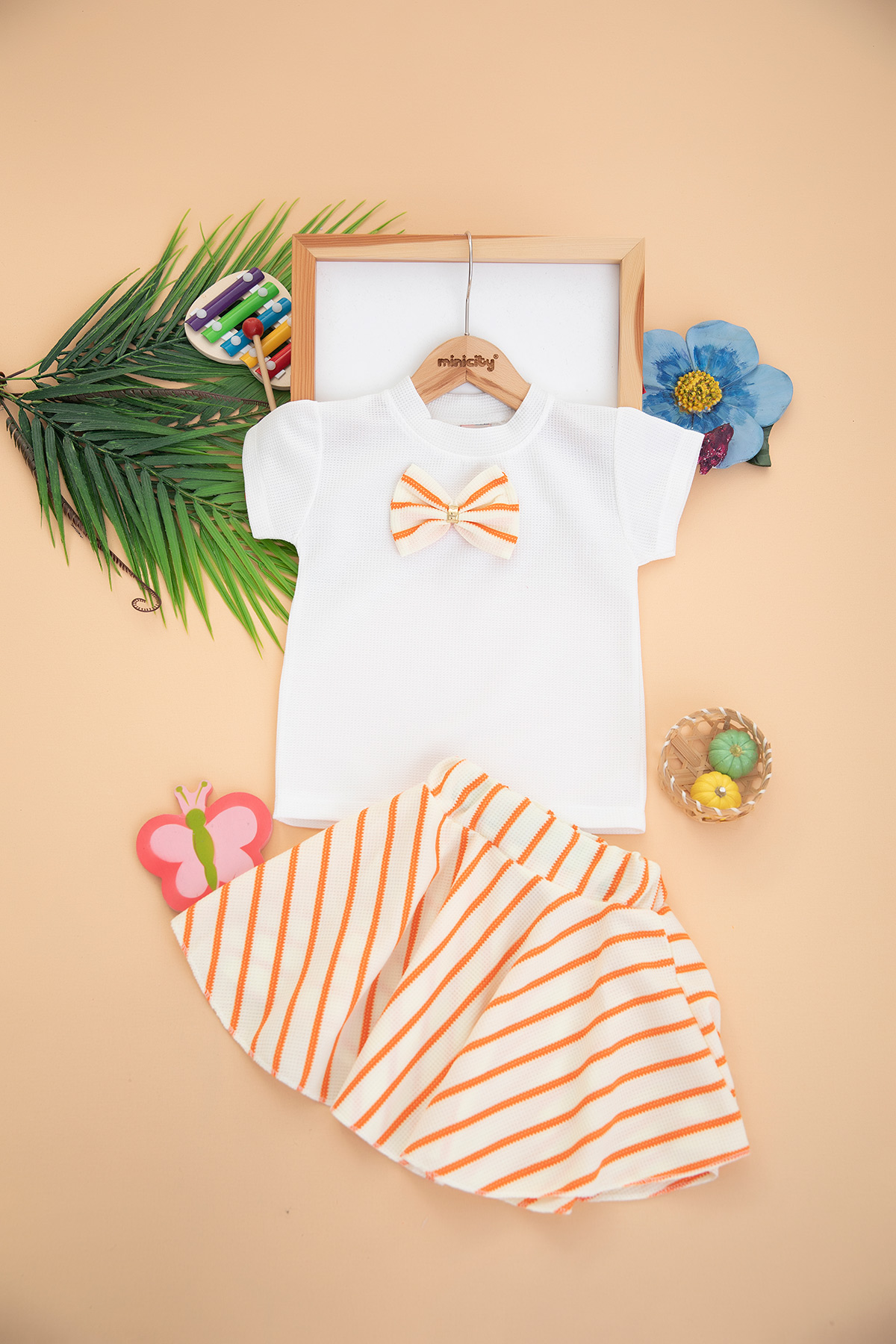 Kız Çocuk Fiyonklu Çizgili Etekli Takım - 2520 (3-7 Yaş)