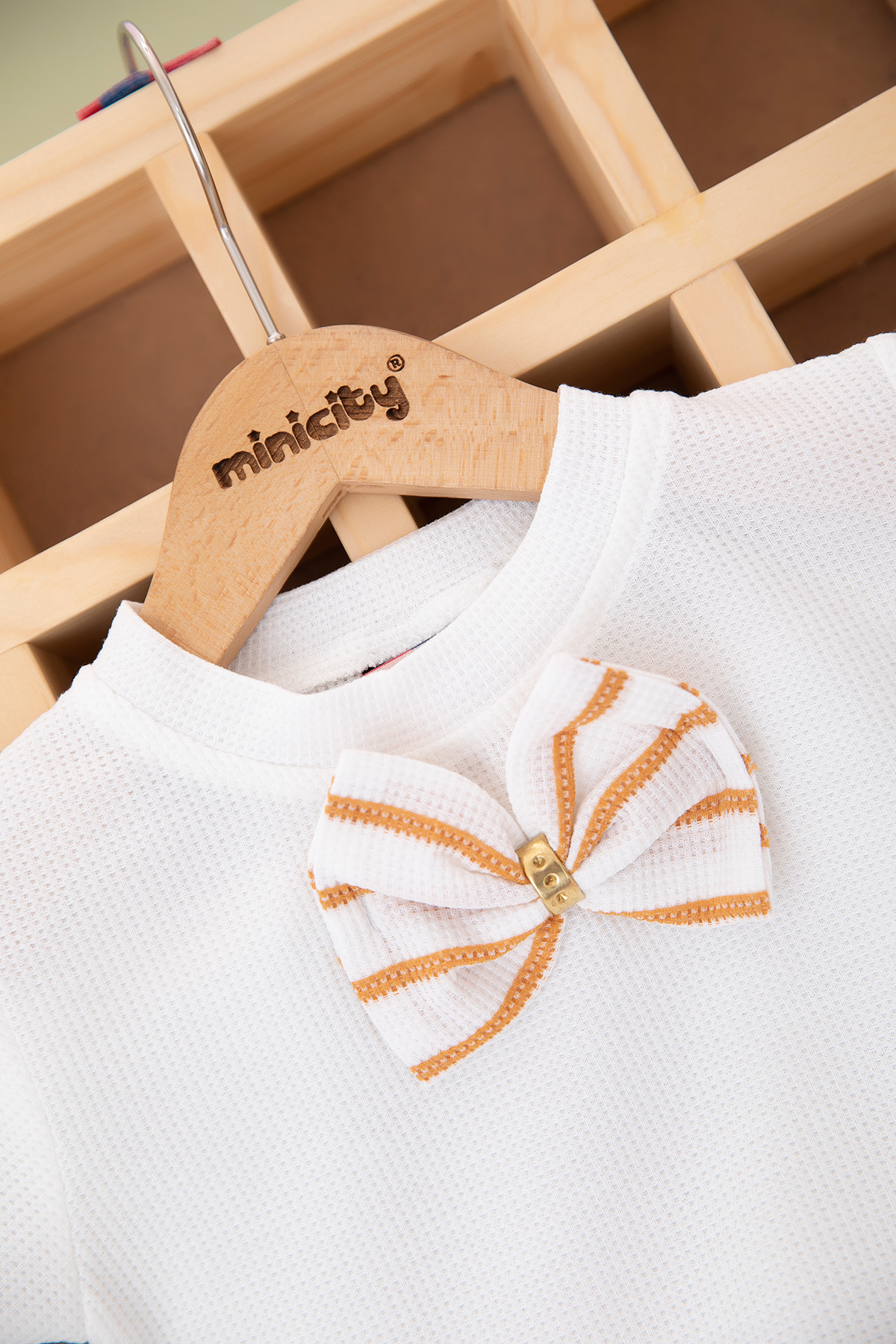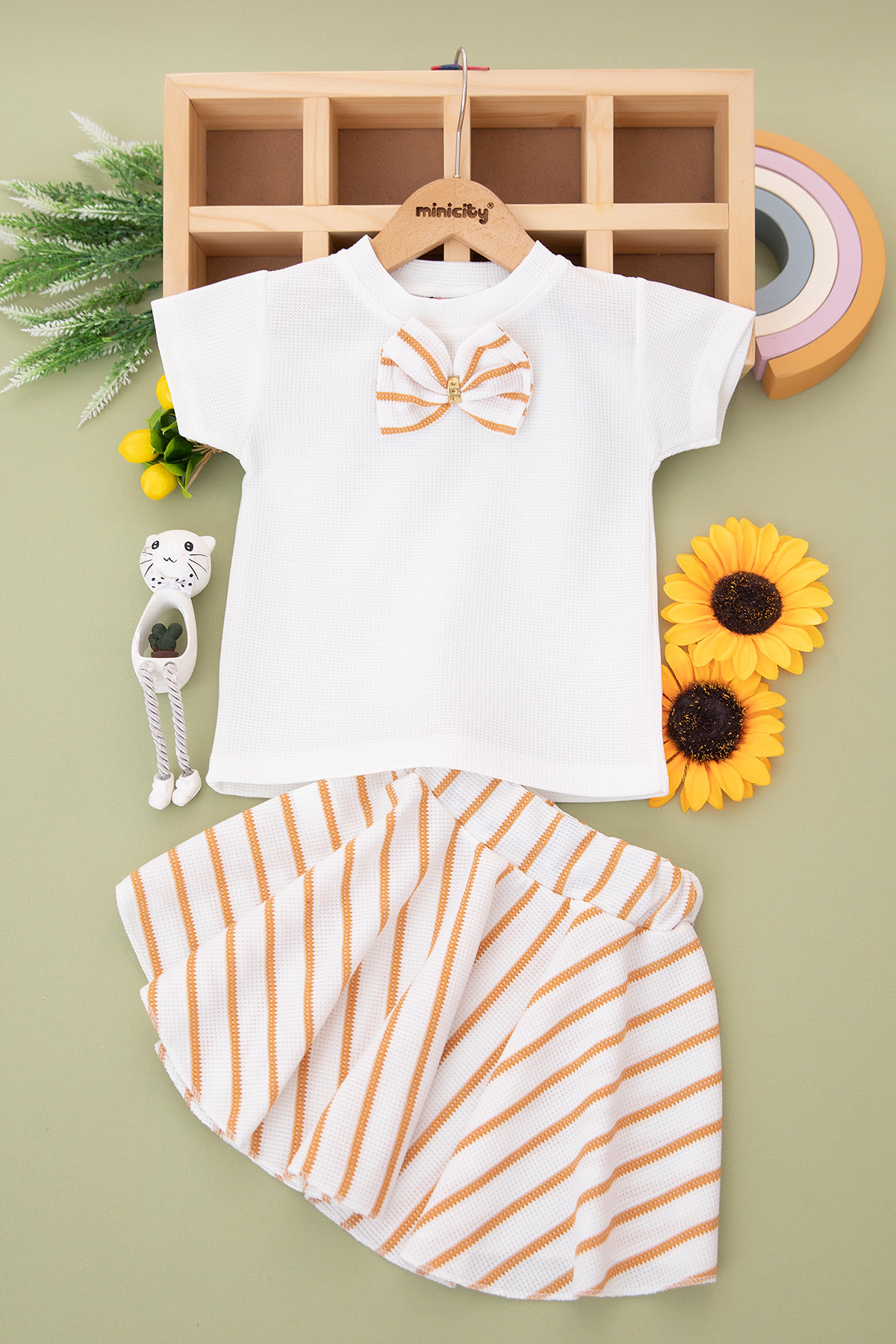 Kız Çocuk Fiyonklu Çizgili Etekli Takım - 2520 (3-7 Yaş)