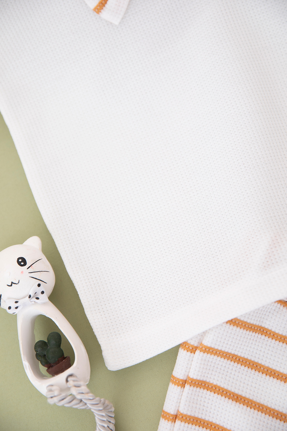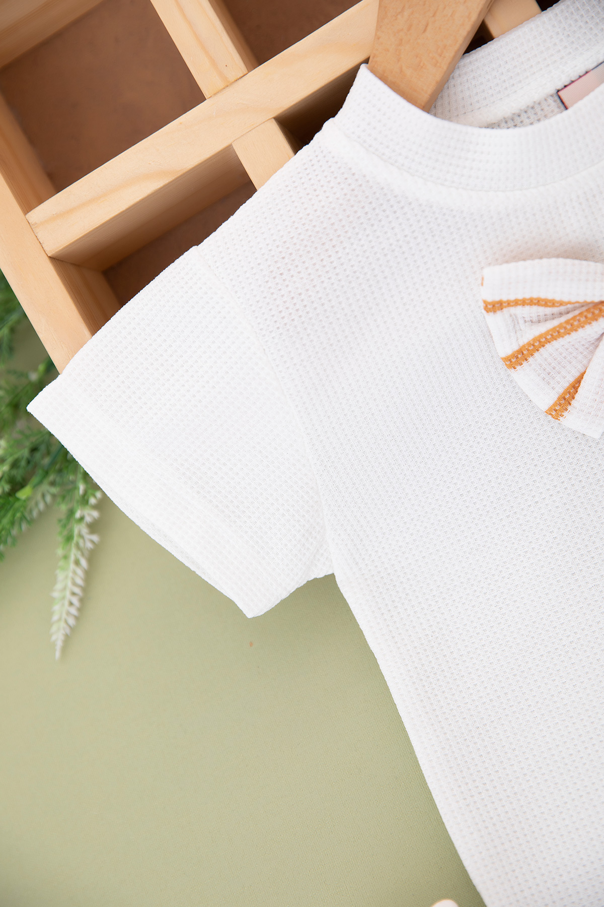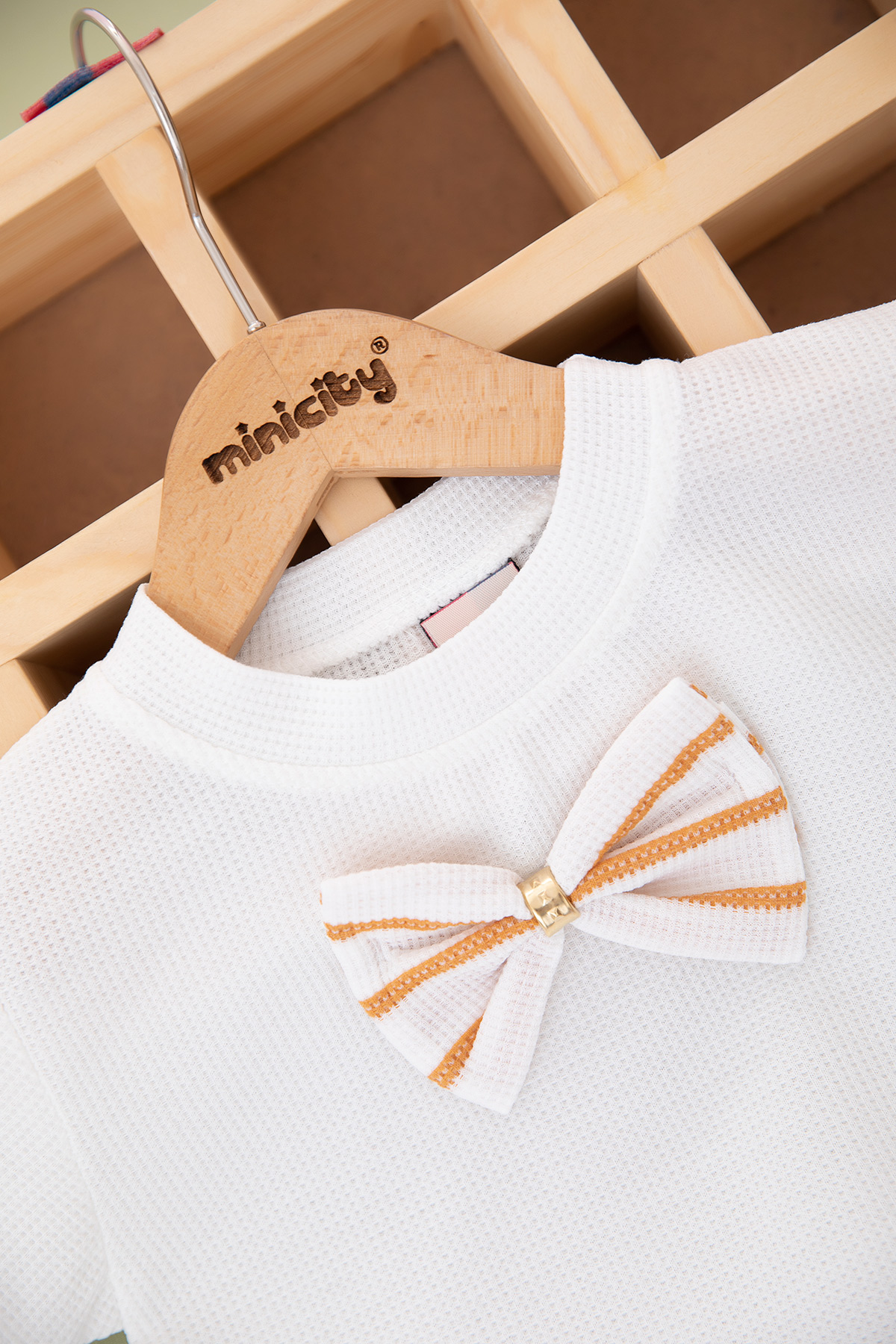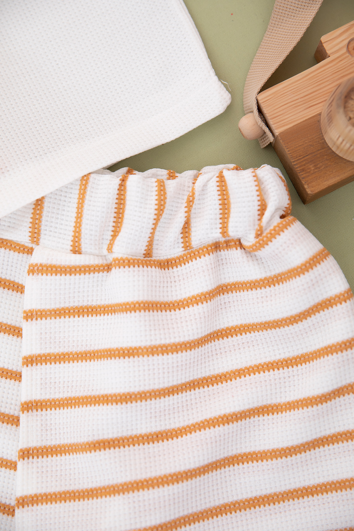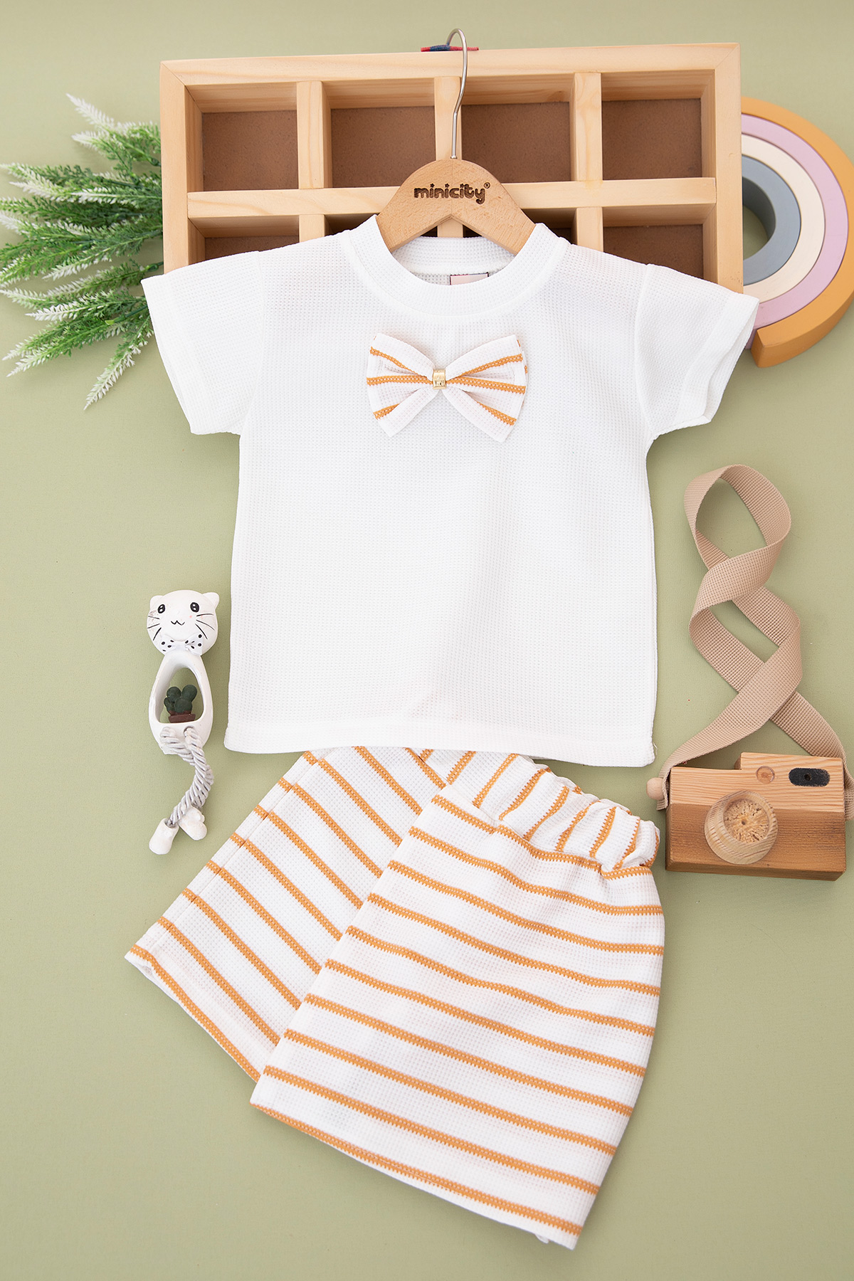 Kız Çocuk Fiyonklu Çizgili Şort Etekli Takım - 2520 (3-7 Yaş)