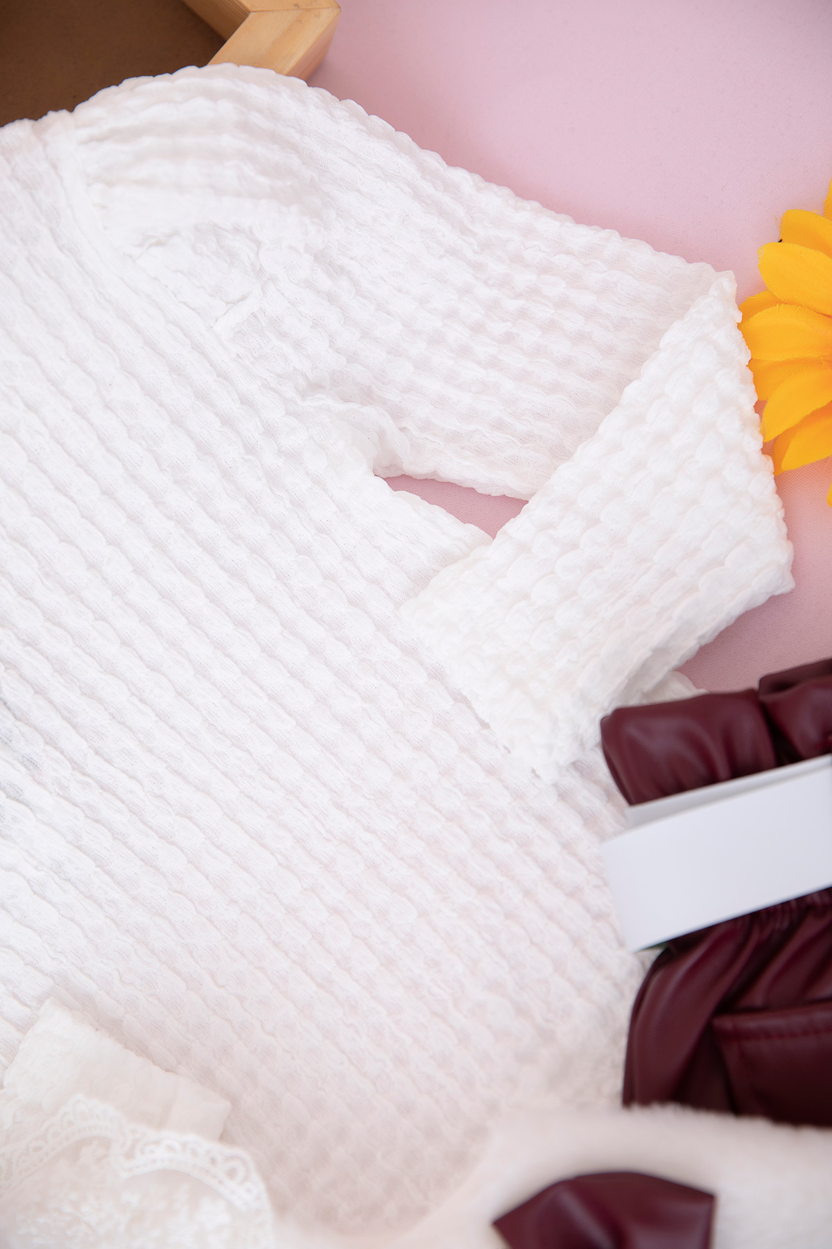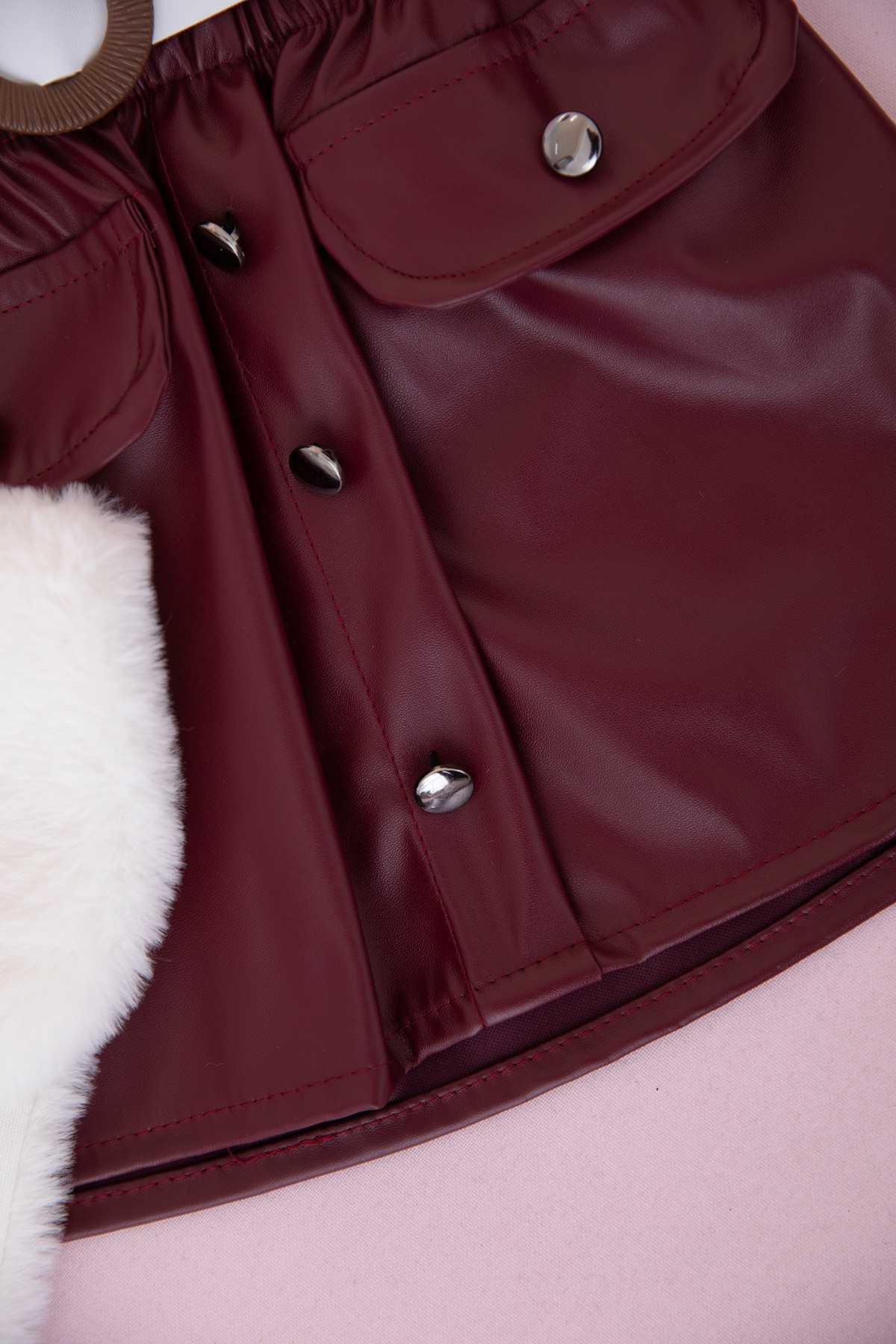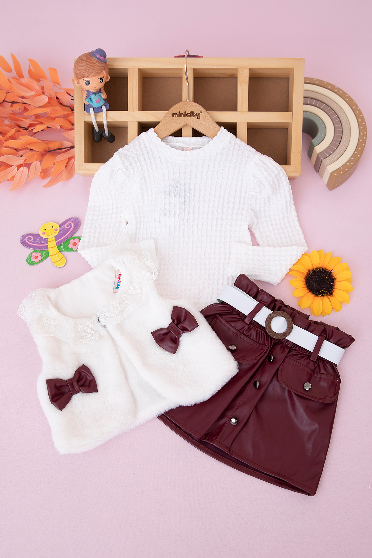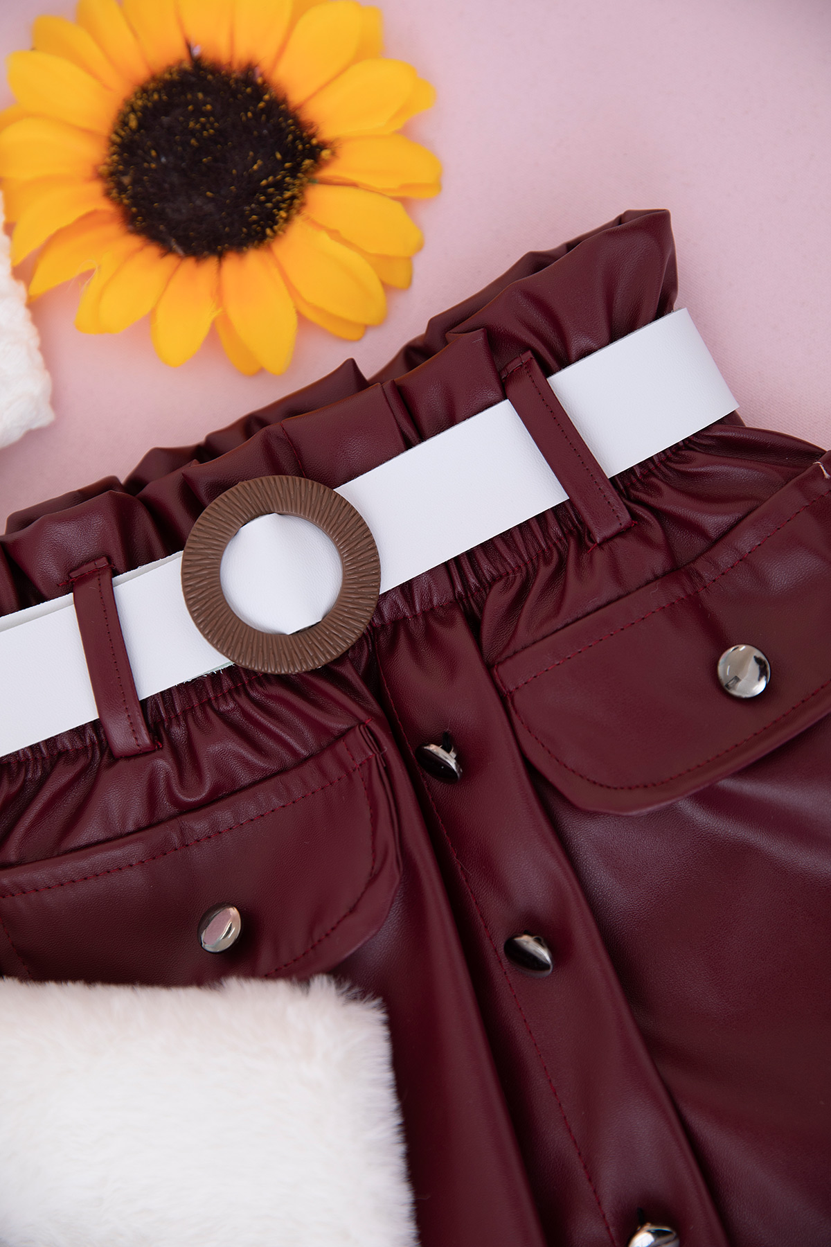 Kız Çocuk Fiyonklu Deri Etekli Takım - 25074 (2-5 Yaş)