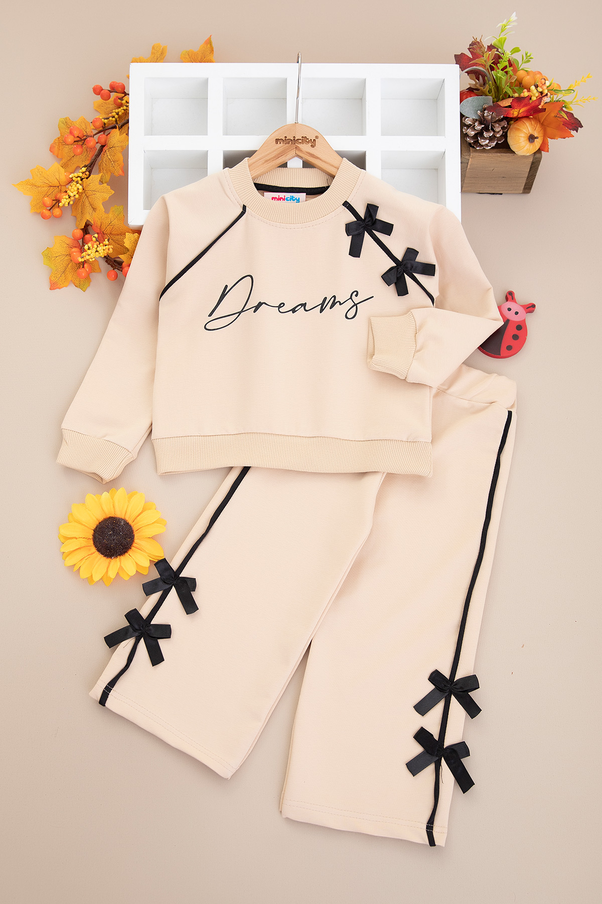 Kız Çocuk Fiyonklu Dreams Baskılı Takım (2-10 Yaş)