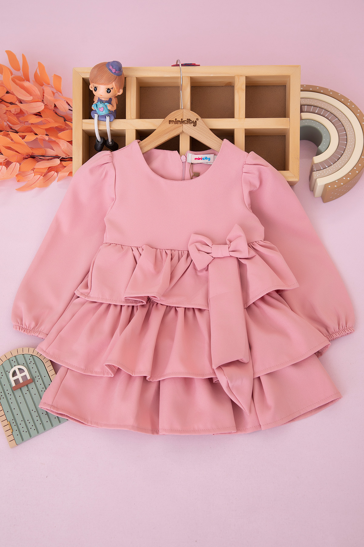 Kız Çocuk Fiyonklu Kat Kat Elbise - 526201 (3-7 Yaş)