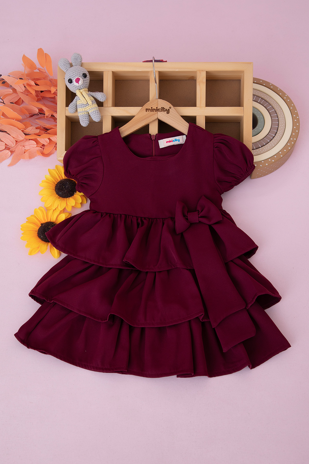 Kız Çocuk Fiyonklu Kat Kat Elbise - 526216 (3-7 Yaş)