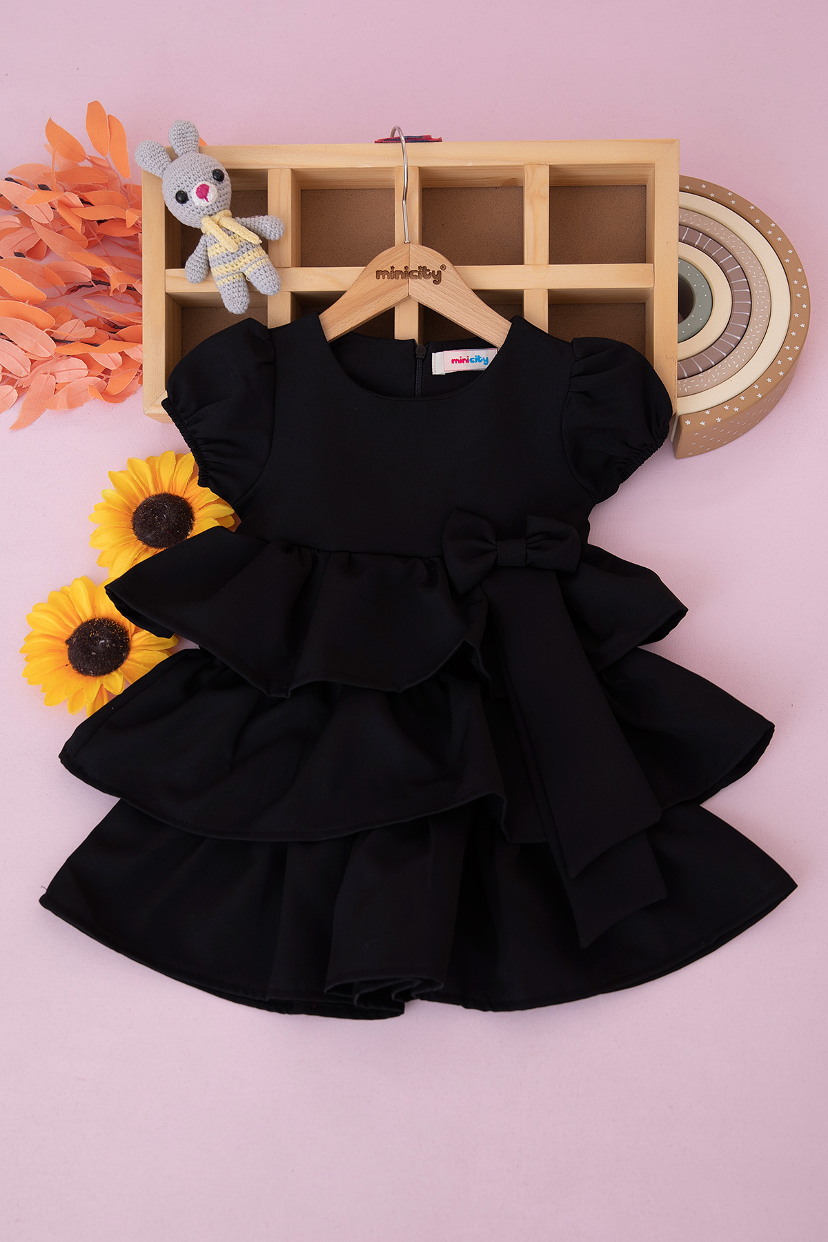 Kız Çocuk Fiyonklu Kat Kat Elbise - 526216 (3-7 Yaş)