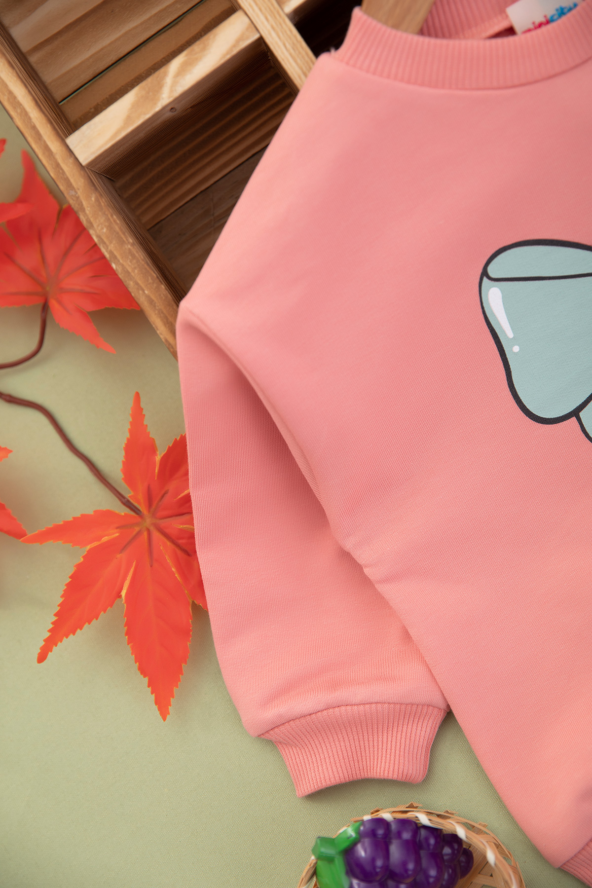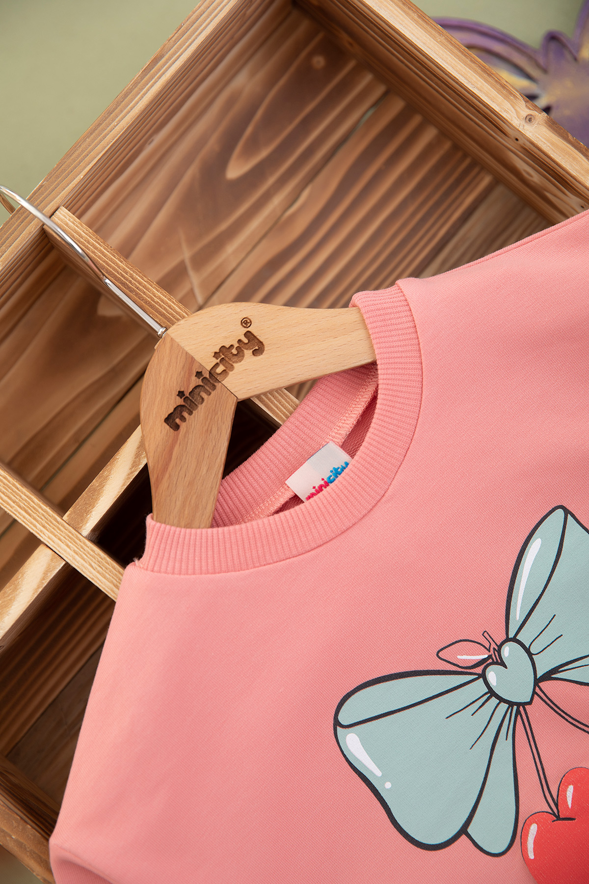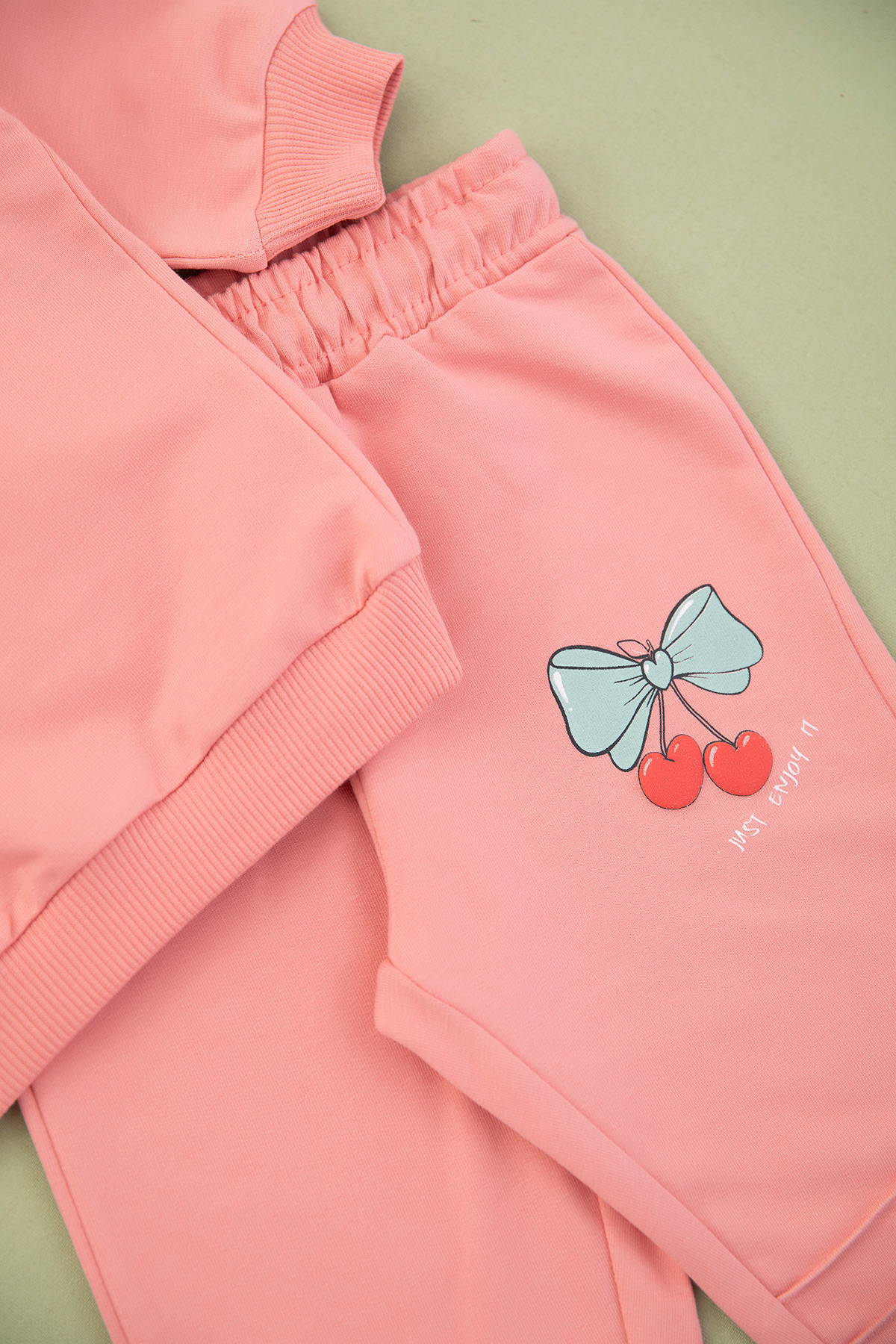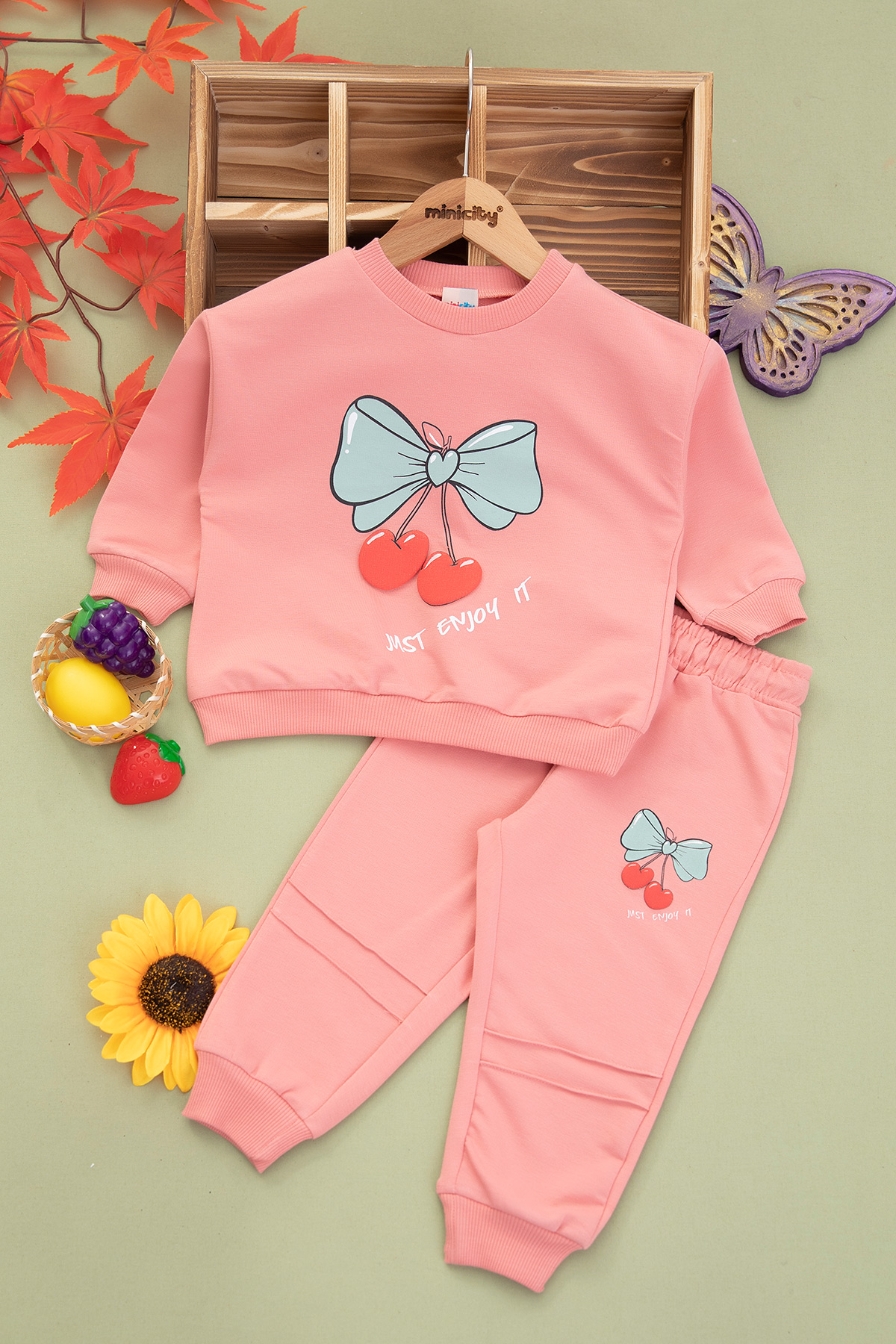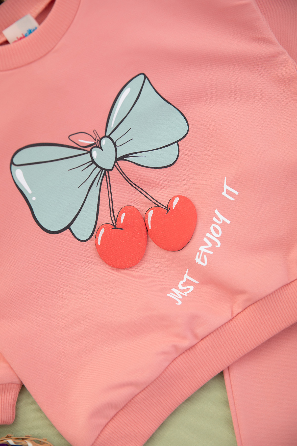 Kız Çocuk Fiyonklu Kiraz Baskılı Takım - 9110 (1-4 Yaş)