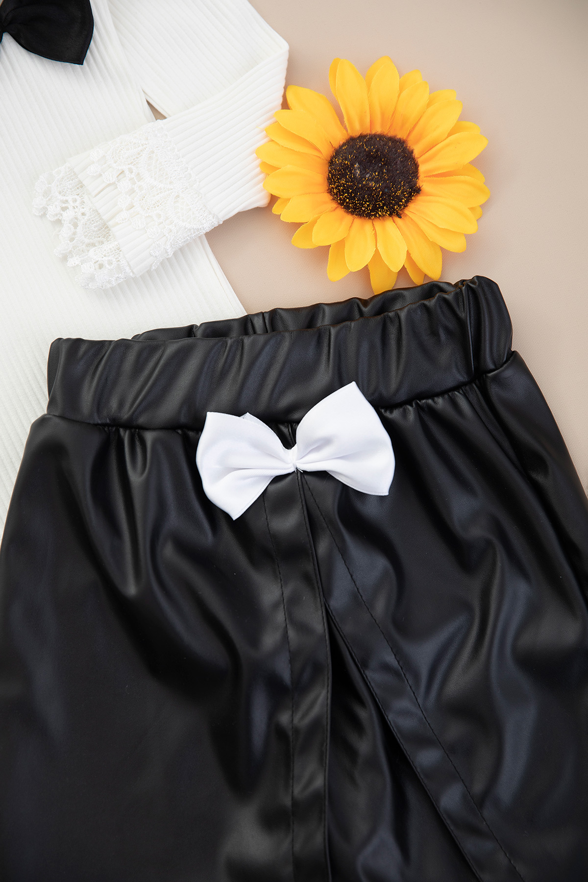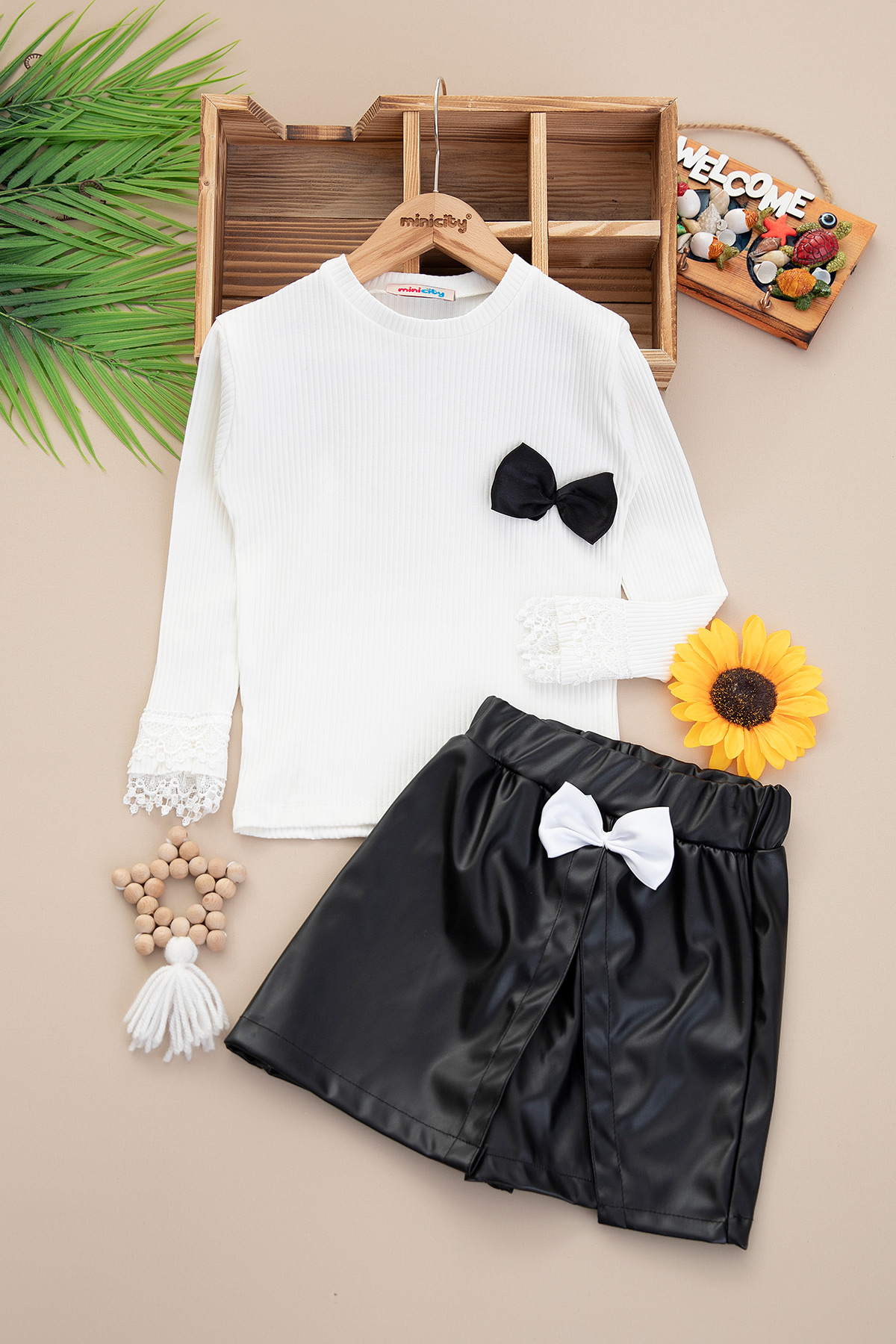 Kız Çocuk Fiyonklu Kolları Fistolu Takım - 1045 (4-11 Yaş)