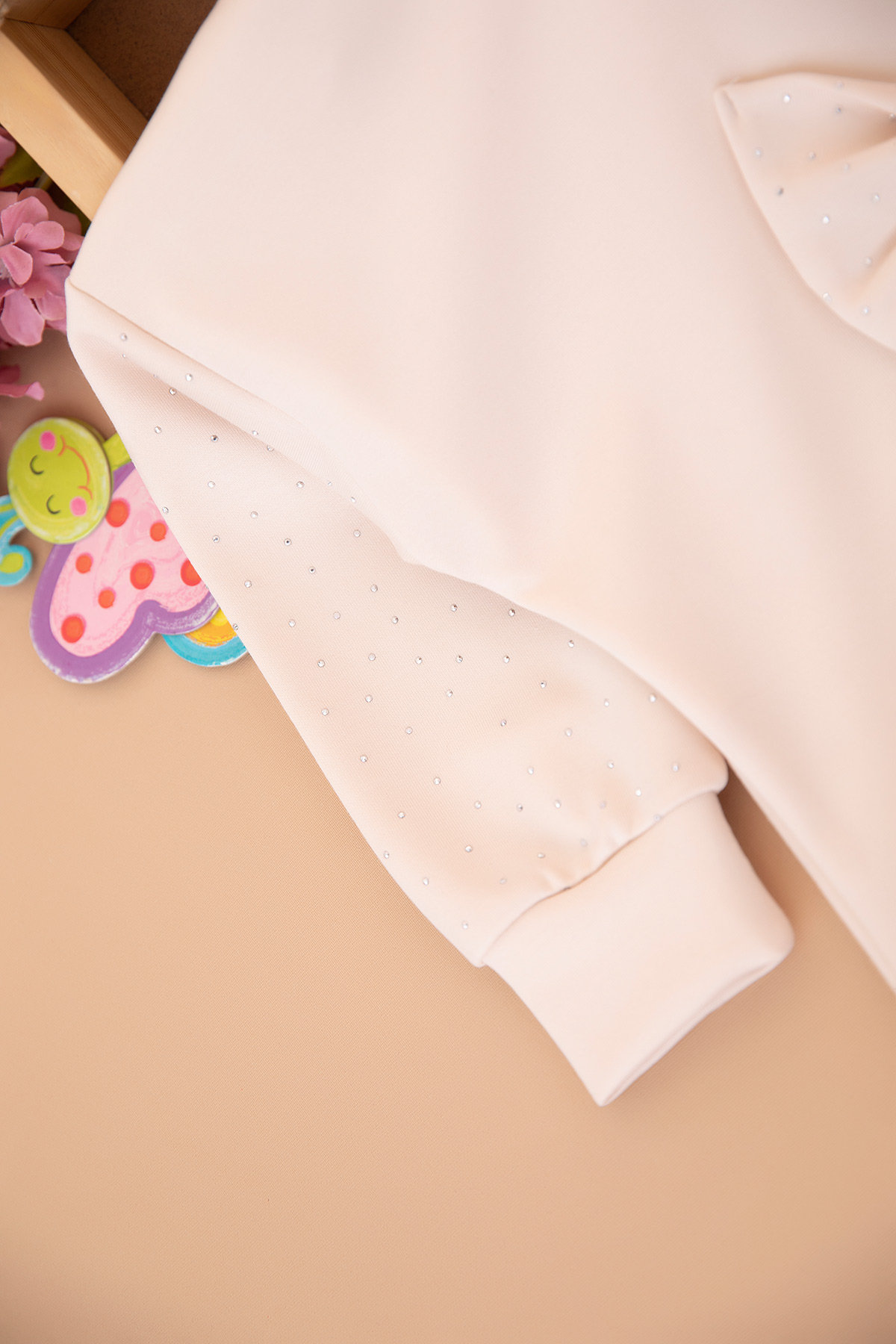 Kız Çocuk Fiyonklu Kolu Taşlı Sweat - 4136 (3-7 Yaş)