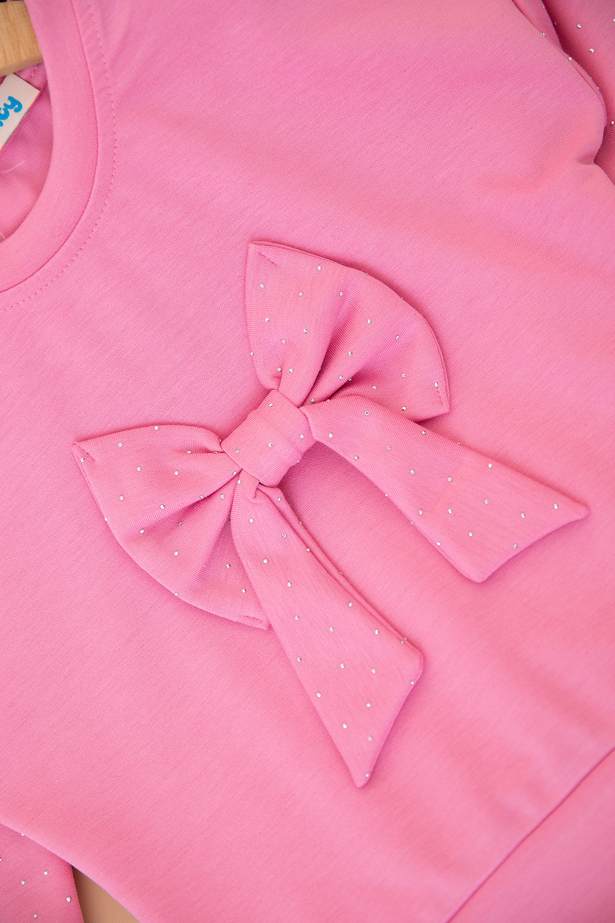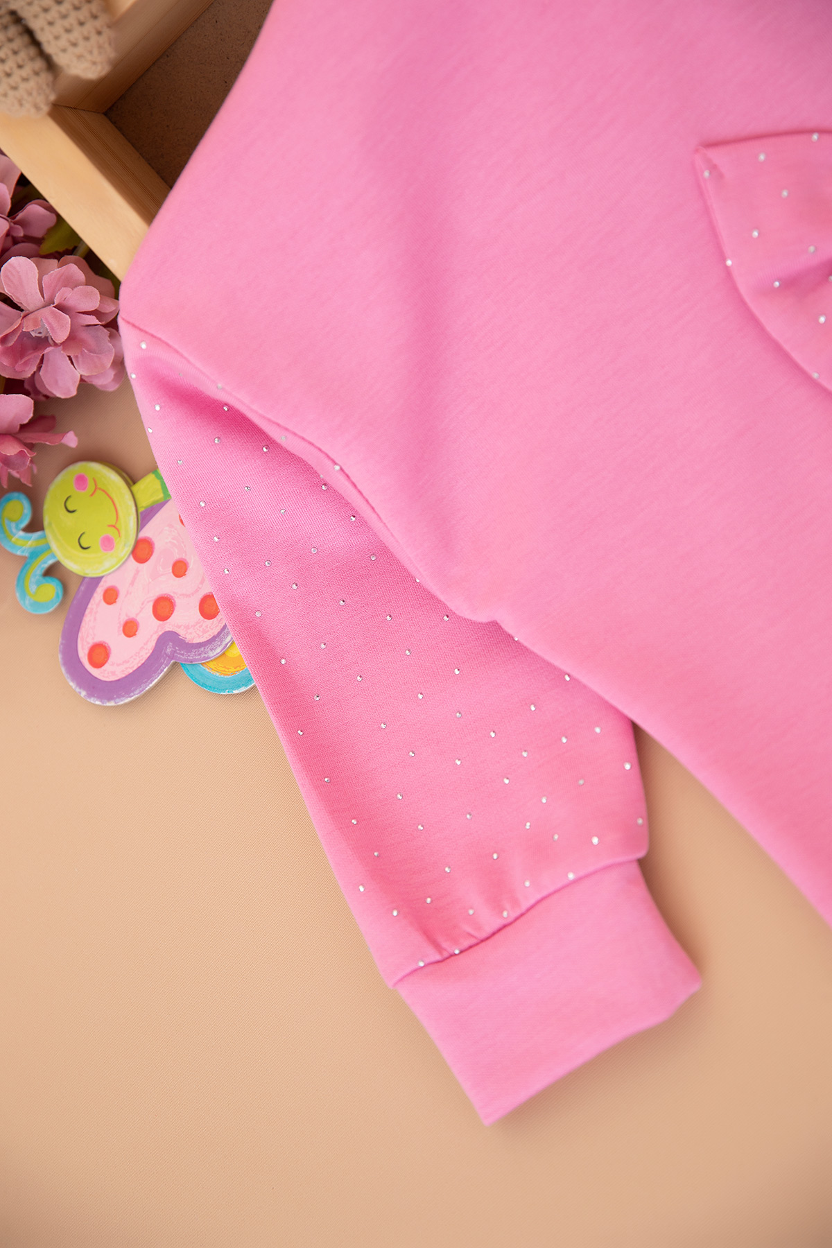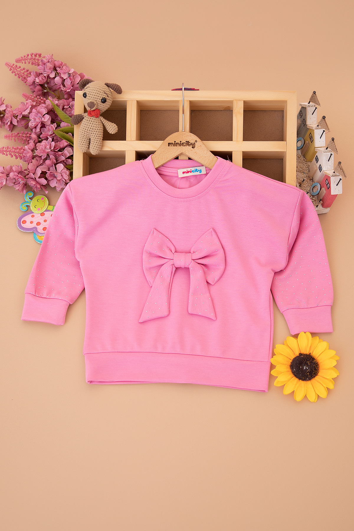 Kız Çocuk Fiyonklu Kolu Taşlı Sweat - 4136 (3-7 Yaş)