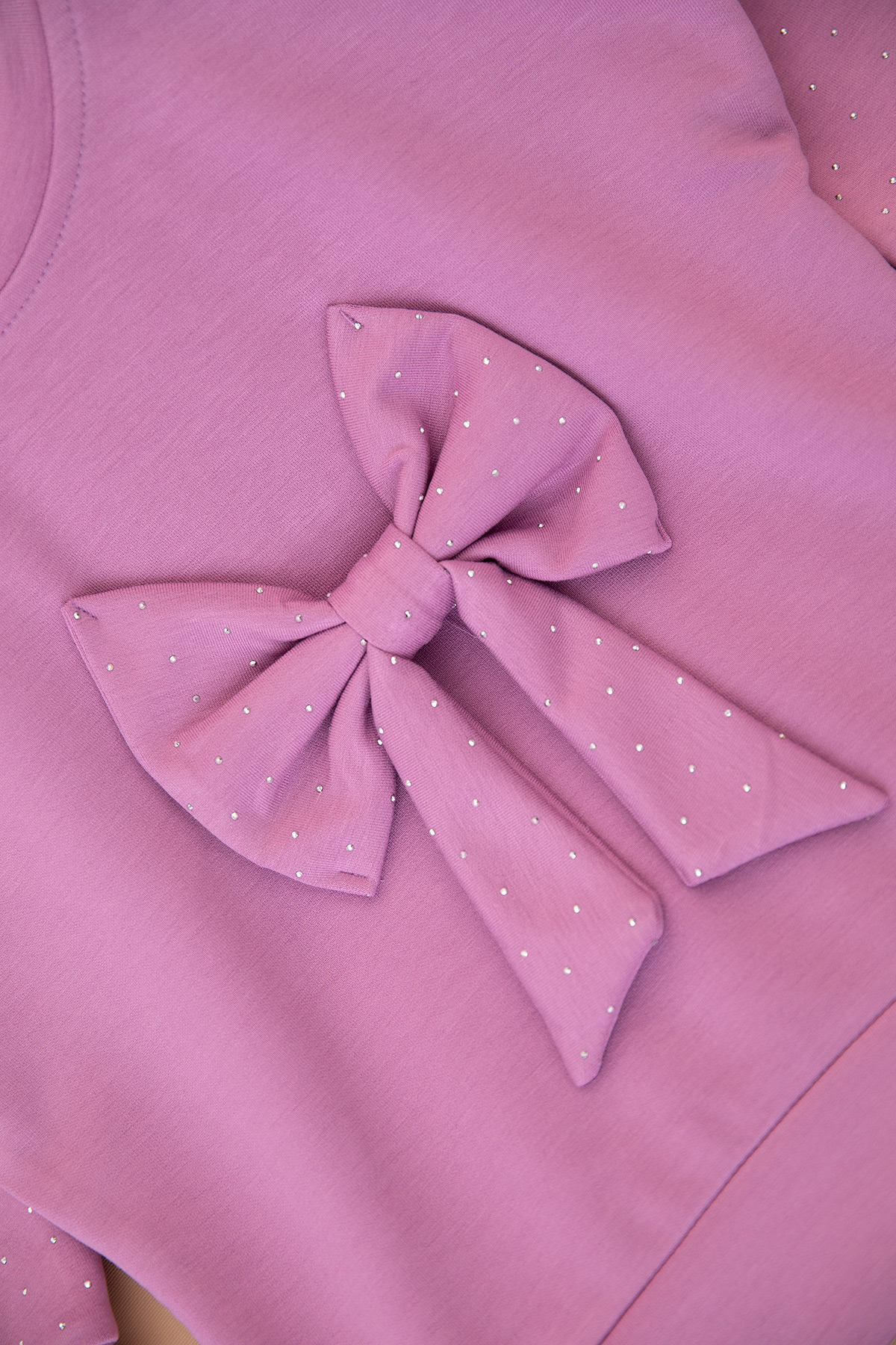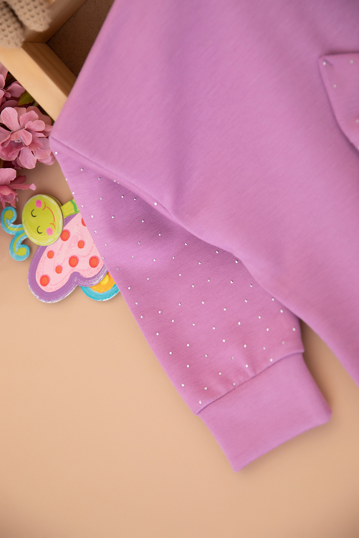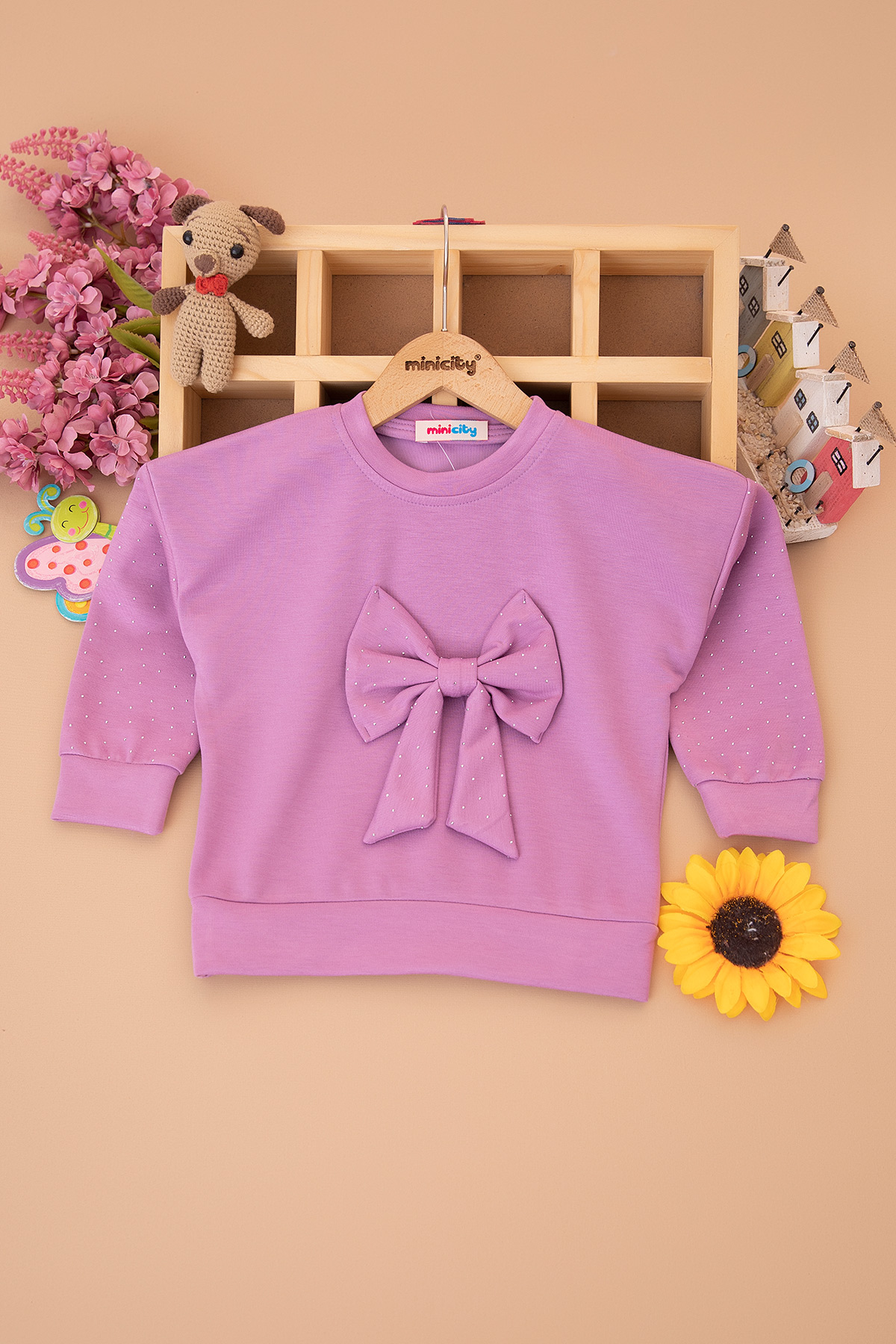 Kız Çocuk Fiyonklu Kolu Taşlı Sweat - 4136 (3-7 Yaş)