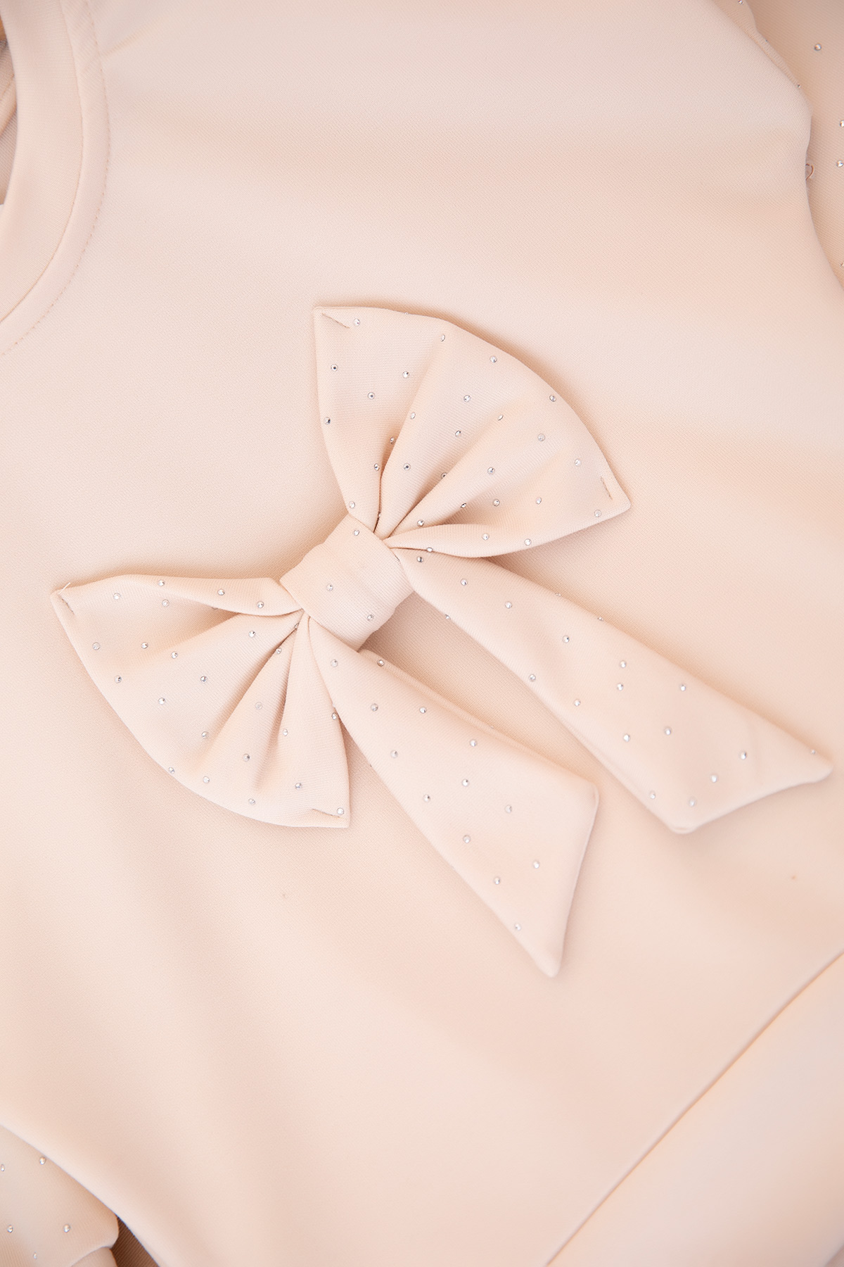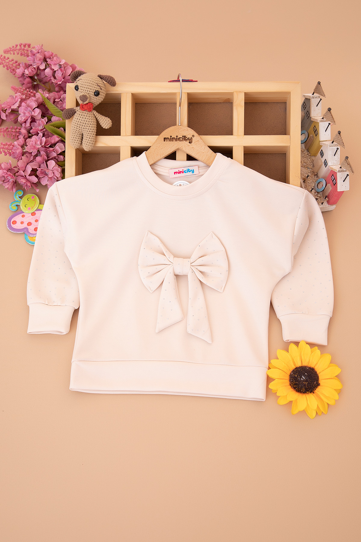 Kız Çocuk Fiyonklu Kolu Taşlı Sweat - 4137 (8-12 Yaş)