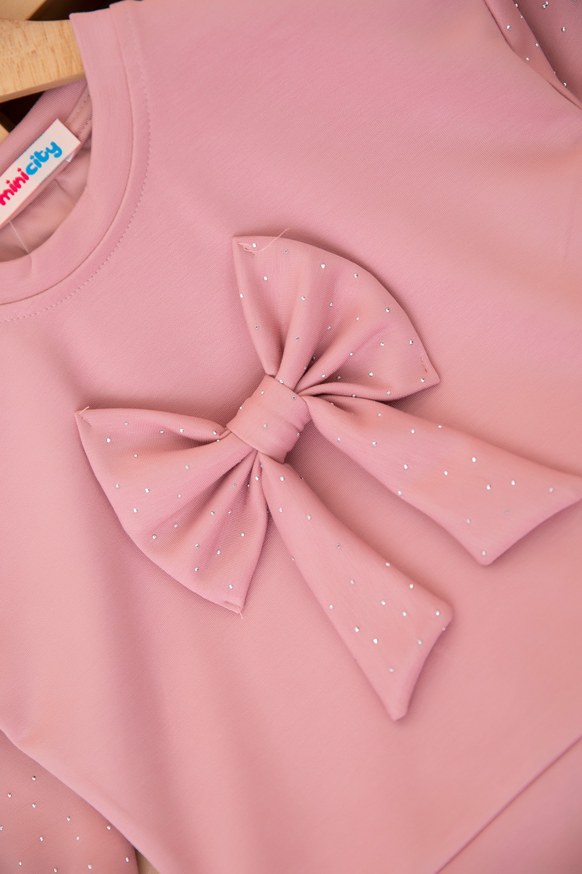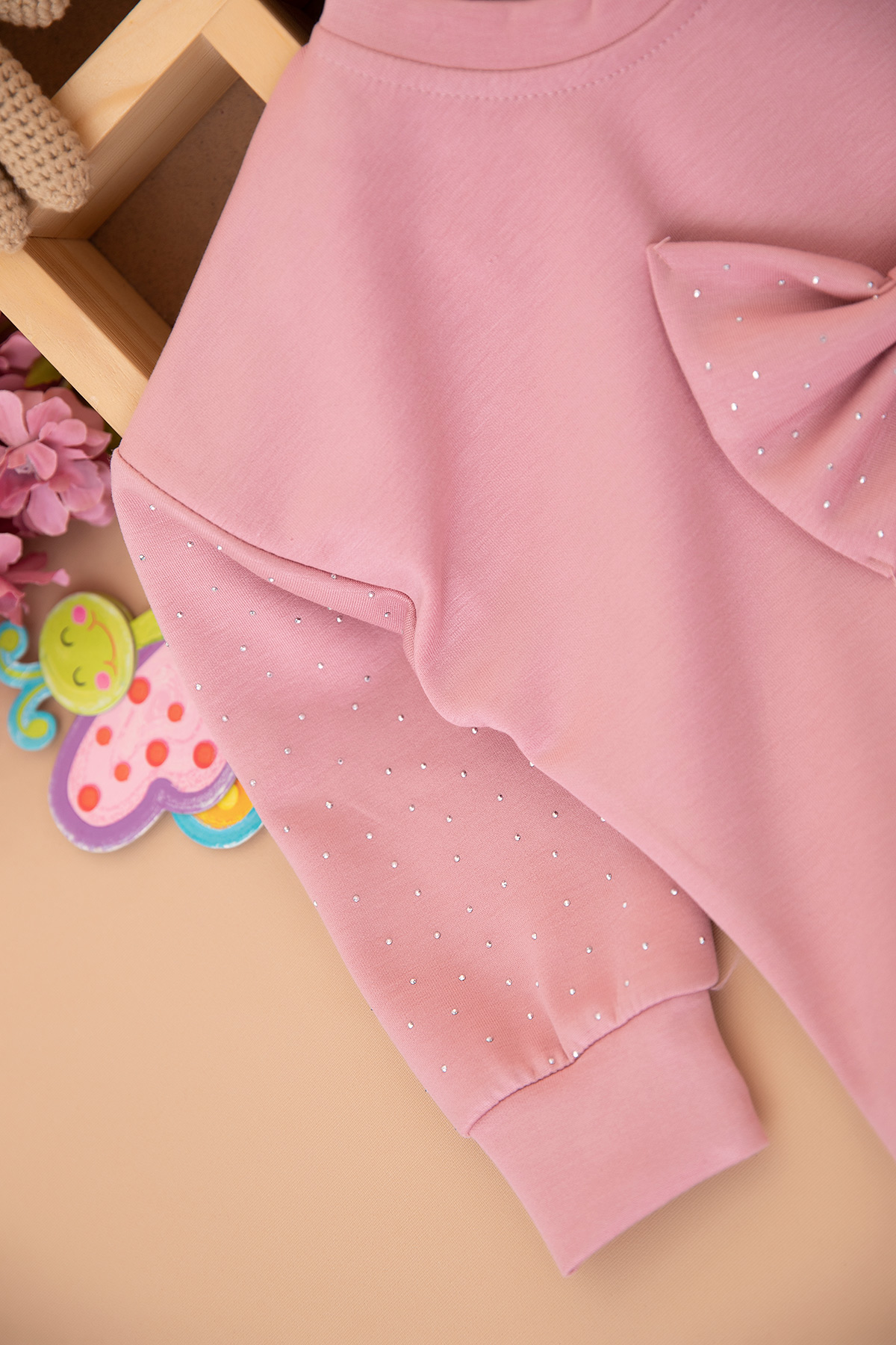 Kız Çocuk Fiyonklu Kolu Taşlı Sweat - 4137 (8-12 Yaş)