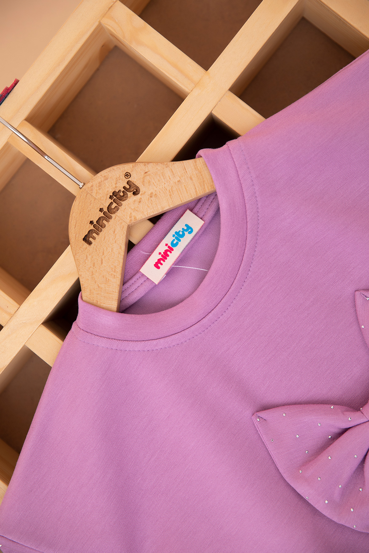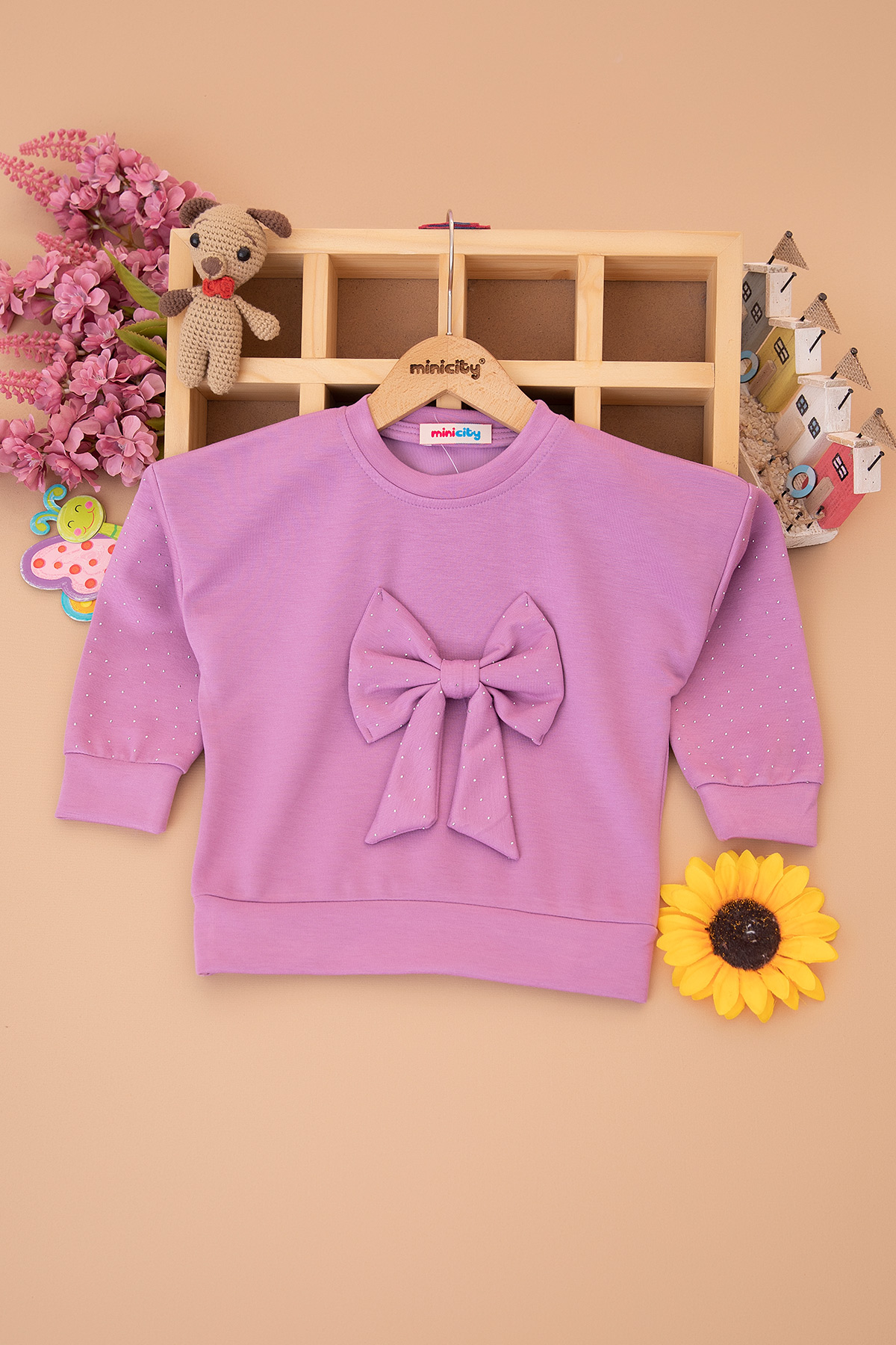 Kız Çocuk Fiyonklu Kolu Taşlı Sweat - 4137 (8-12 Yaş)