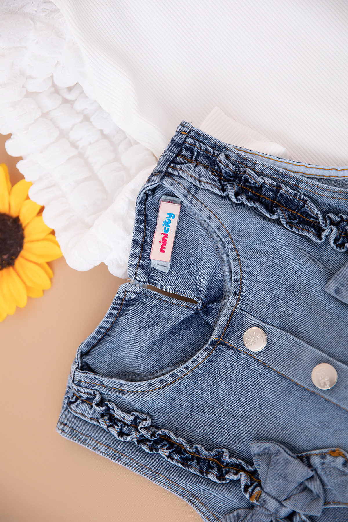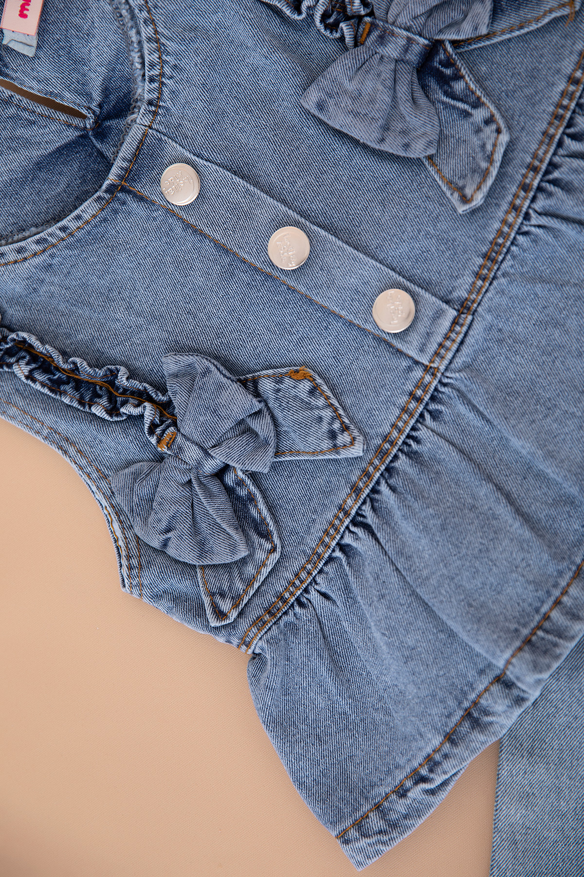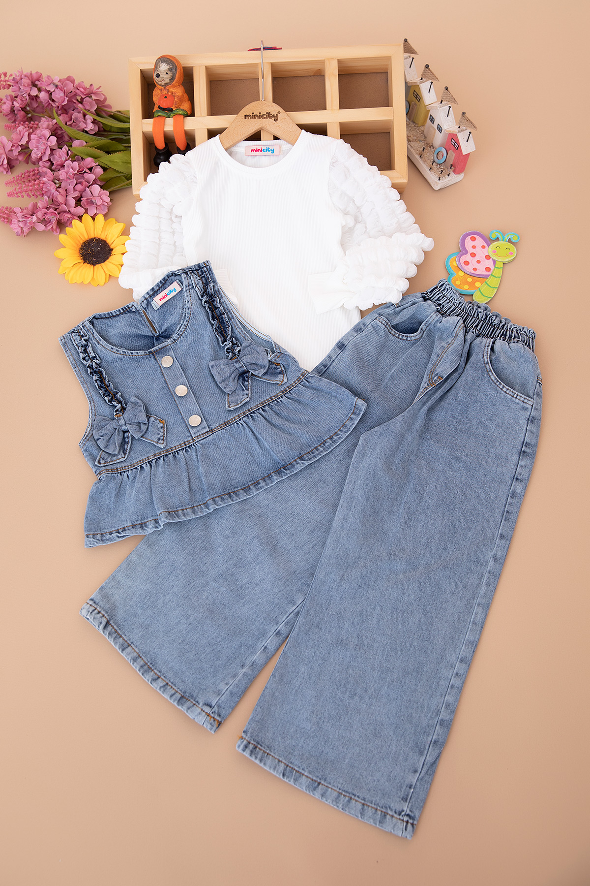 Kız Çocuk Fiyonklu Kot Üçlü Takım - 2603 (6-10 Yaş)