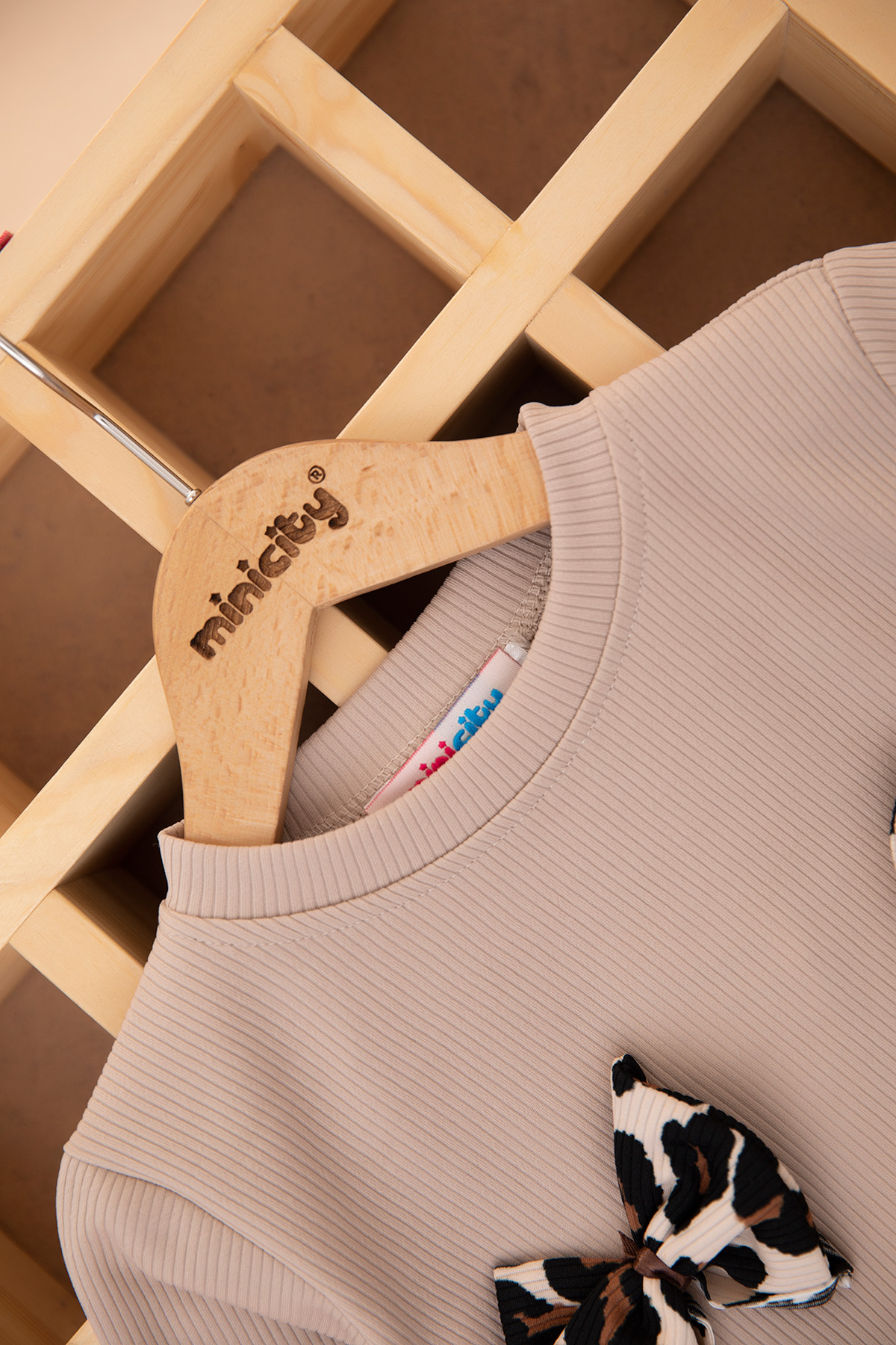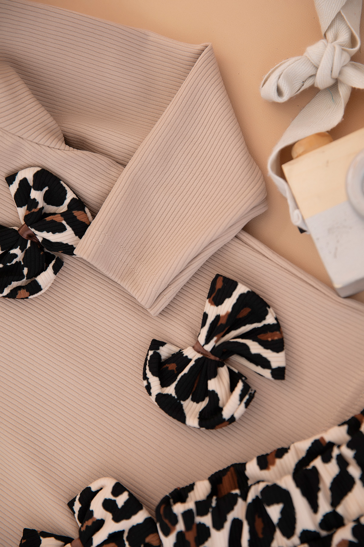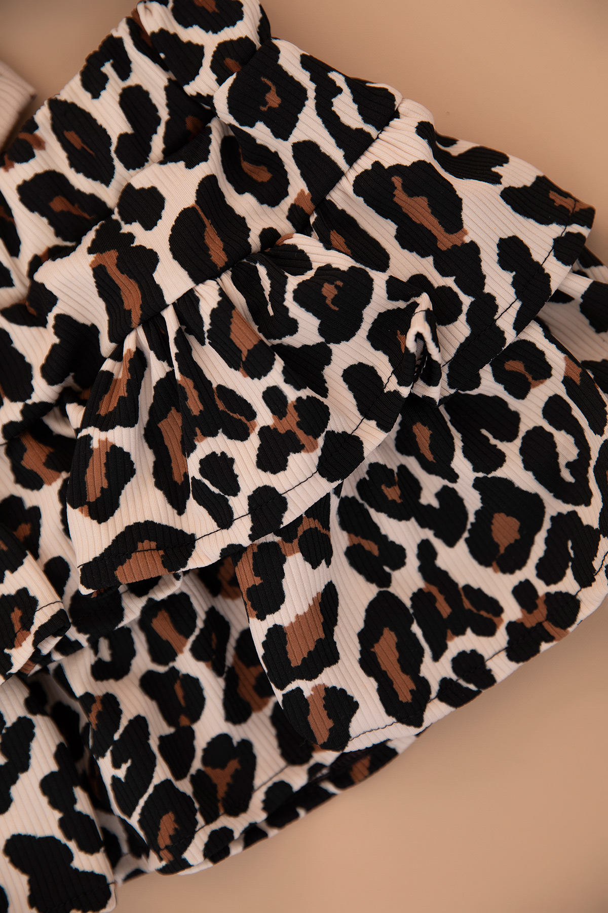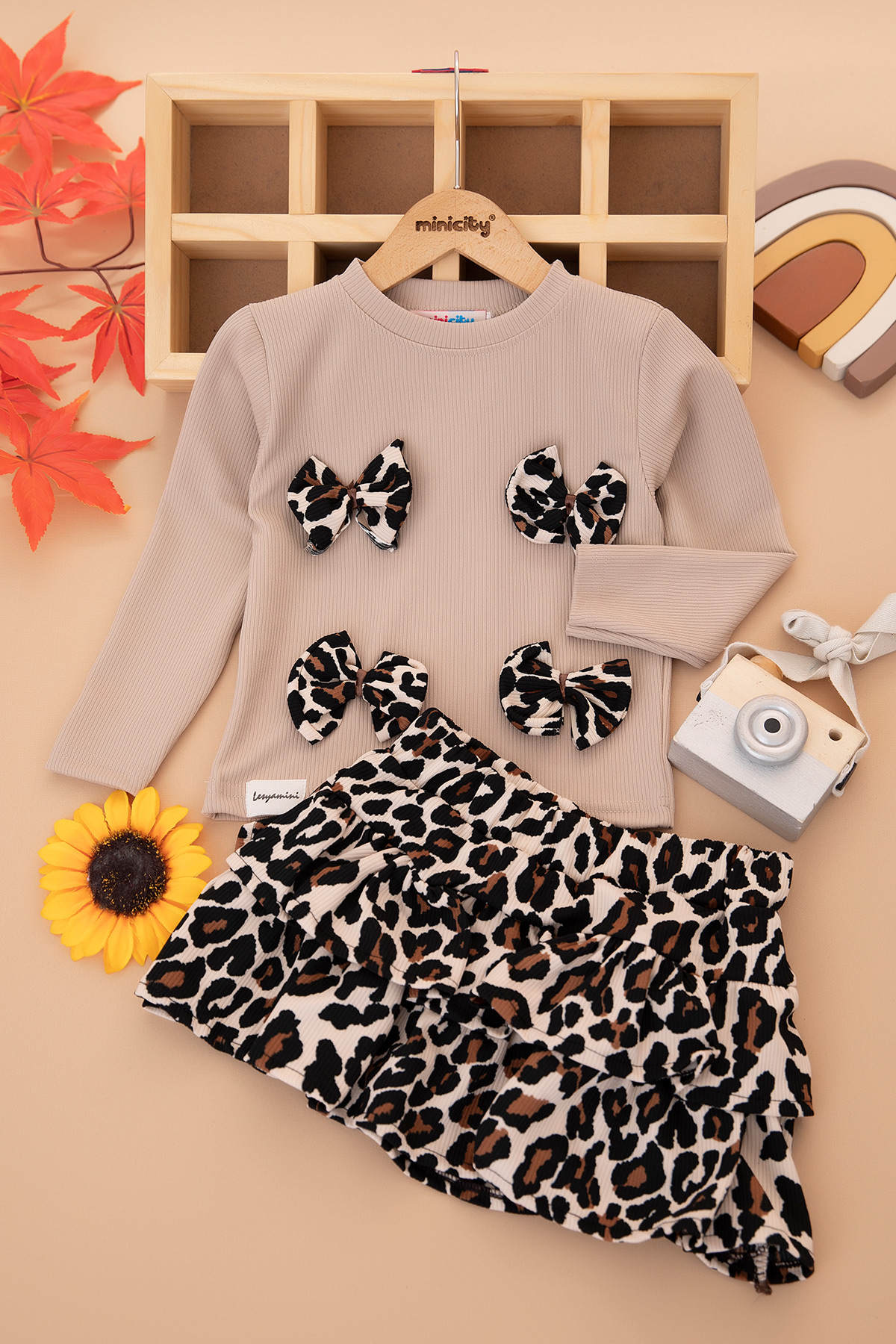 Kız Çocuk Fiyonklu Leopar Etekli Takım - K-6003 (2-8 Yaş)