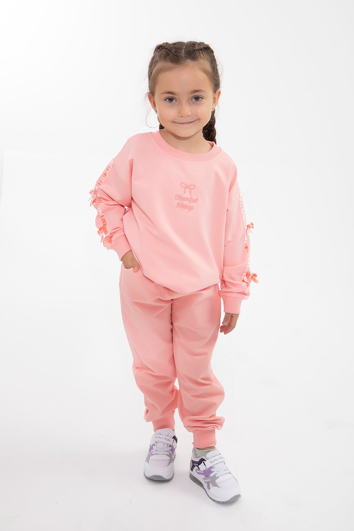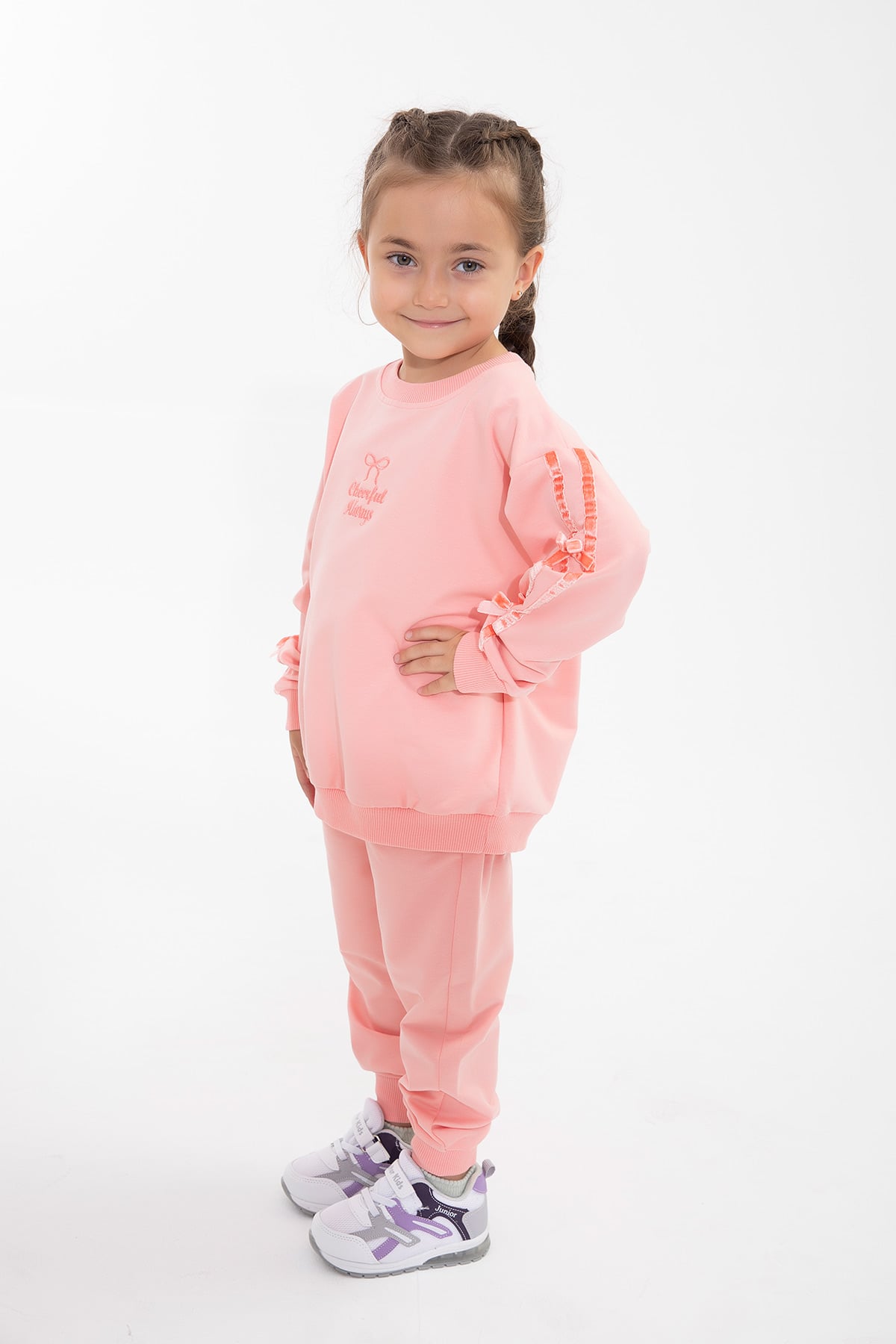 Kız Çocuk Fiyonklu Nakışlı Takım - 25711 (3-6 Yaş)