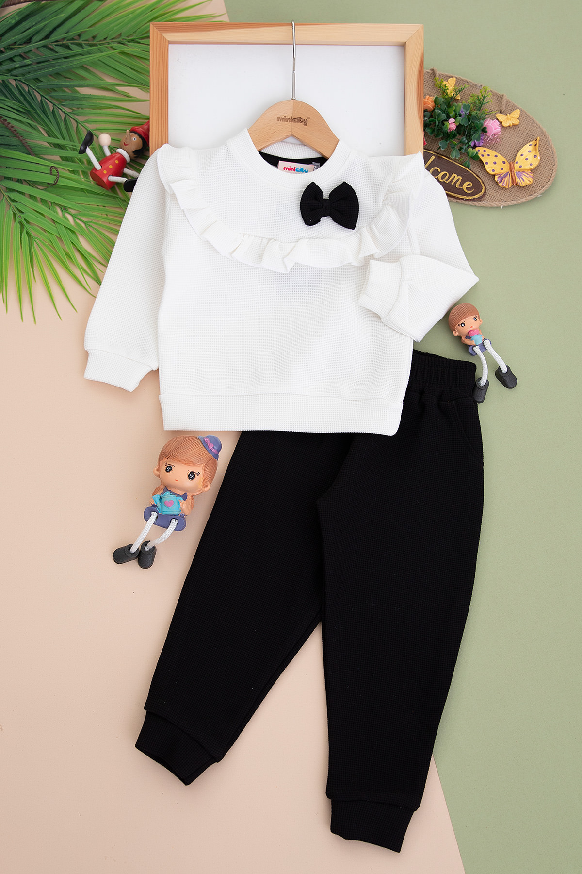 Kız Çocuk Fiyonklu Robası Fırfırlı Takım - 3604 (1-3 Yaş)