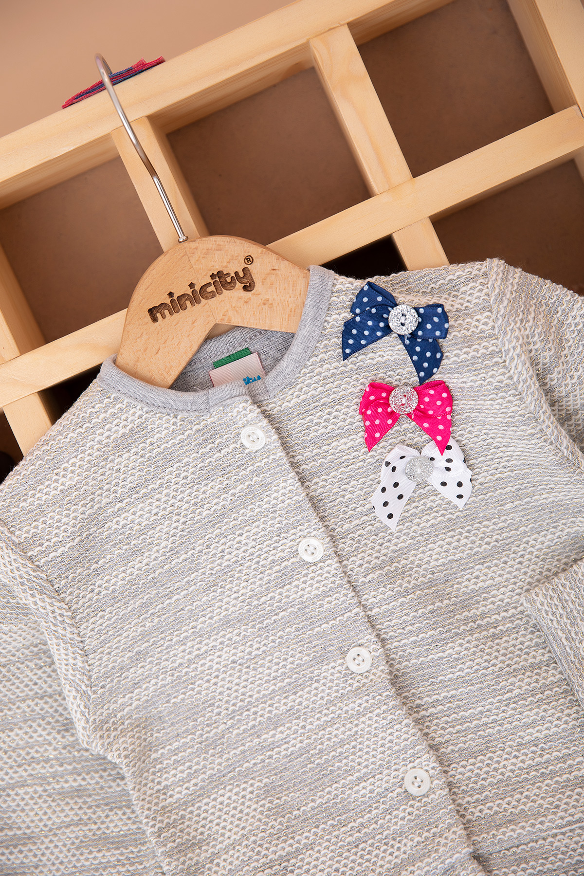Kız Çocuk Fiyonklu Simli Hırka - (1-8 Yaş)
