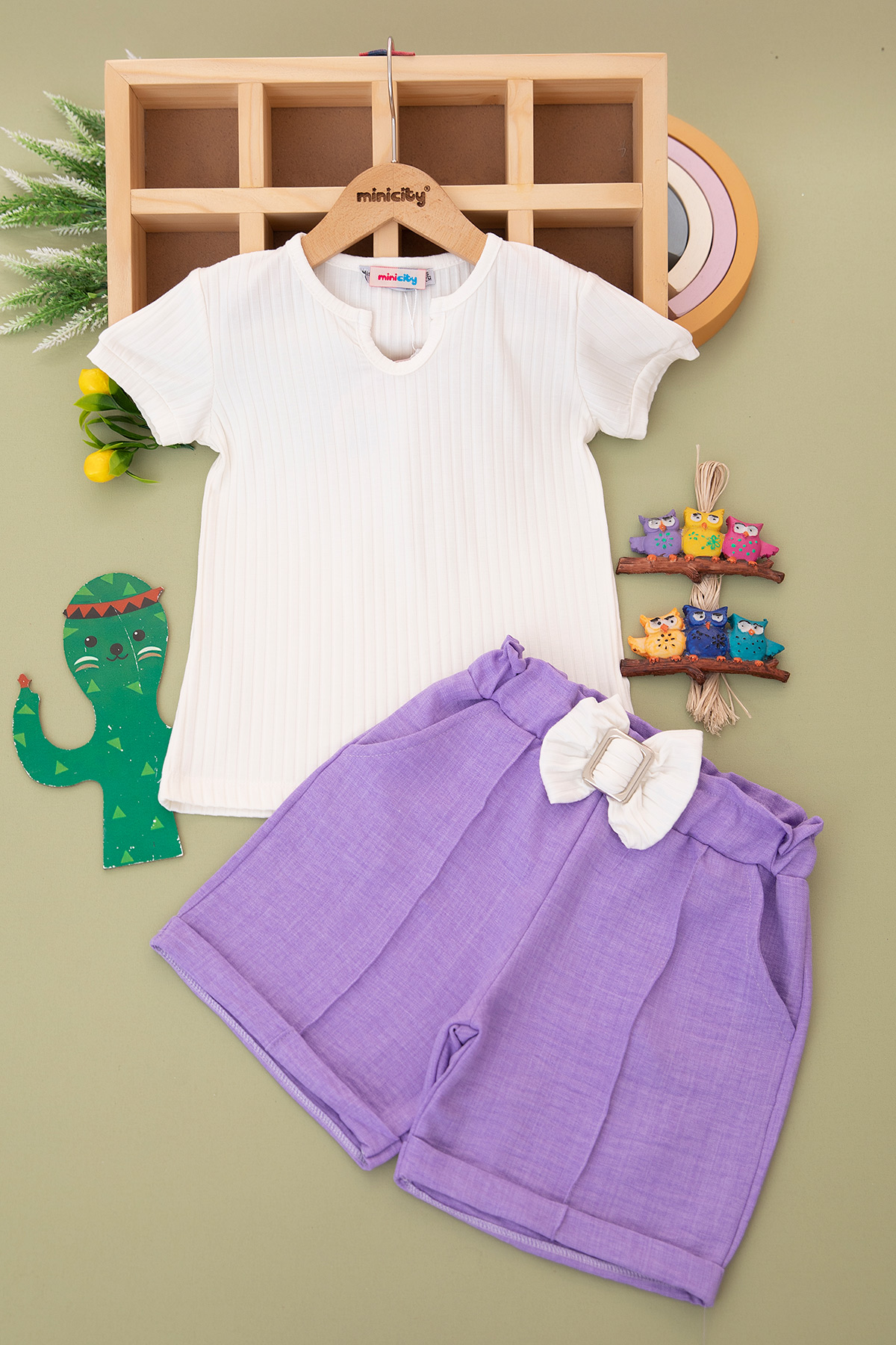 Kız Çocuk Fiyonklu Şortlu Takım - 6372 (3-6 Yaş)