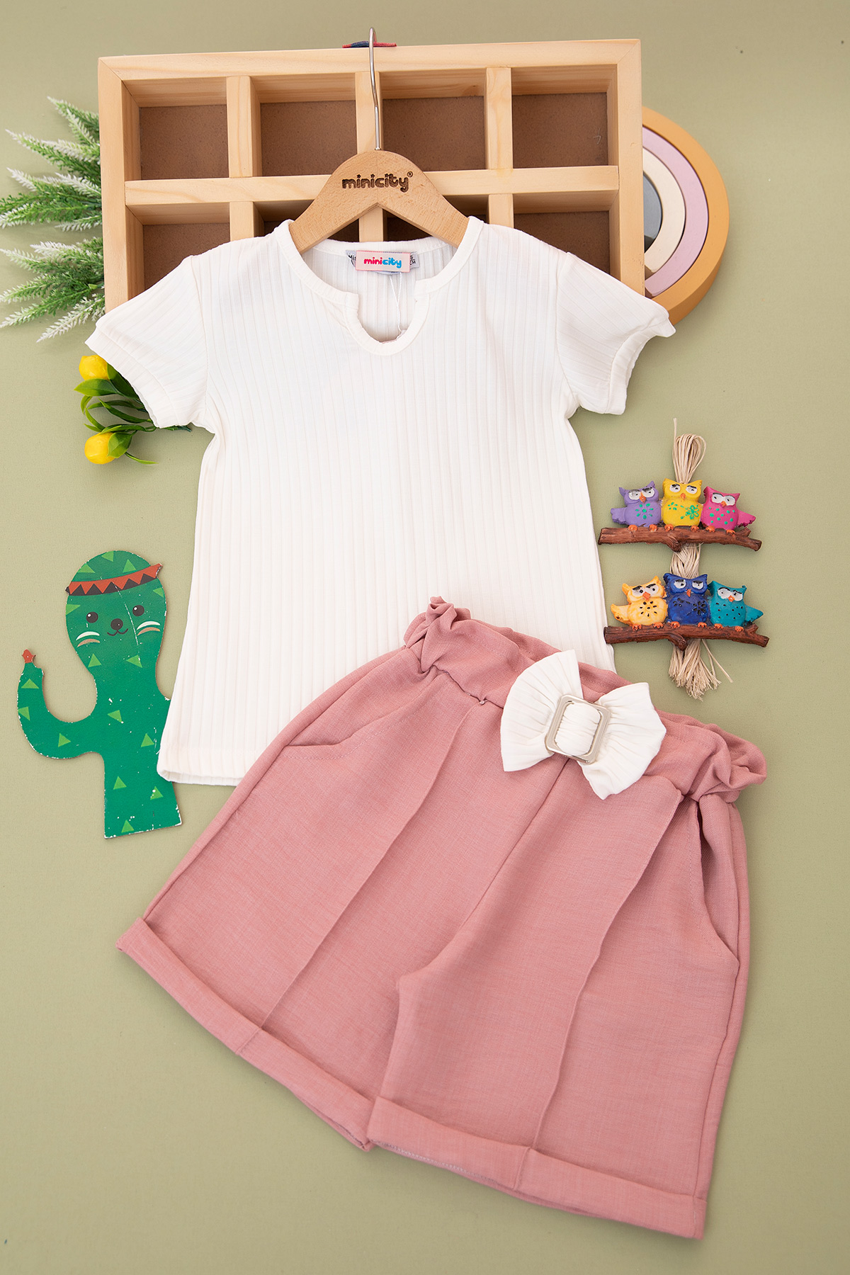 Kız Çocuk Fiyonklu Şortlu Takım - 6373 (7-10 Yaş)