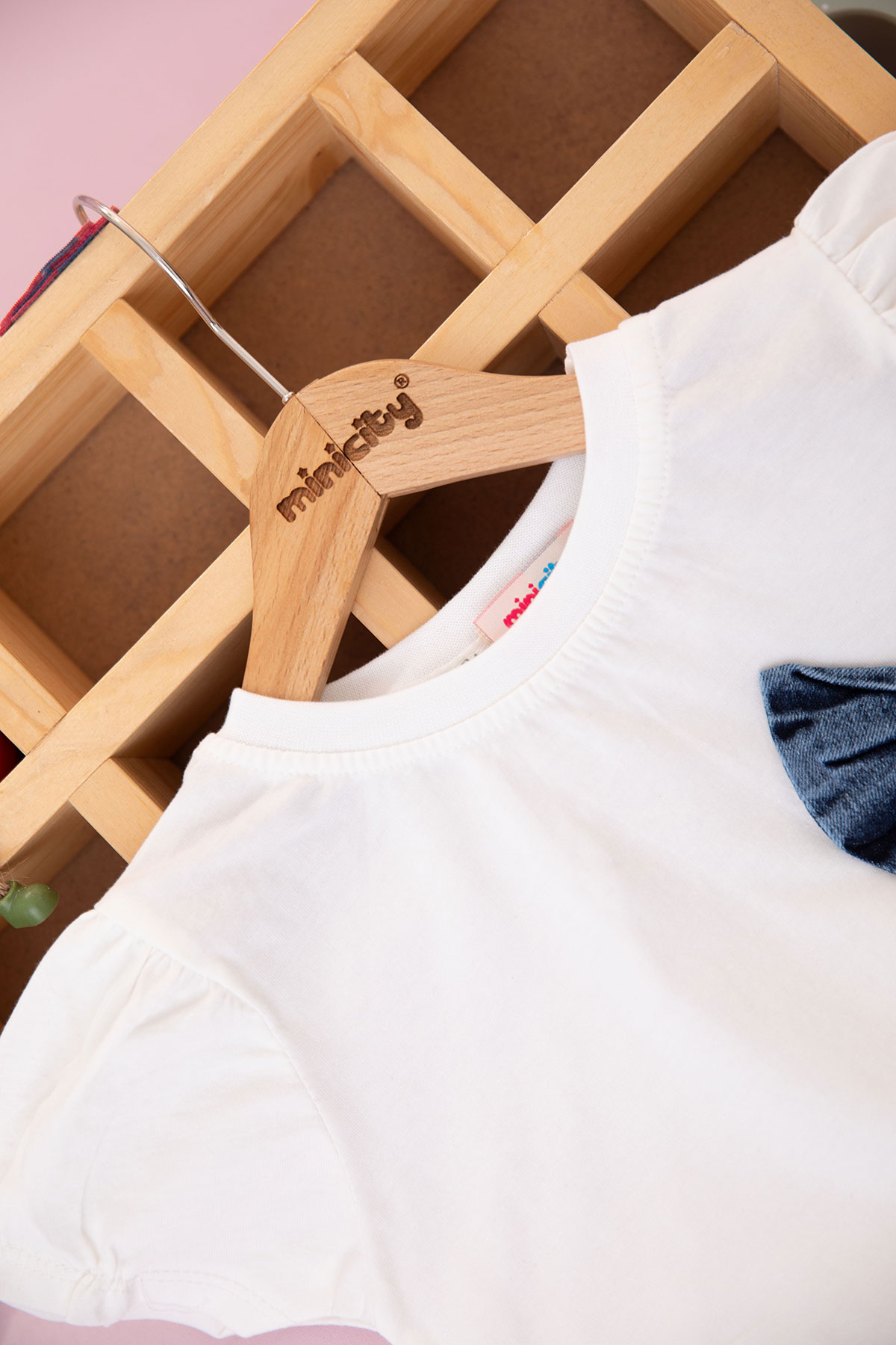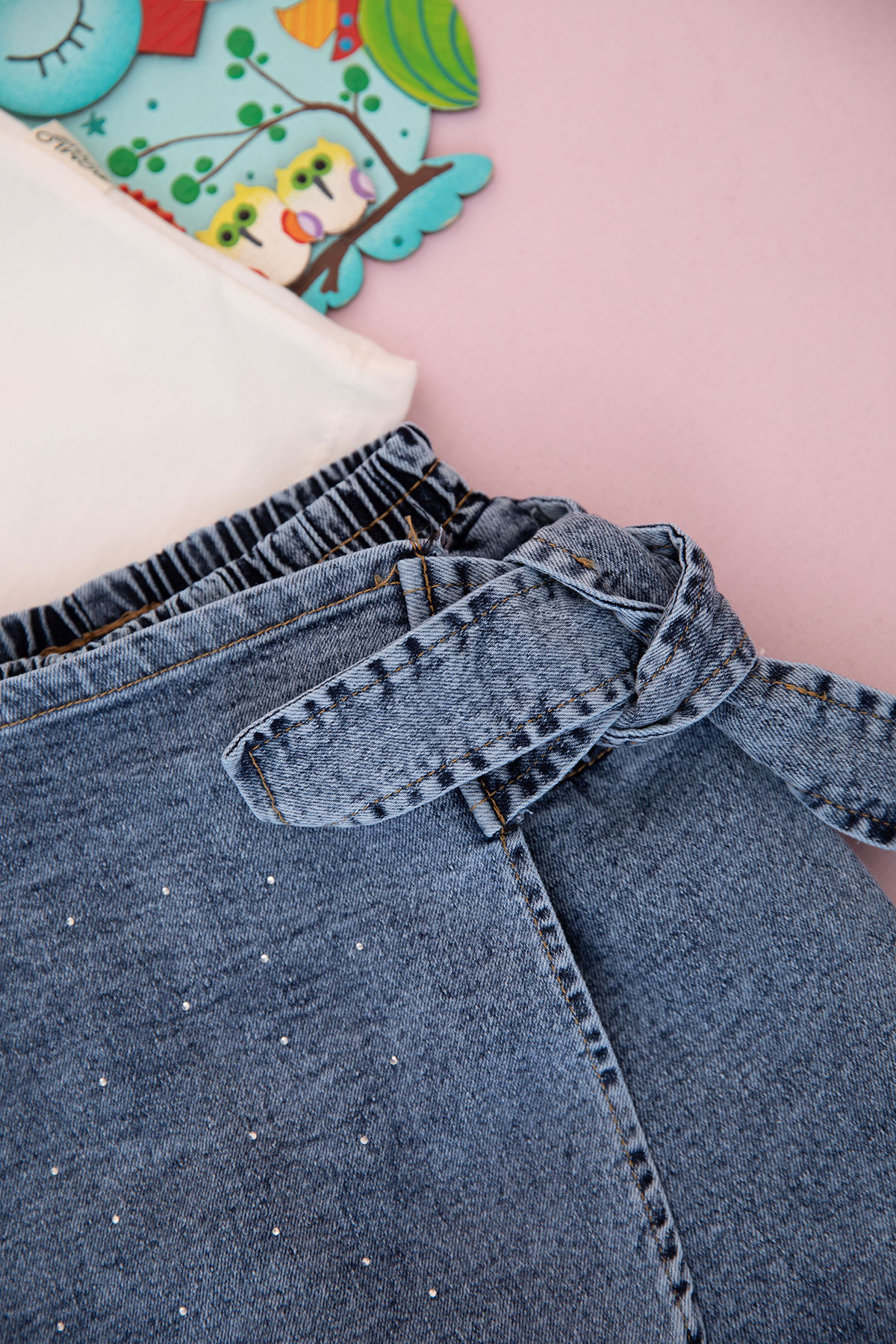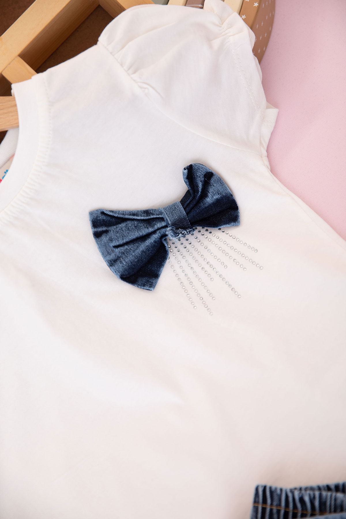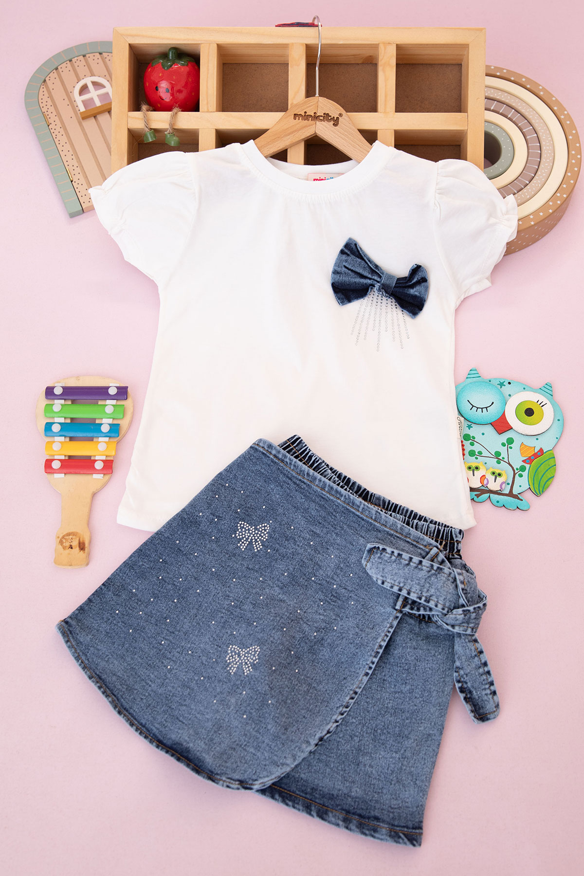 Kız Çocuk Fiyonklu Taş Baskılı Şortlu Takım - 90088 (5-8 Yaş)