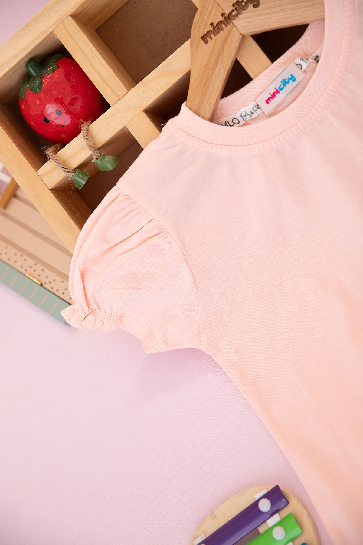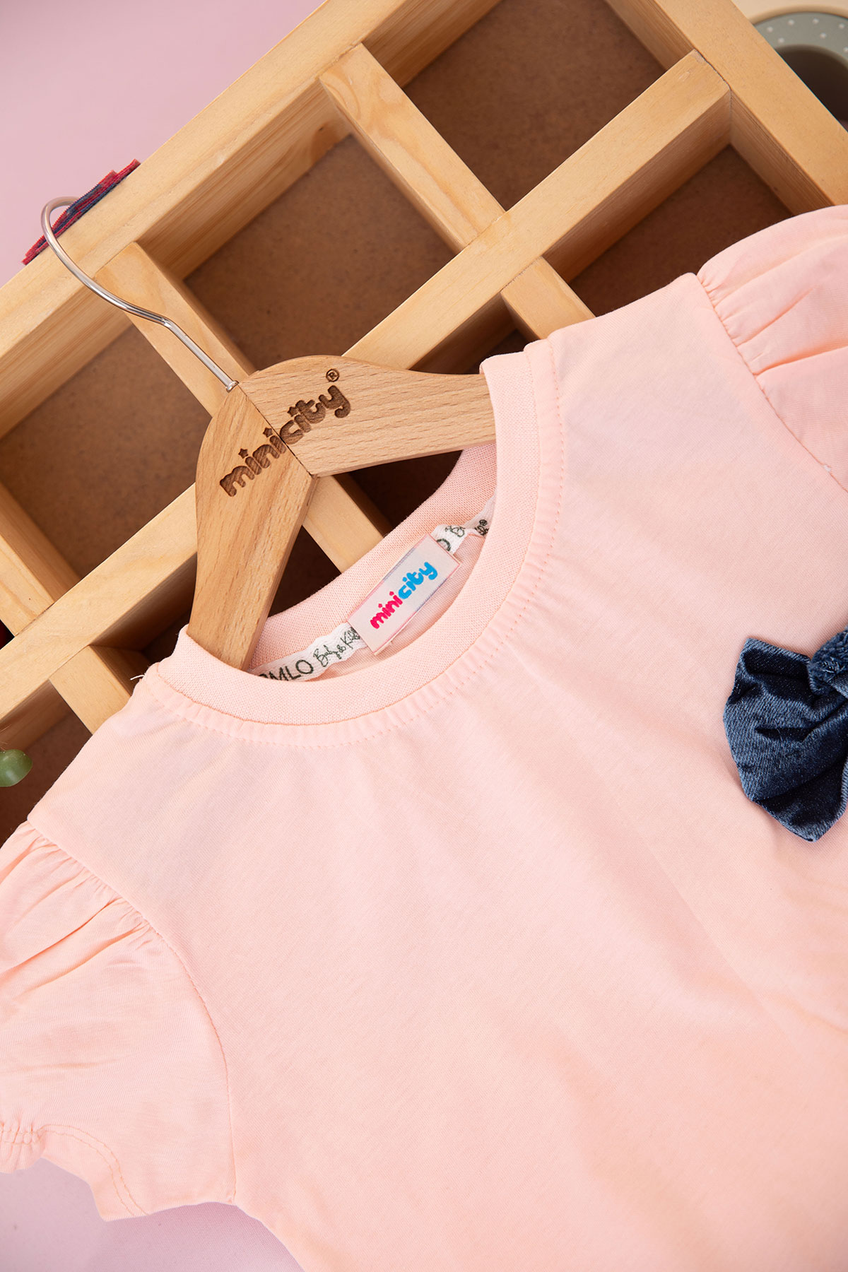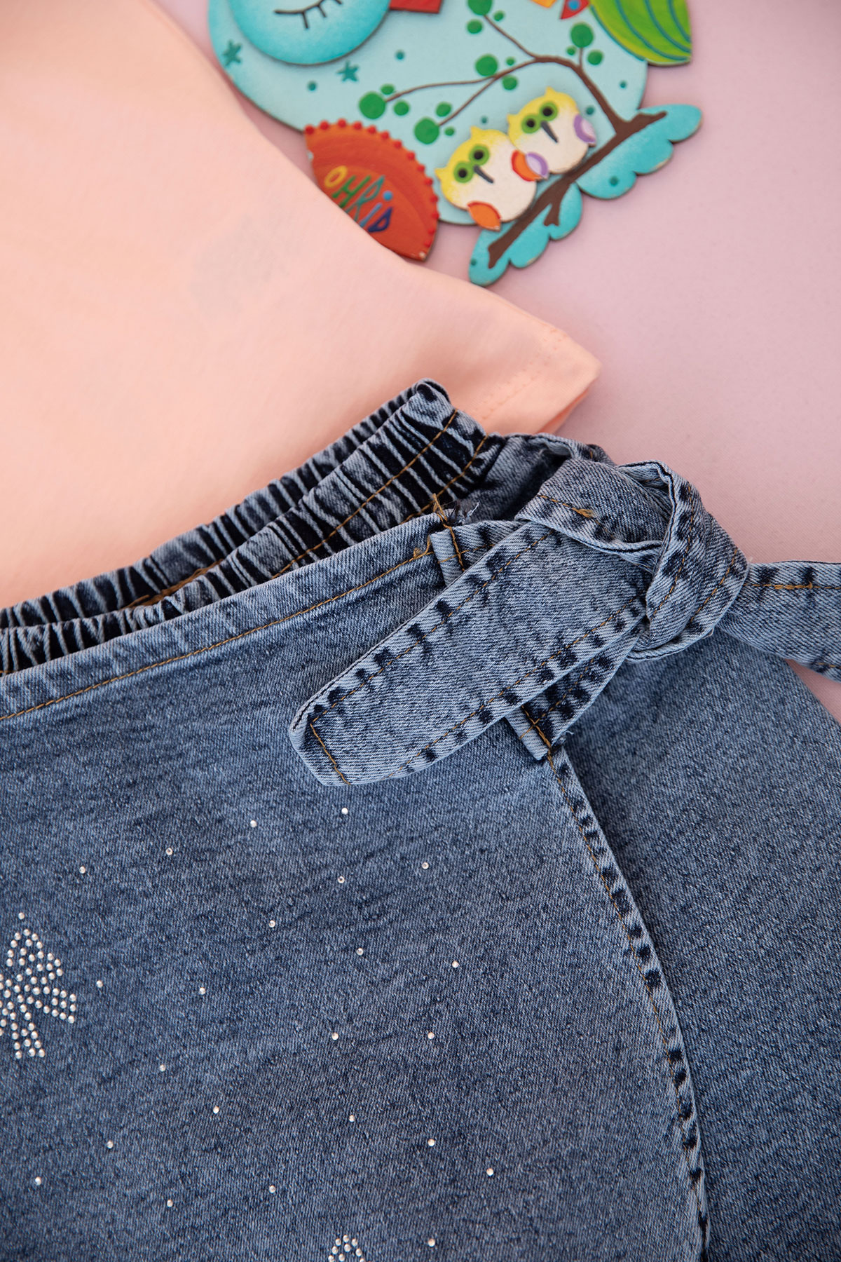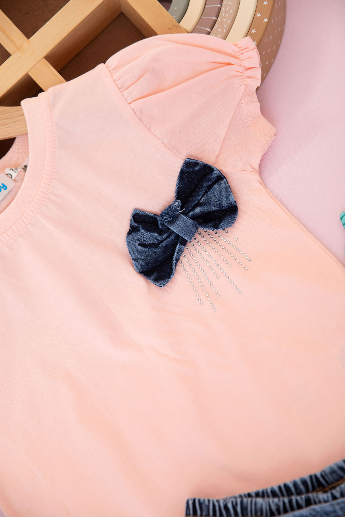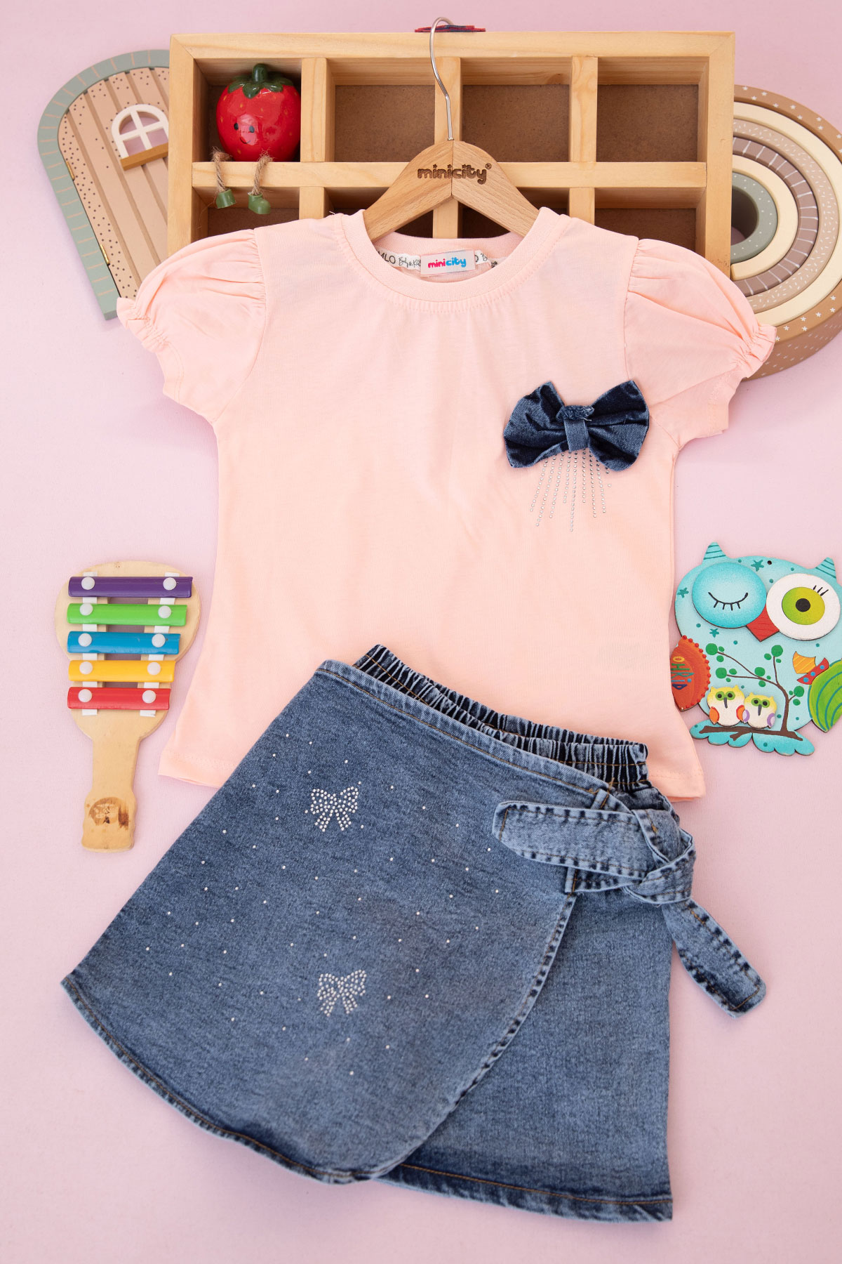 Kız Çocuk Fiyonklu Taş Baskılı Şortlu Takım - 90088 (5-8 Yaş)