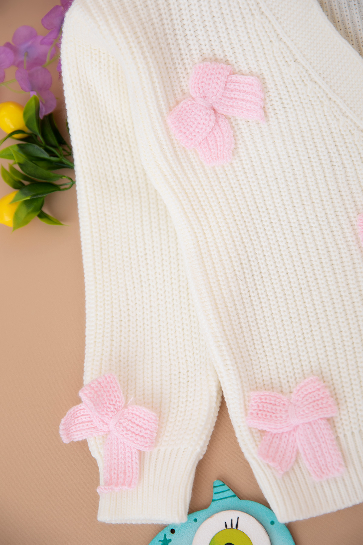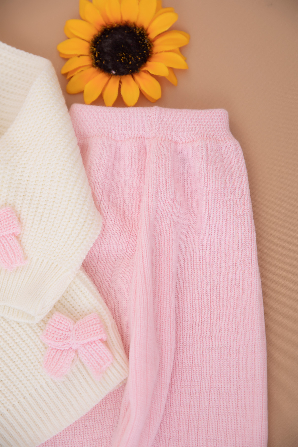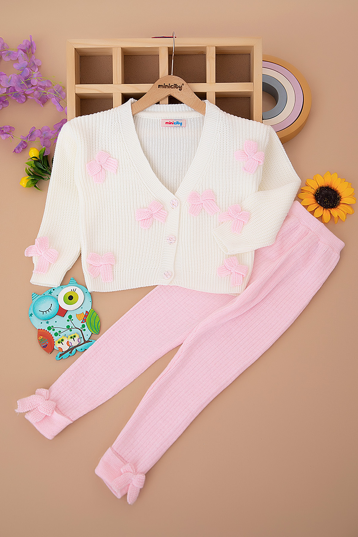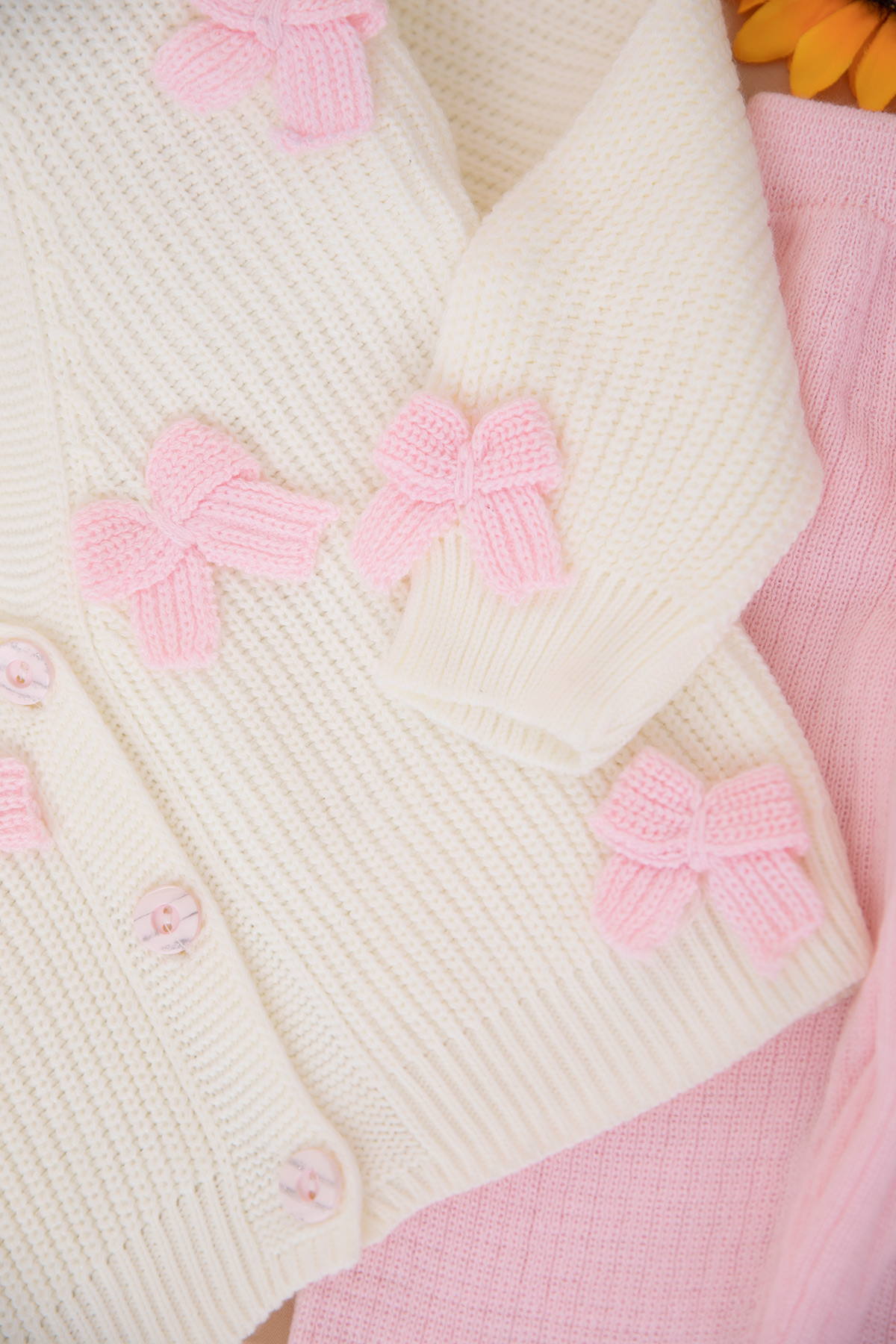 Kız Çocuk Fiyonklu Triko Hırka Tayt Takım (3-8 Yaş)
