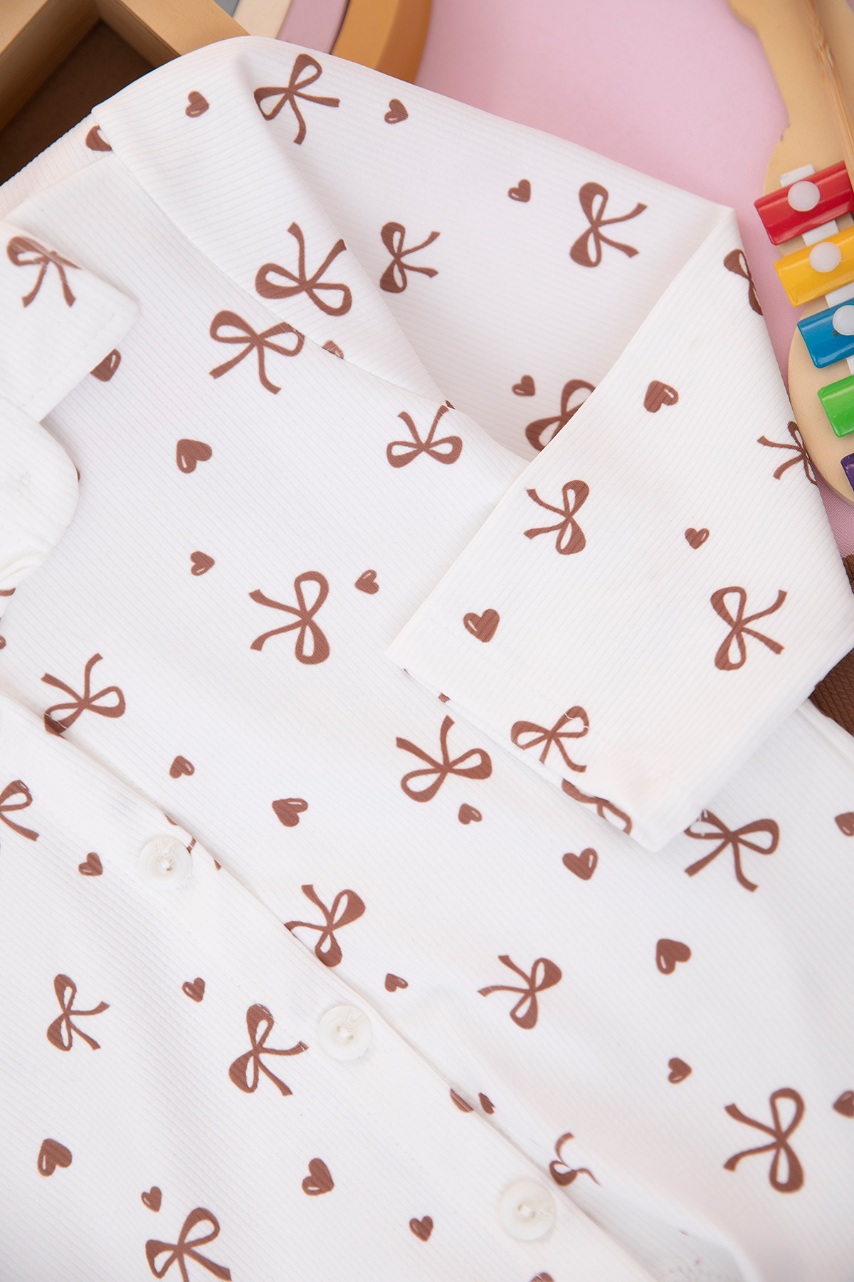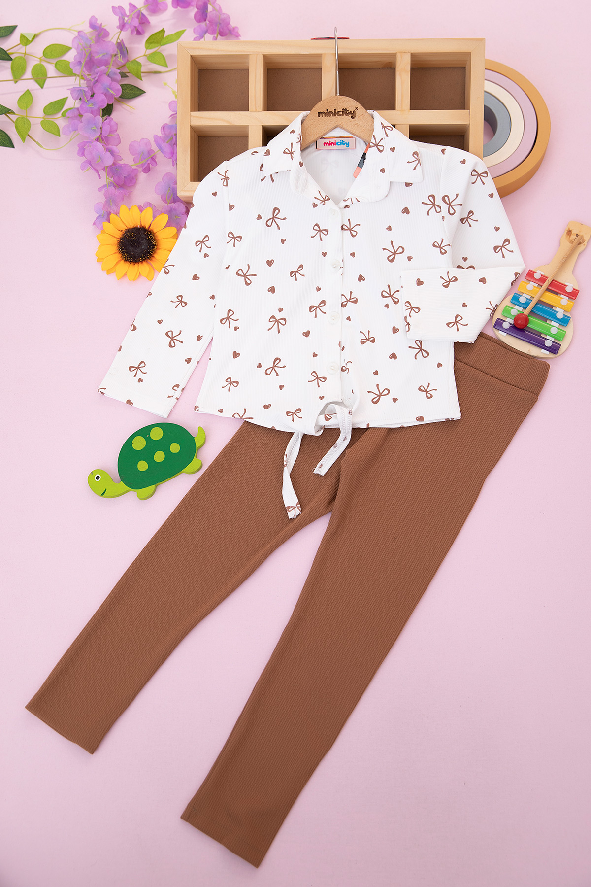 Kız Çocuk Fiyonku Baskılı Bağlamalı Gömlek Takım - 250 (7-10 Yaş)