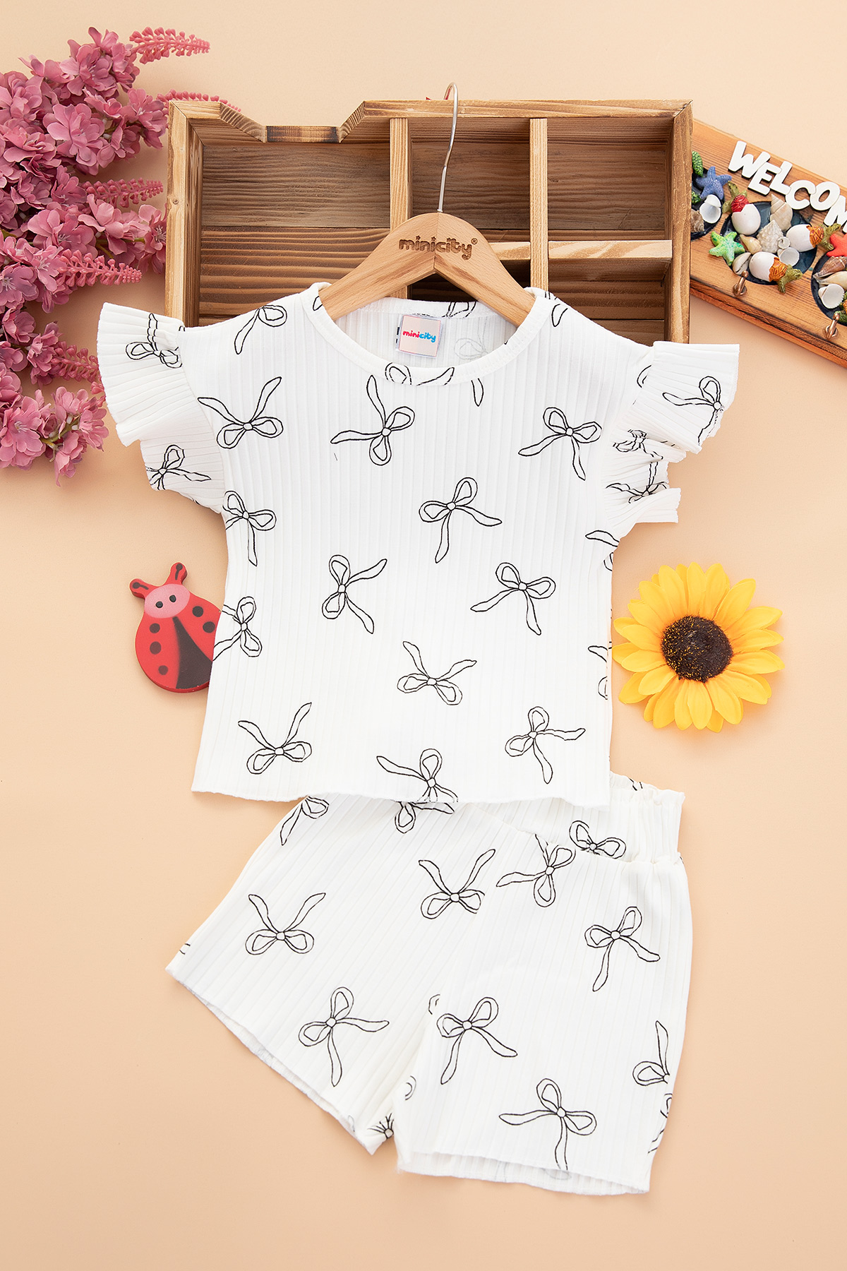 Kız Çocuk Fiyonlu Şortlu Takım - 7637 (3-10 Yaş)