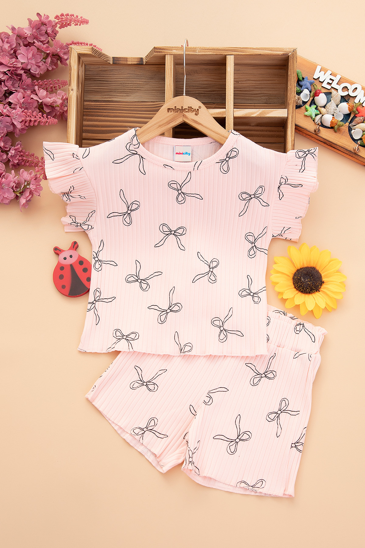Kız Çocuk Fiyonlu Şortlu Takım - 7637 (3-10 Yaş)