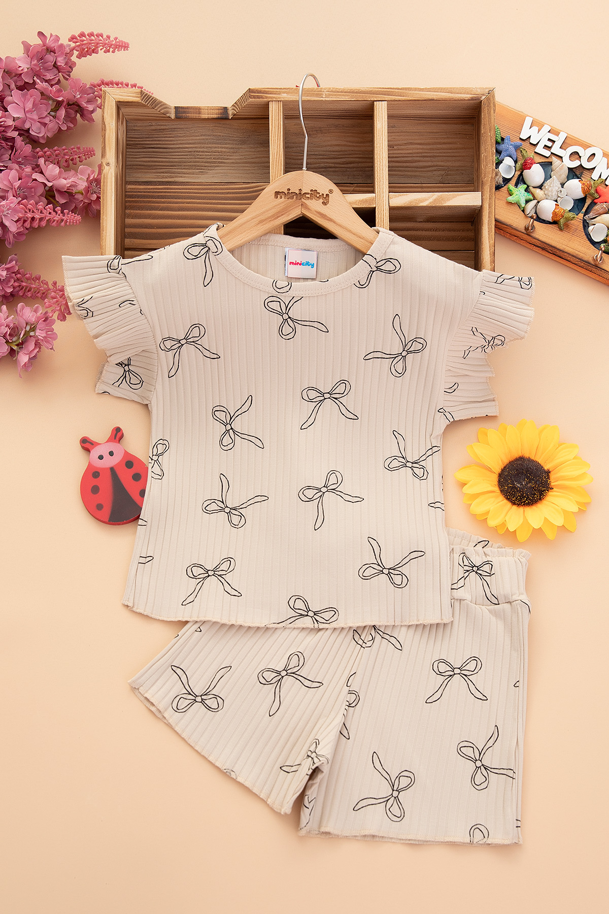 Kız Çocuk Fiyonlu Şortlu Takım - 7637 (3-10 Yaş)