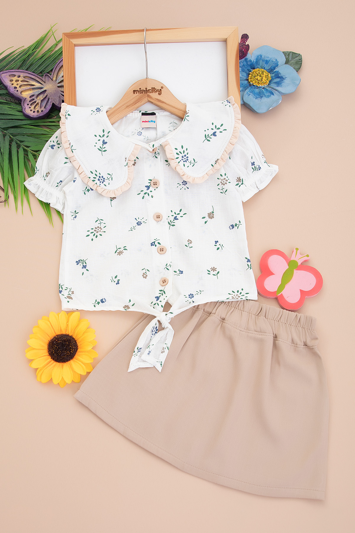 Kız Çocuk Flam Baskılı Etekli Takım - 10111 (4-8 Yaş)