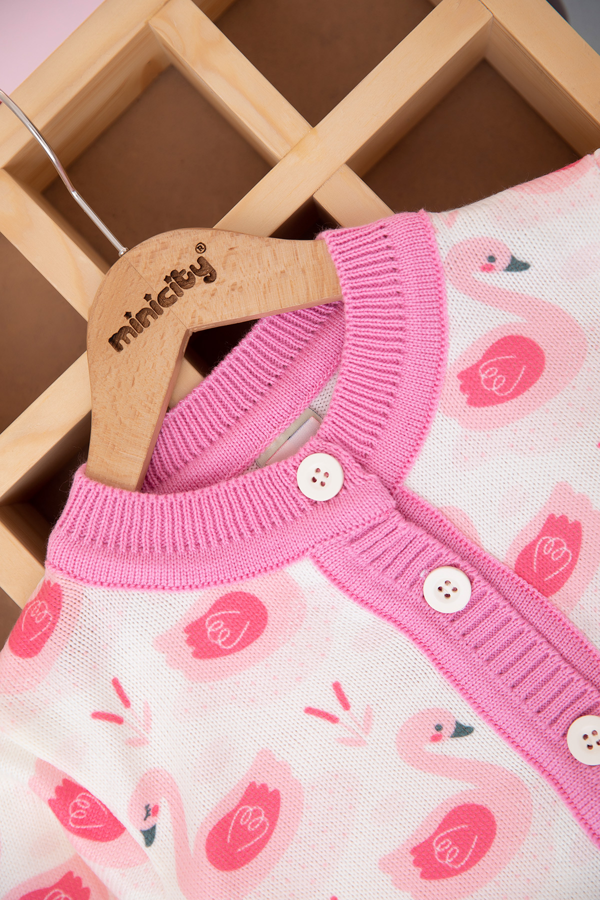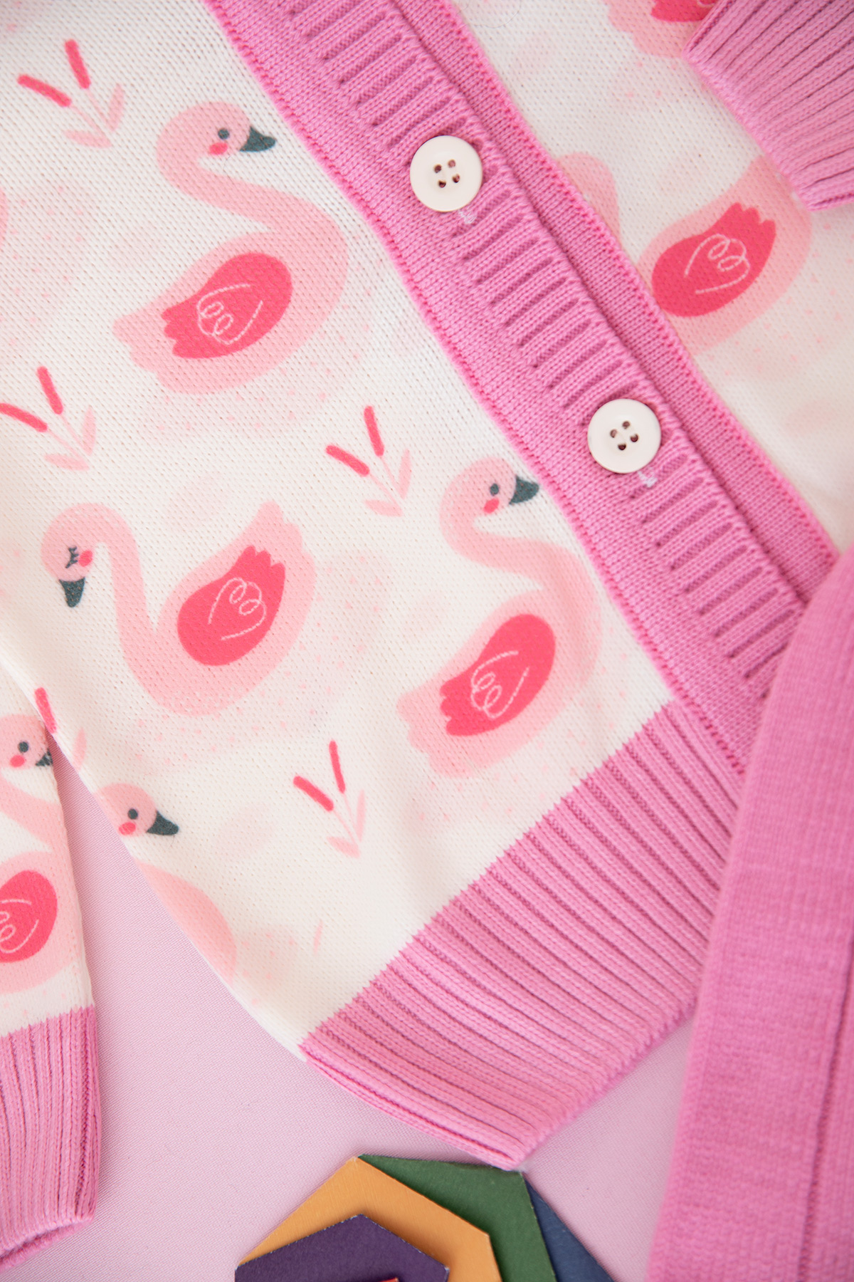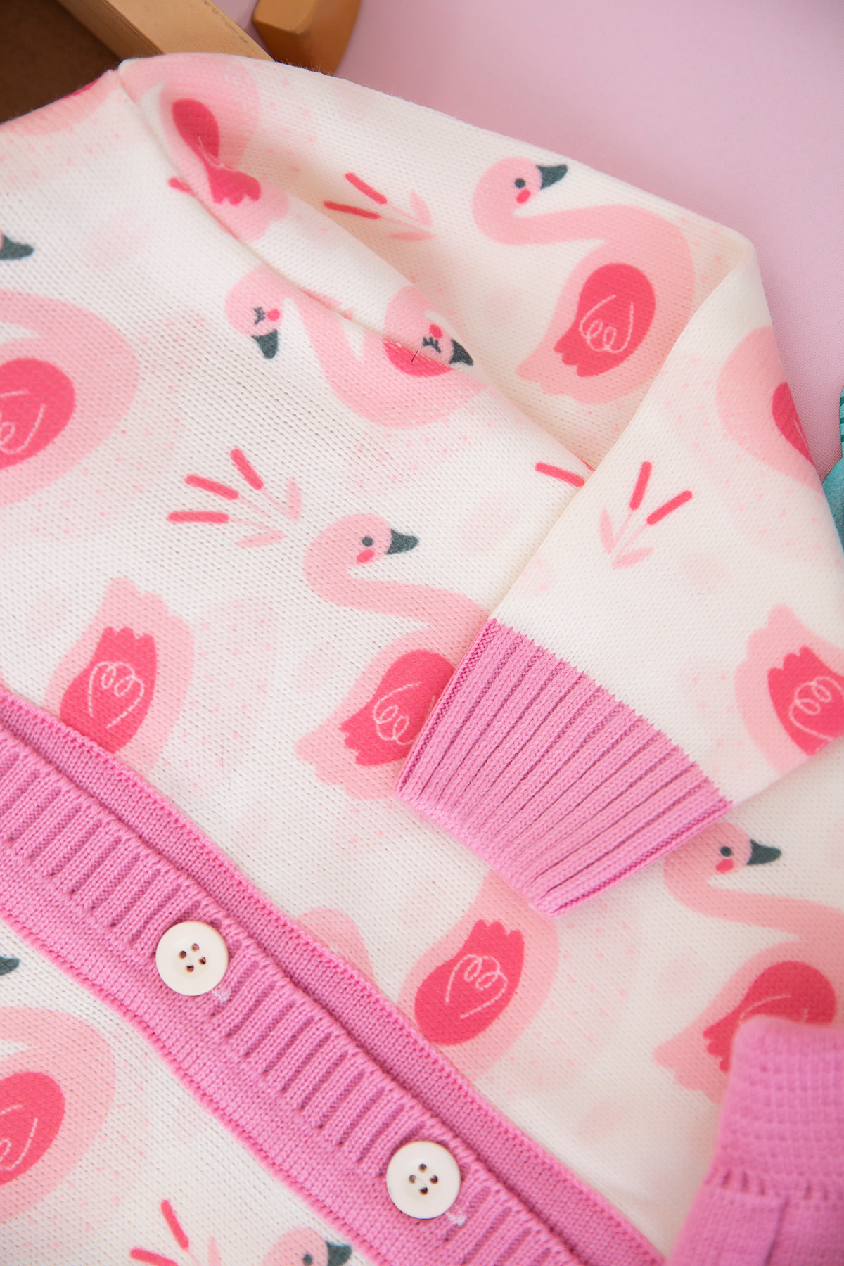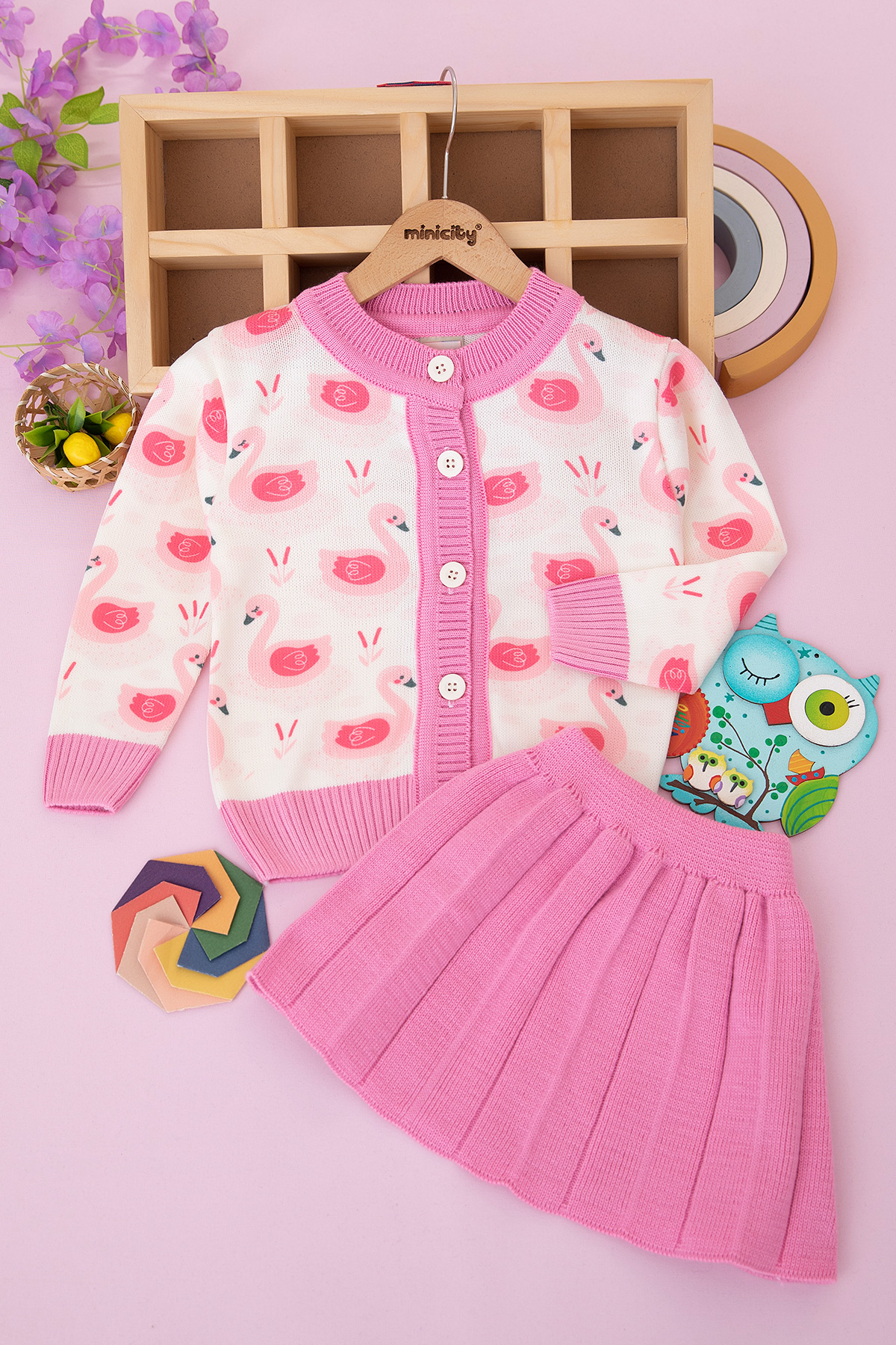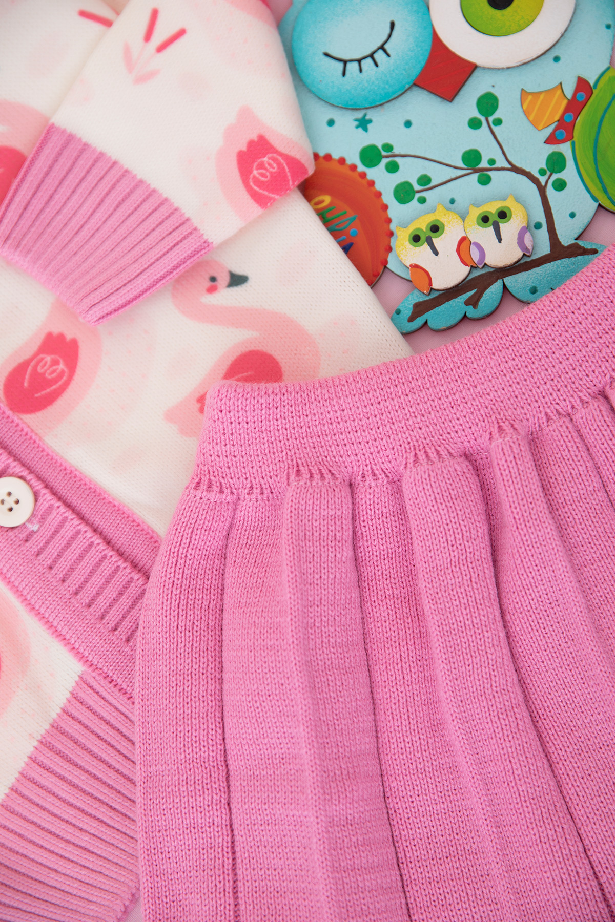 Kız Çocuk Flamingo Baskılı Hırka Etek Takım