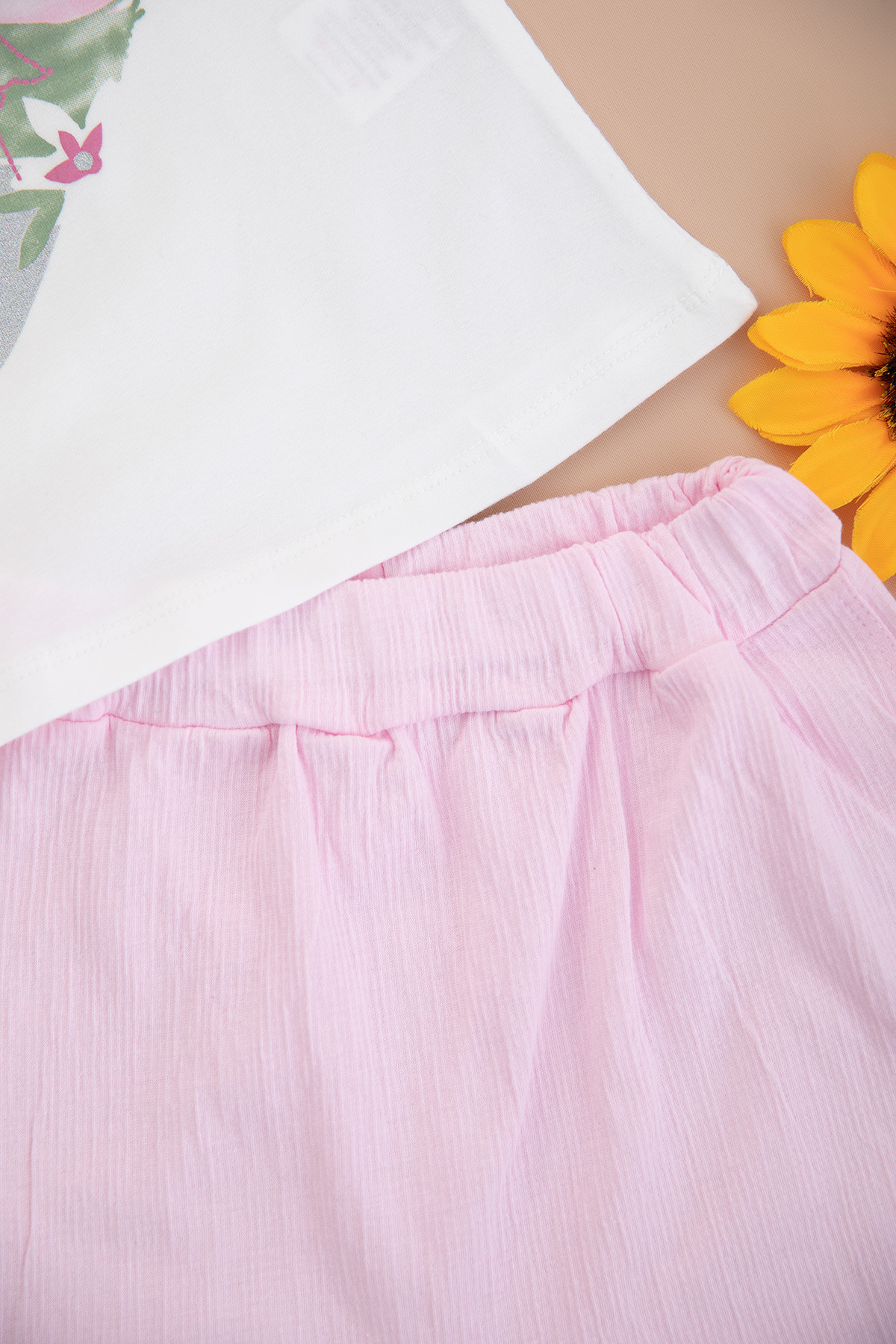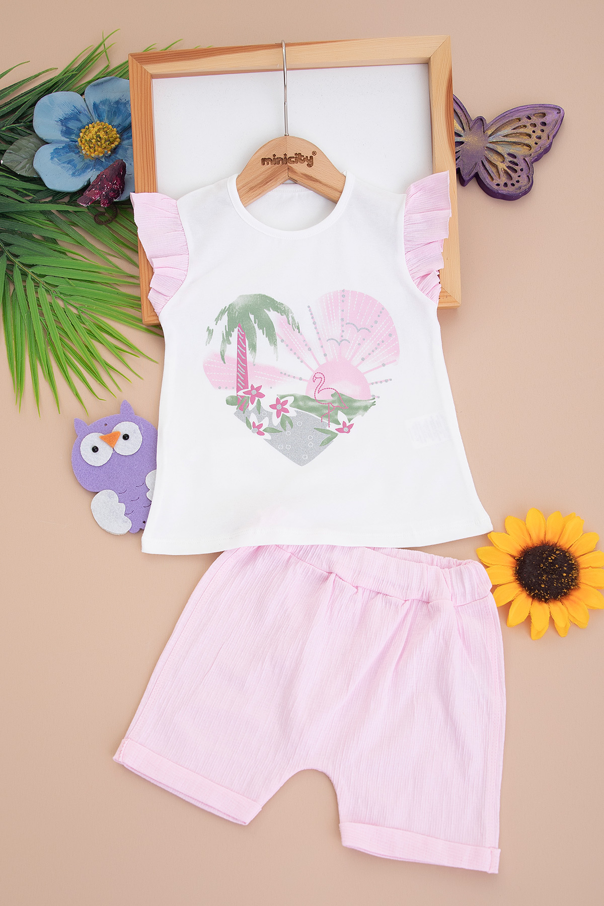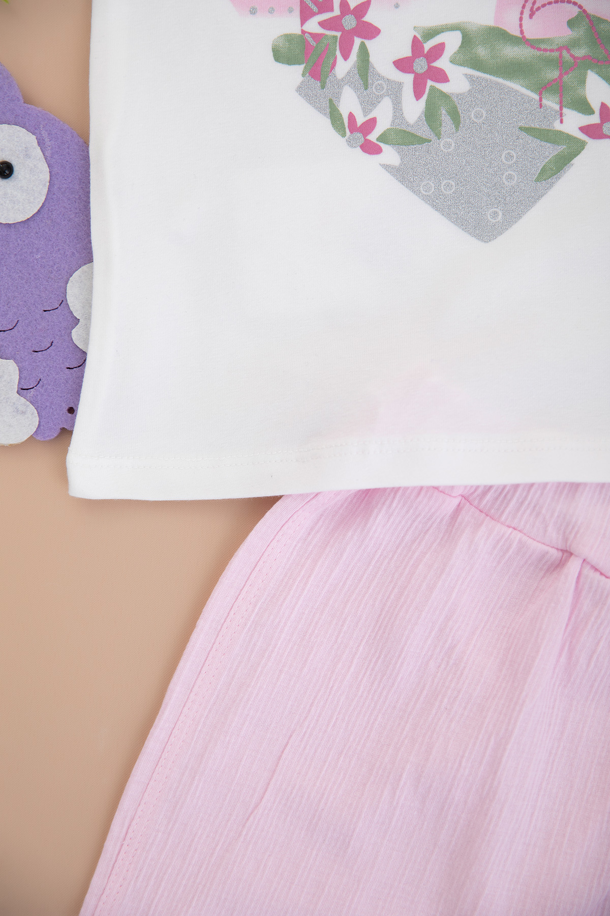 Kız Çocuk Flamingo Baskılı Şortlu Takım - 3358 (1-3 Yaş)