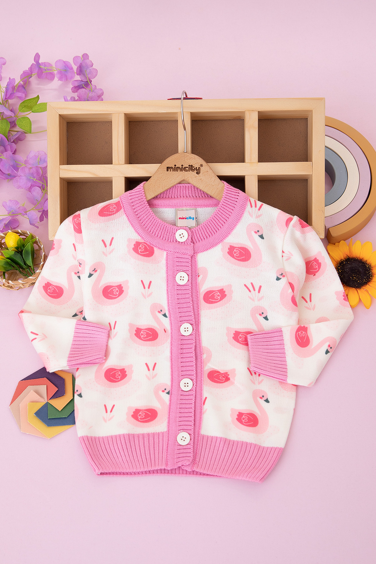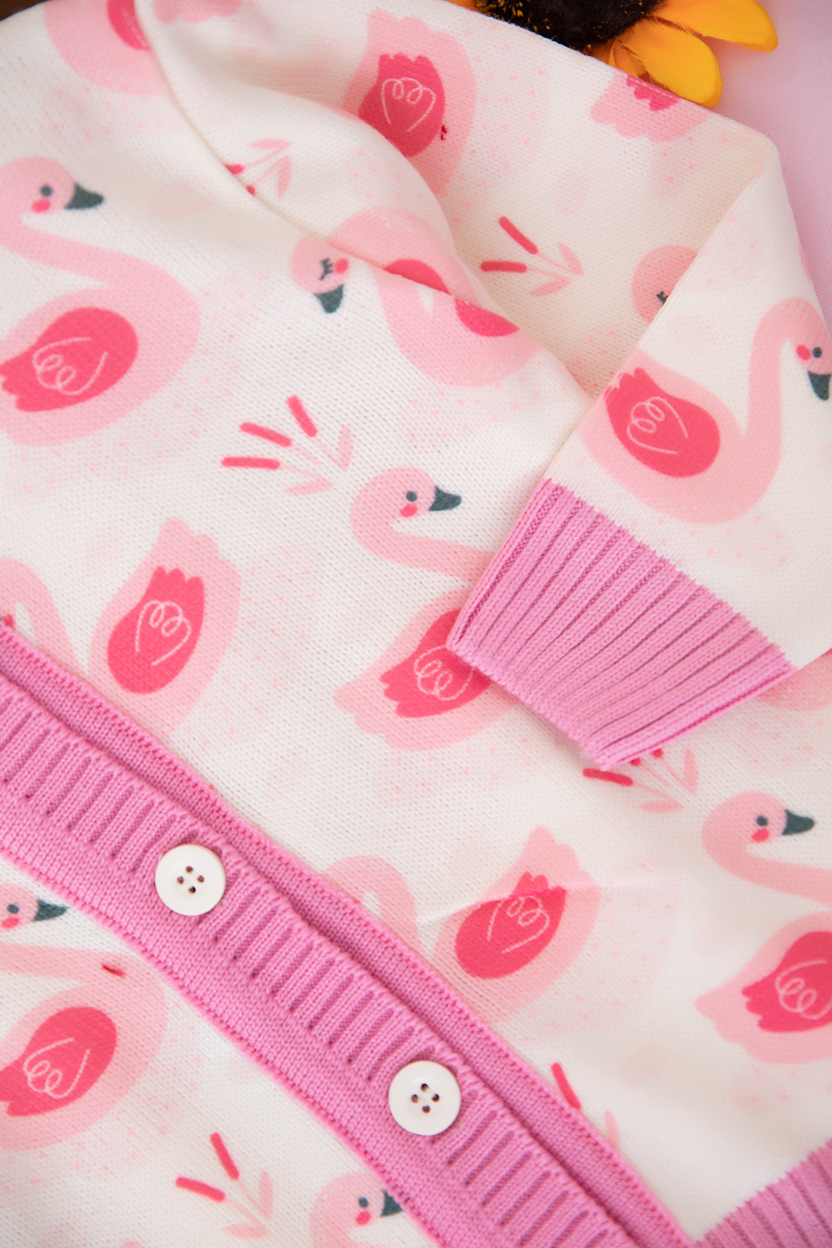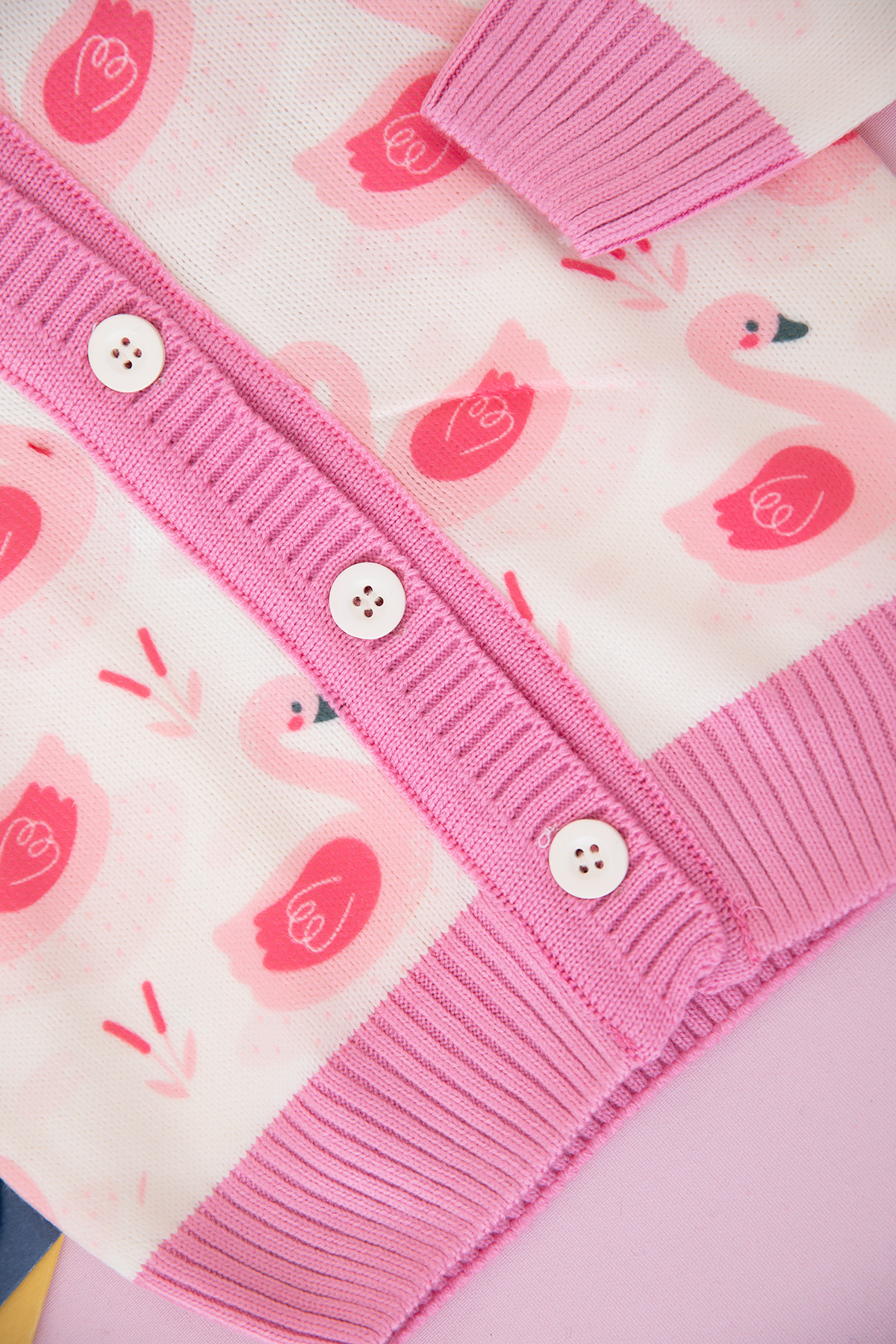 Kız Çocuk Flamingo Baskılı Triko Hırka (2-8 Yaş)