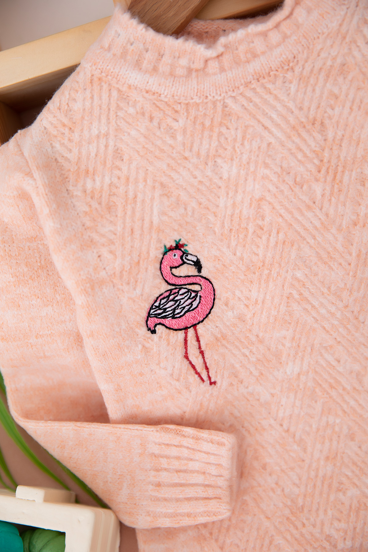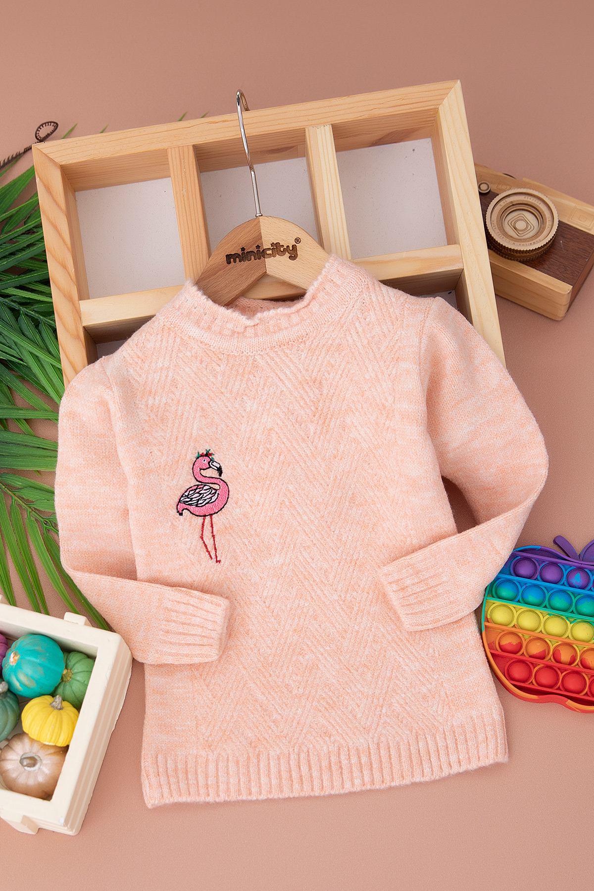 Kız Çocuk Flamingo Nakışlı Kazak - 1023 - 2034
