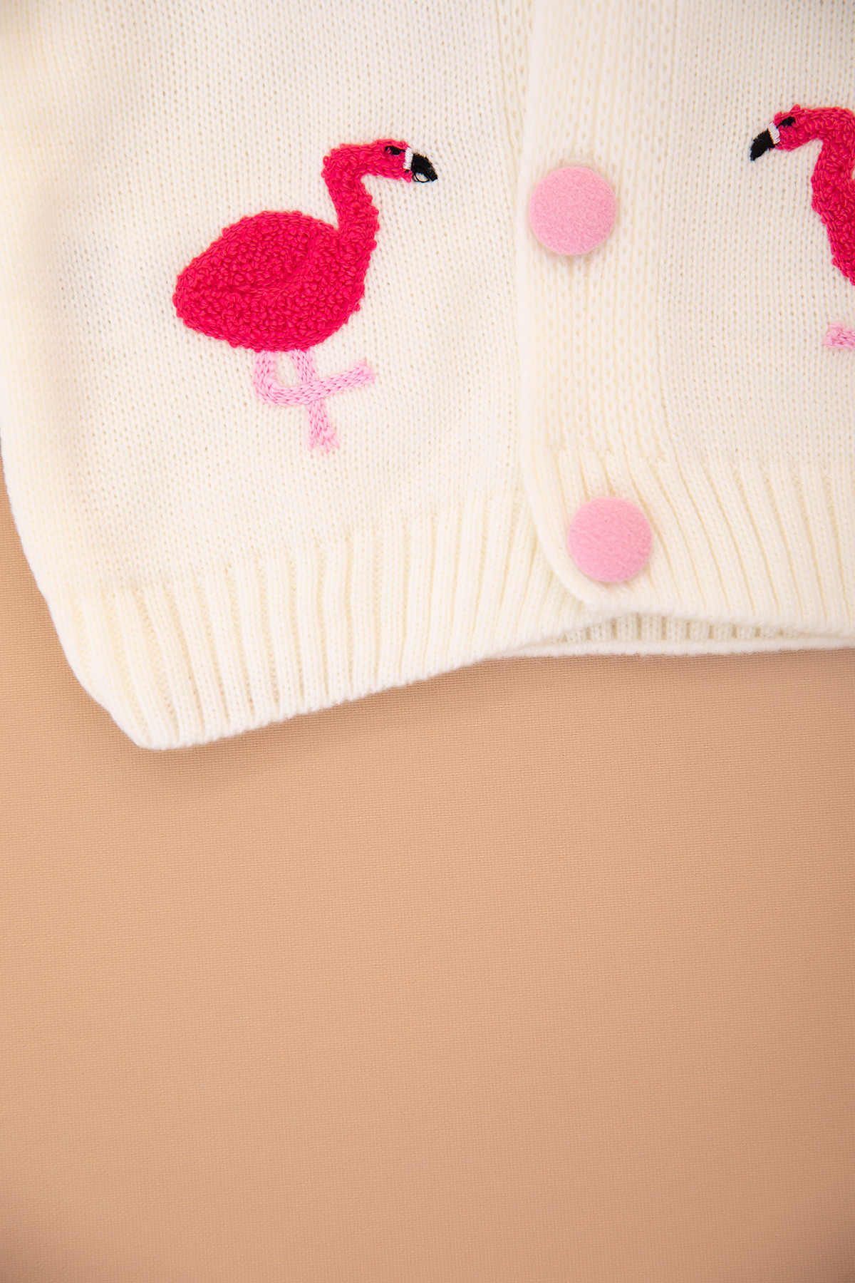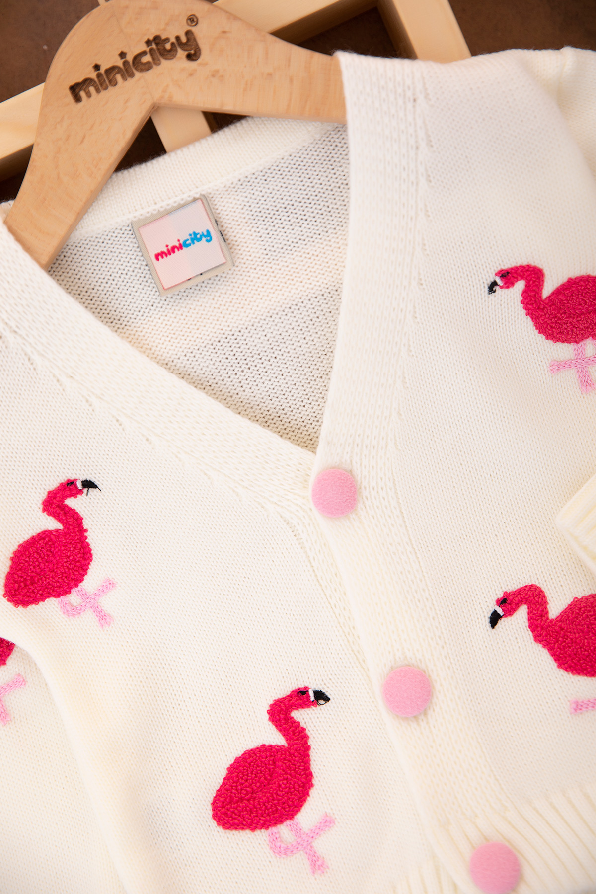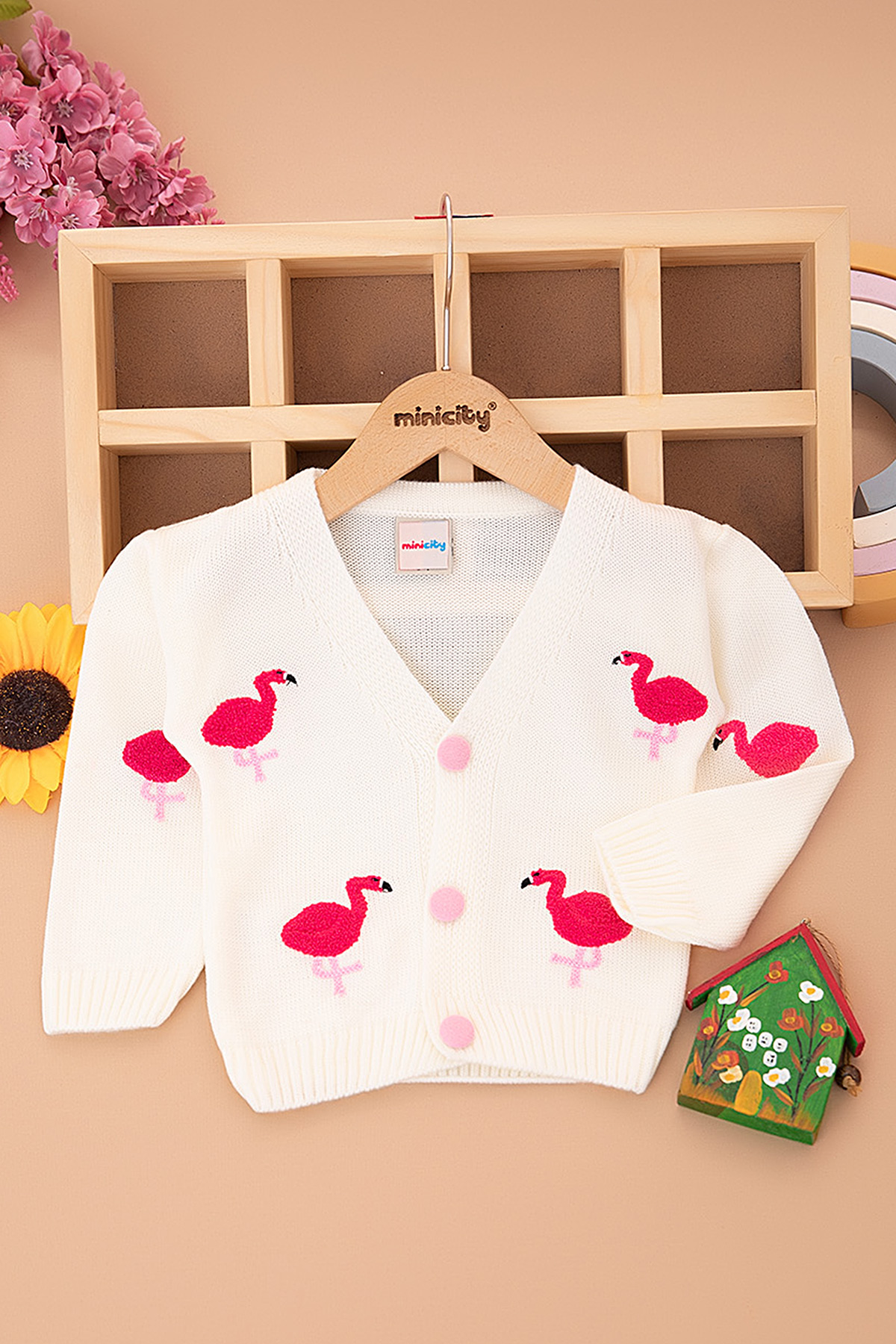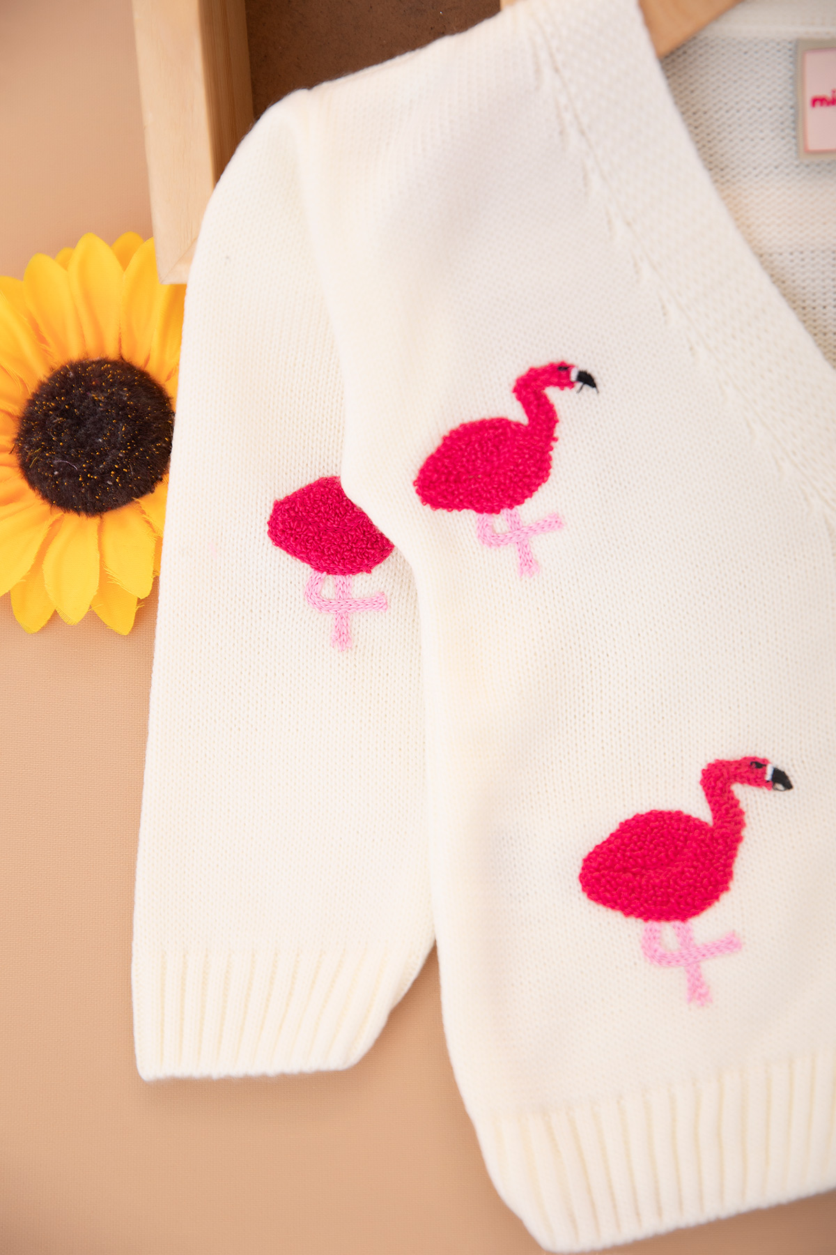 Kız Çocuk Flamingo Nakışlı Triko Hırka (0-3 Yaş)