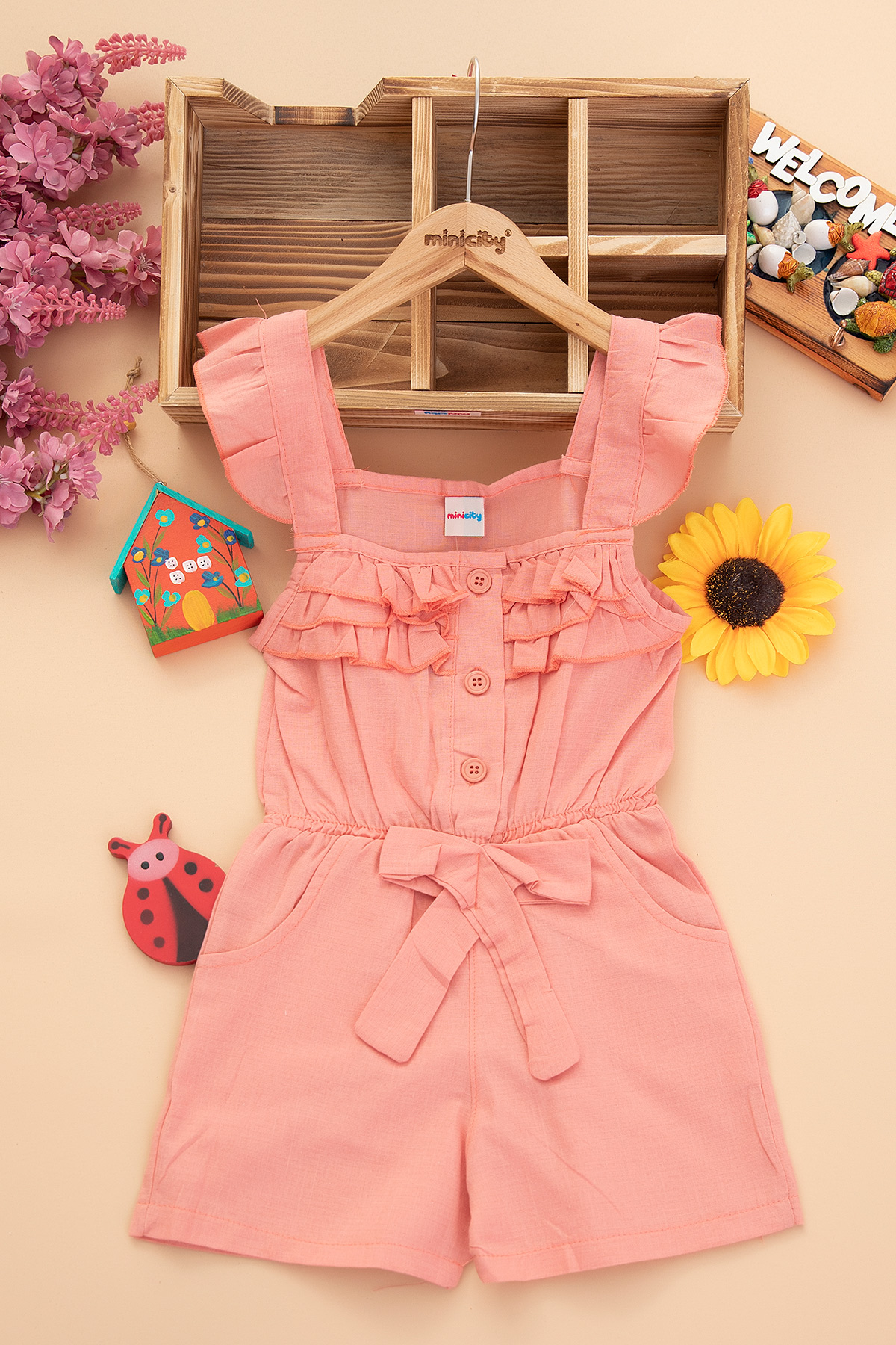 Kız Çocuk Flamlı Kol Ön Fırfırlı Tulum - 12053 (3-7 Yaş)