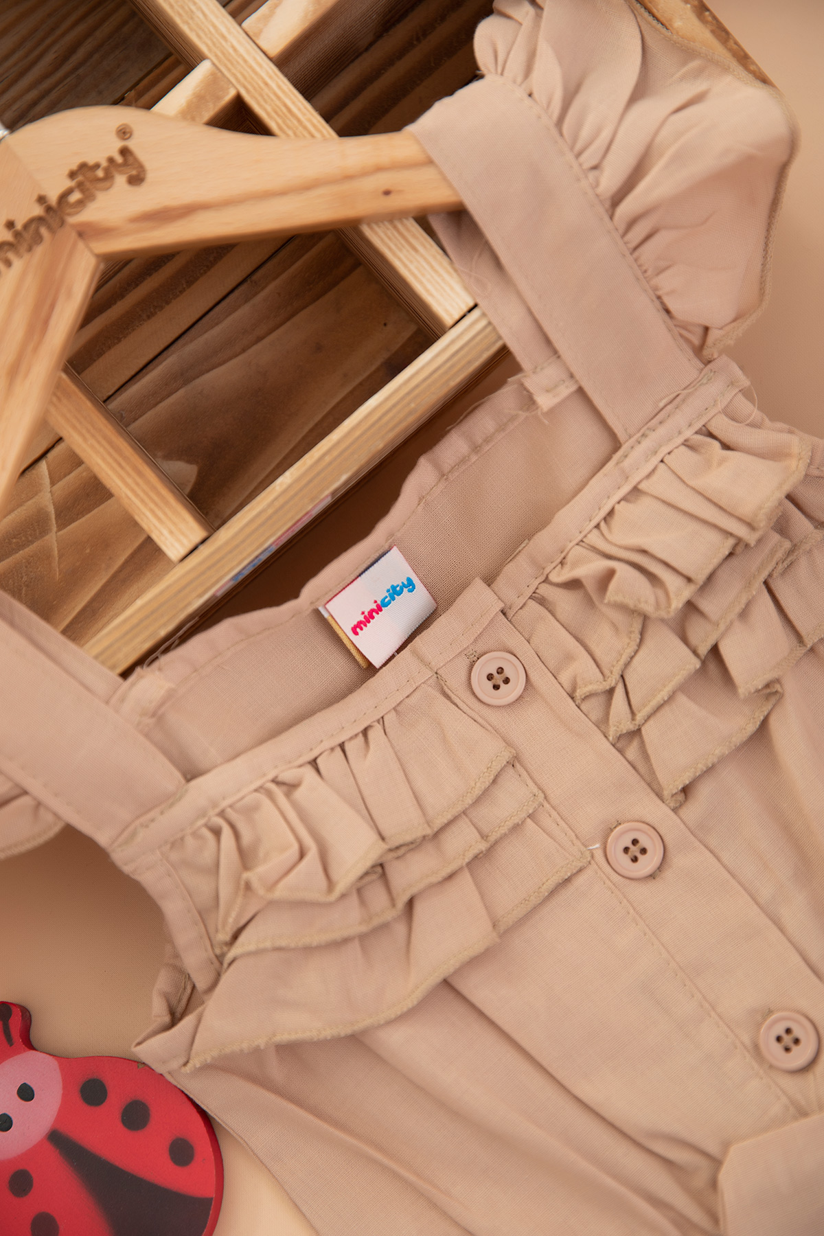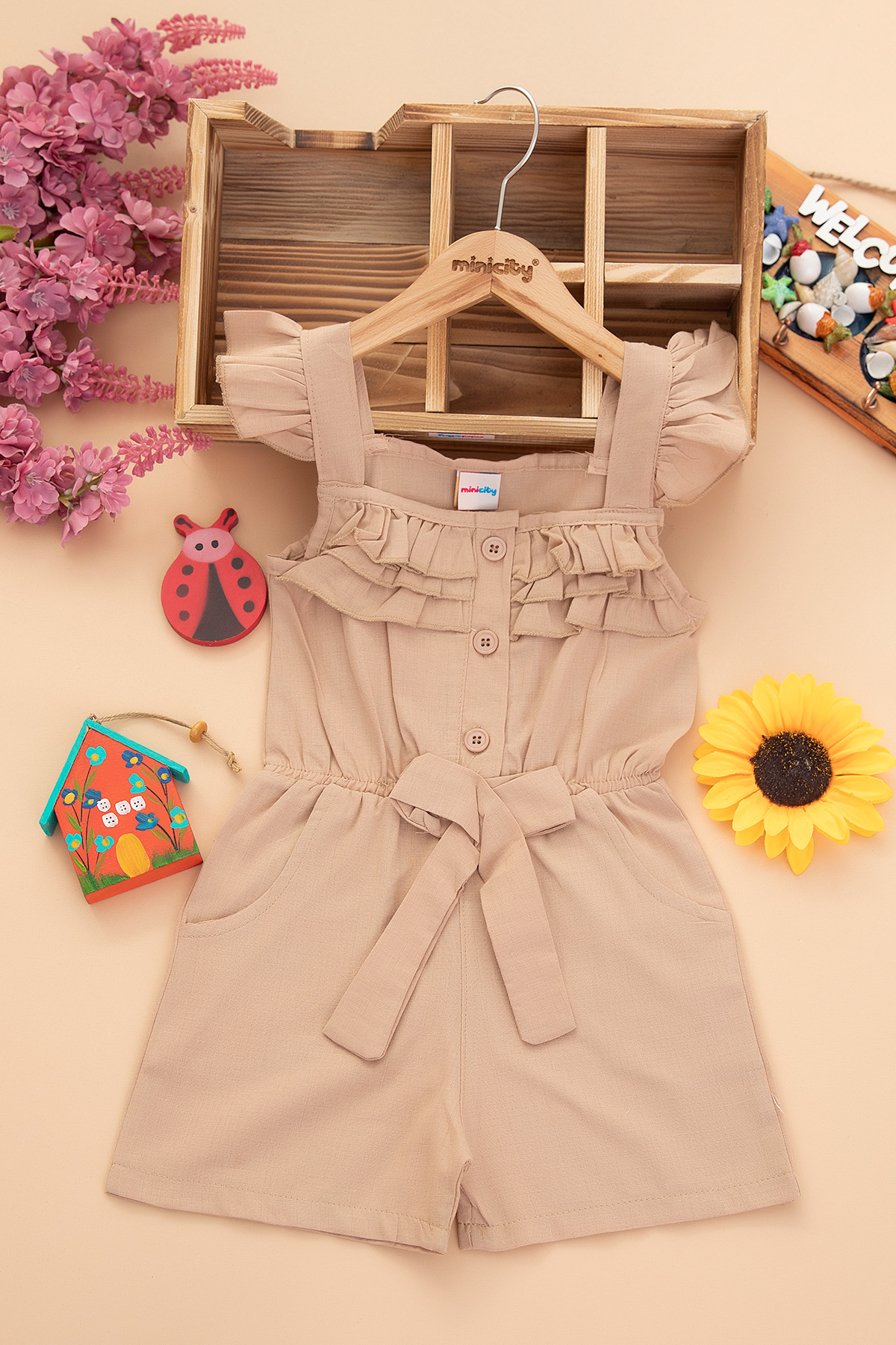 Kız Çocuk Flamlı Kol Ön Fırfırlı Tulum - 12053 (3-7 Yaş)